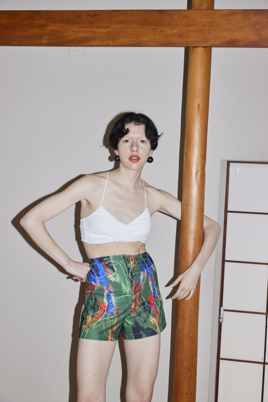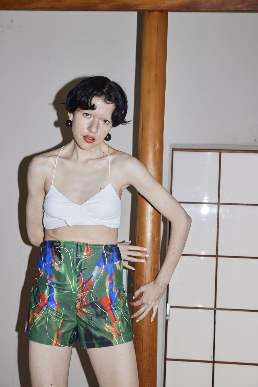 内側にハイウエストショーツをレイヤードしているため、インナーなしで1枚で快適に過ごせます。