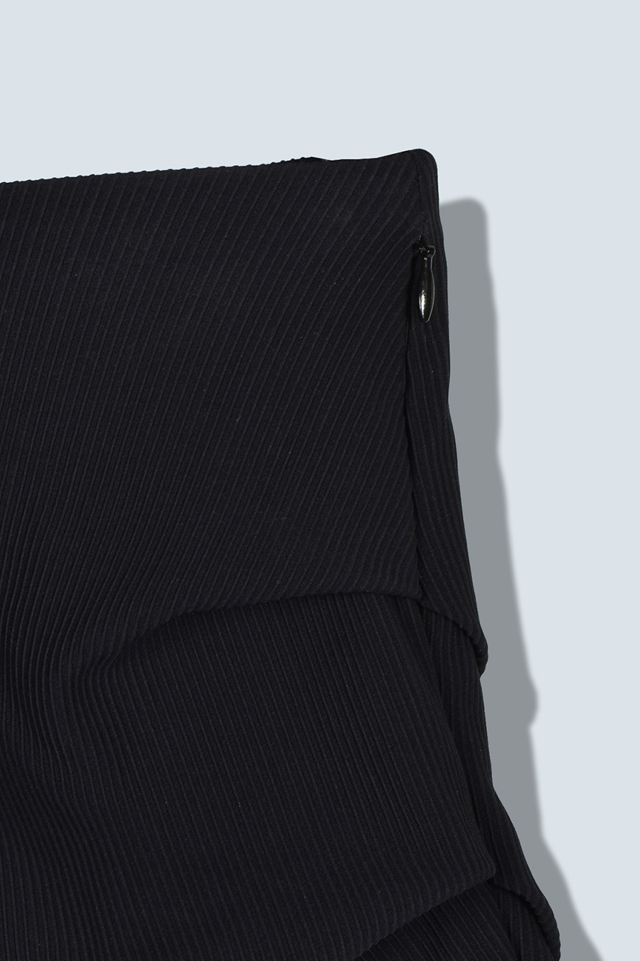 タックの立体感が気になるお腹周りをカバーし、ゆったりとした裾幅で脚を美しく見せるデザインです。