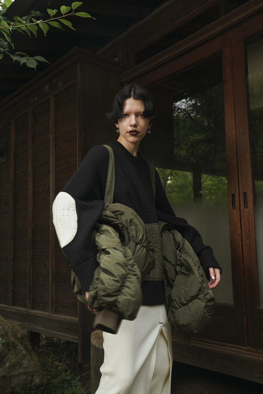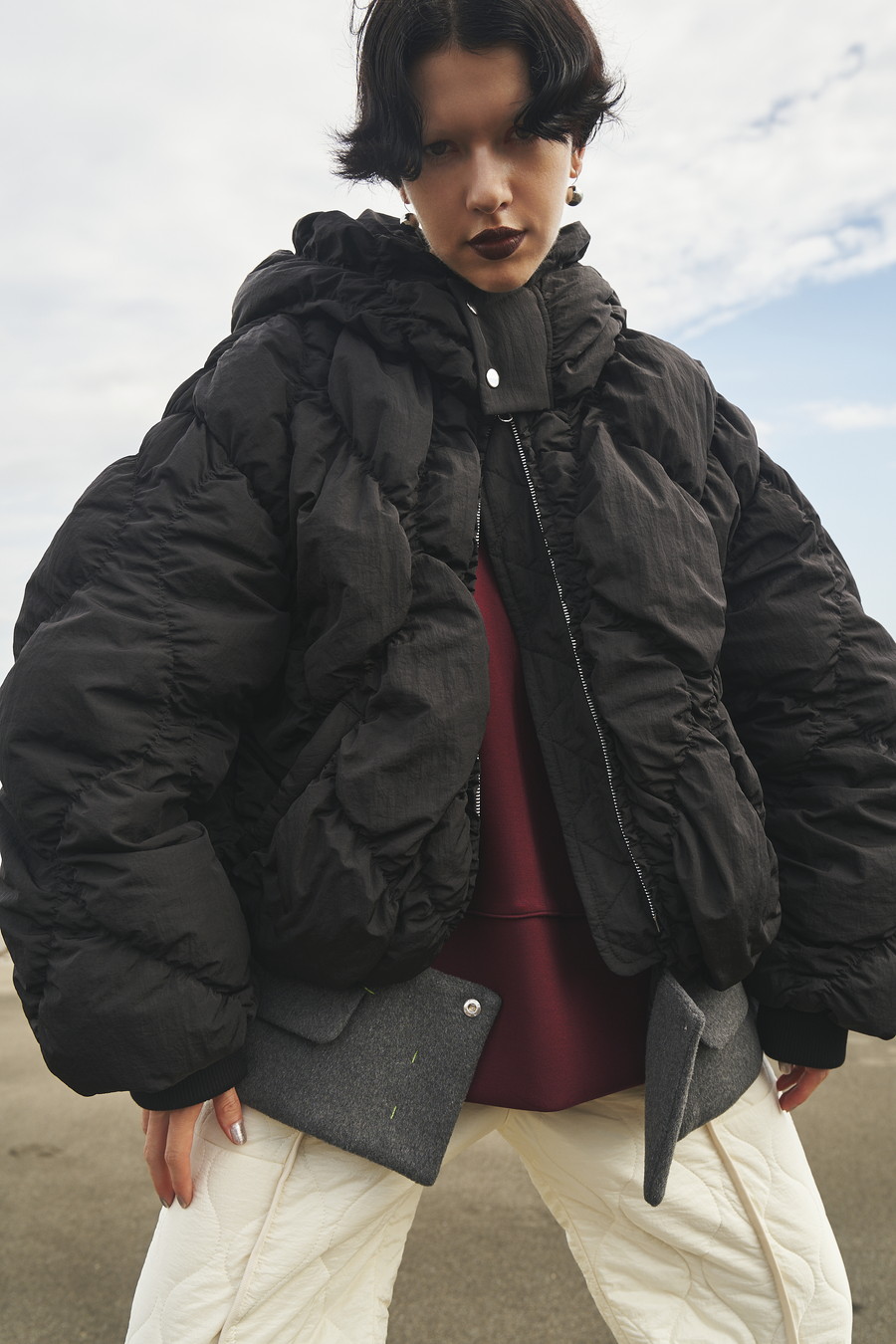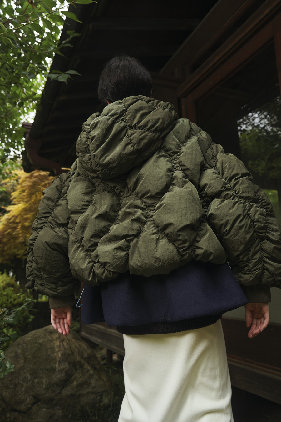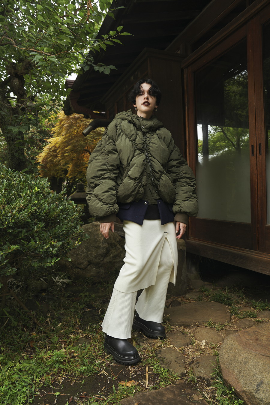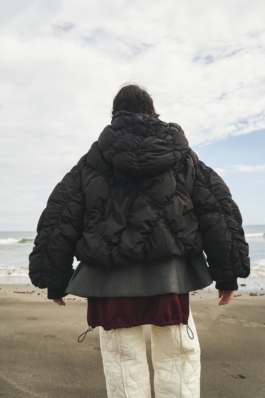 変形したキルティング柄にシャーリングを施した、OMMOらしい1着。