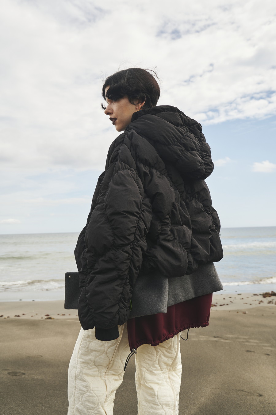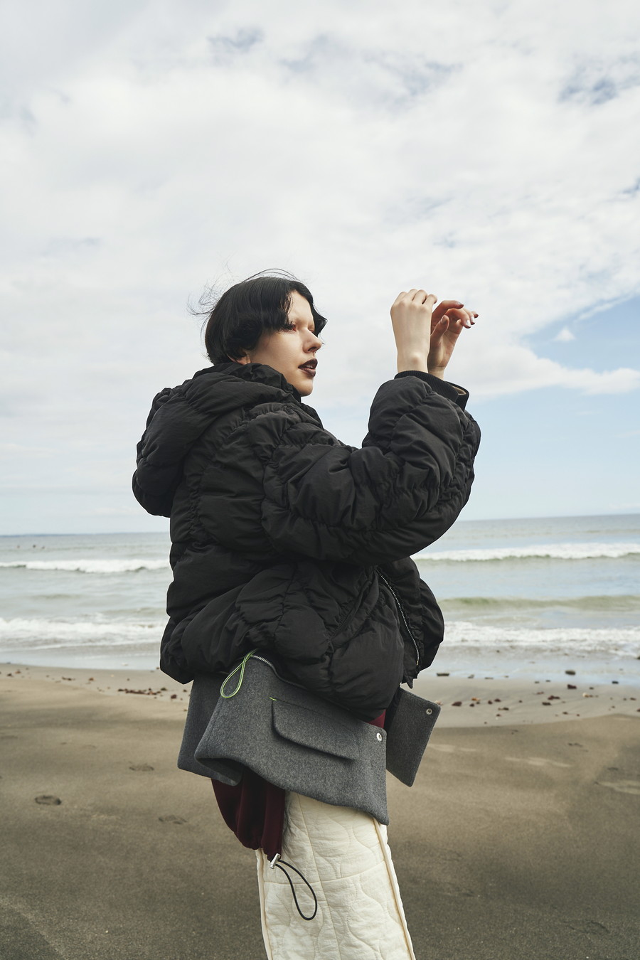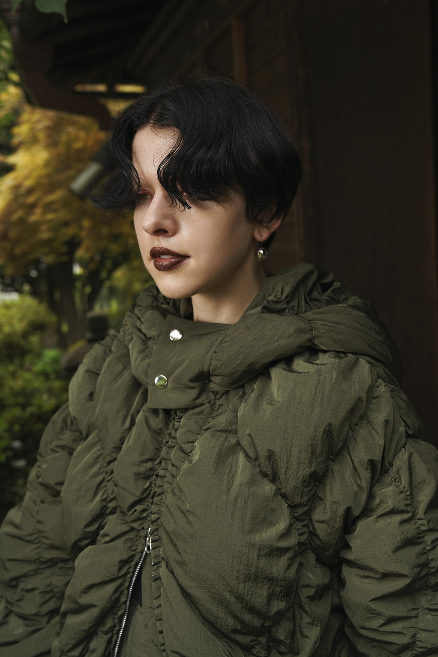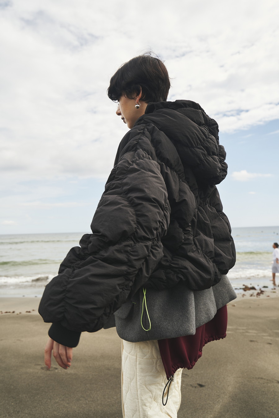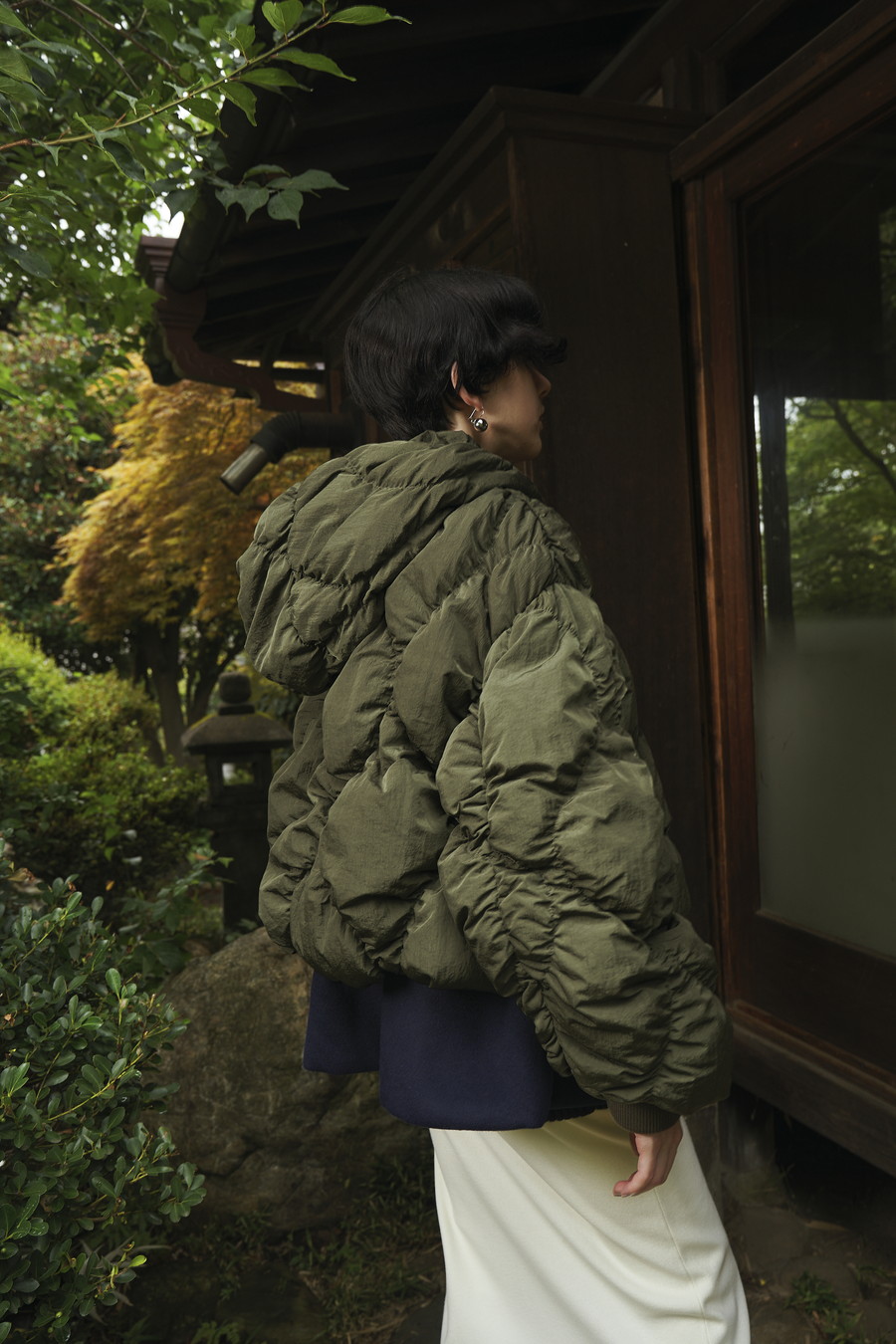 変形したキルティング柄にシャーリングを施した、OMMOらしい1着。