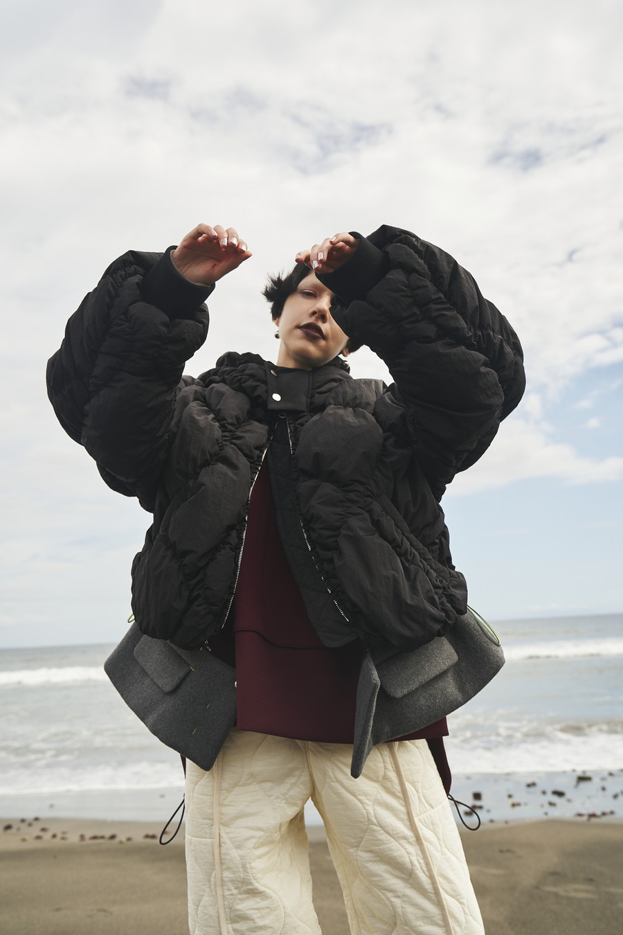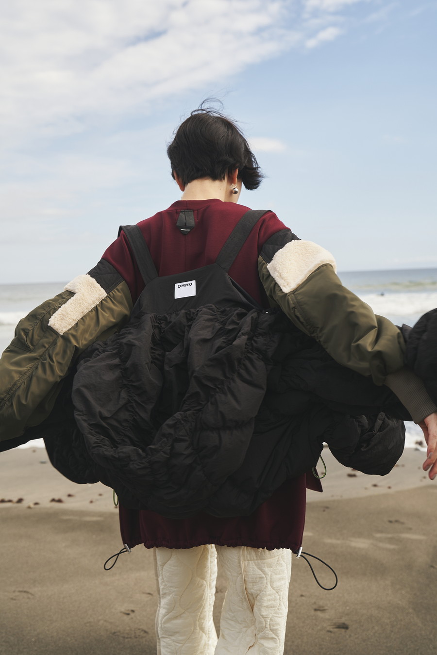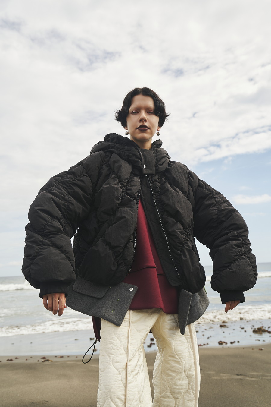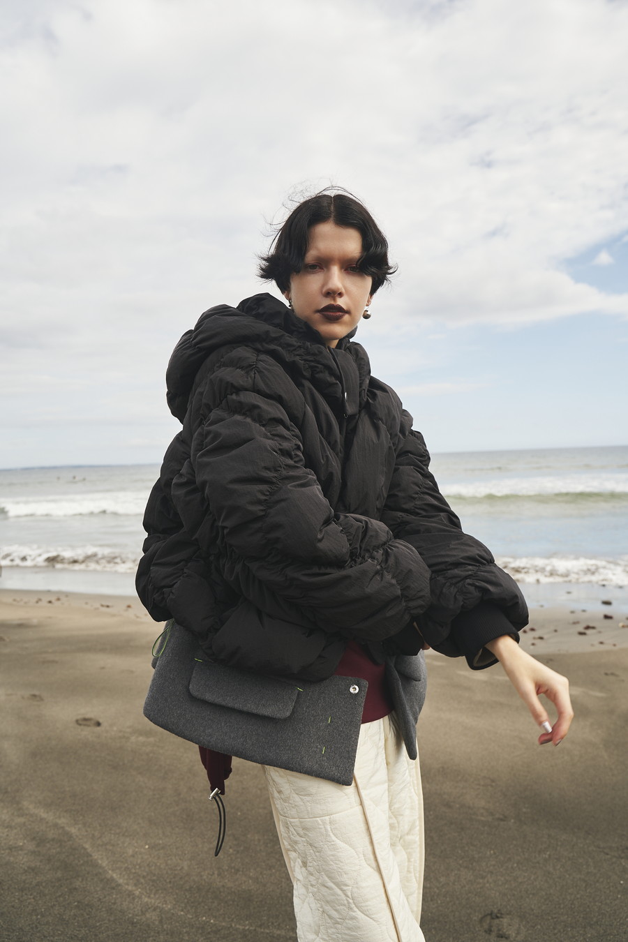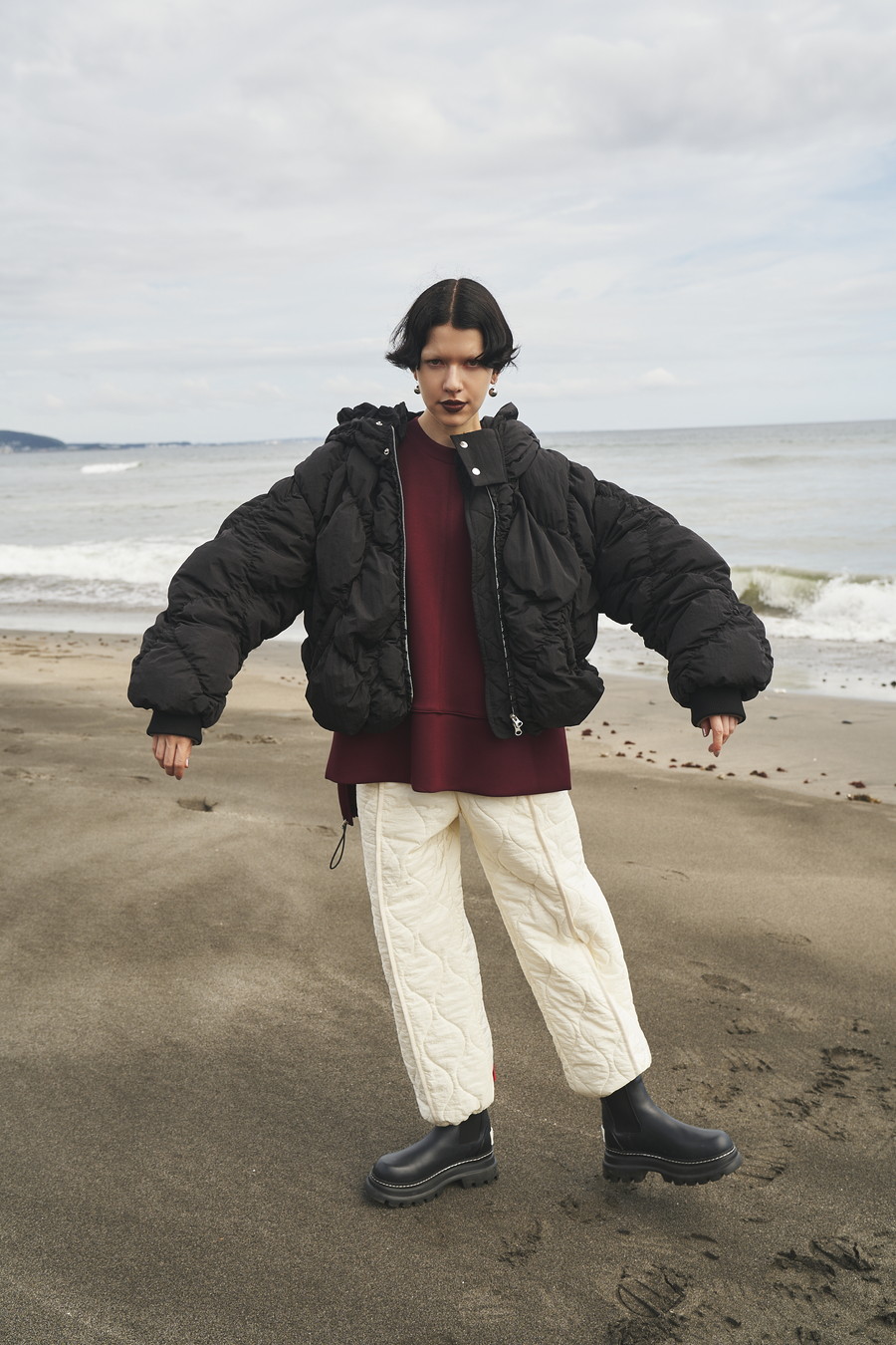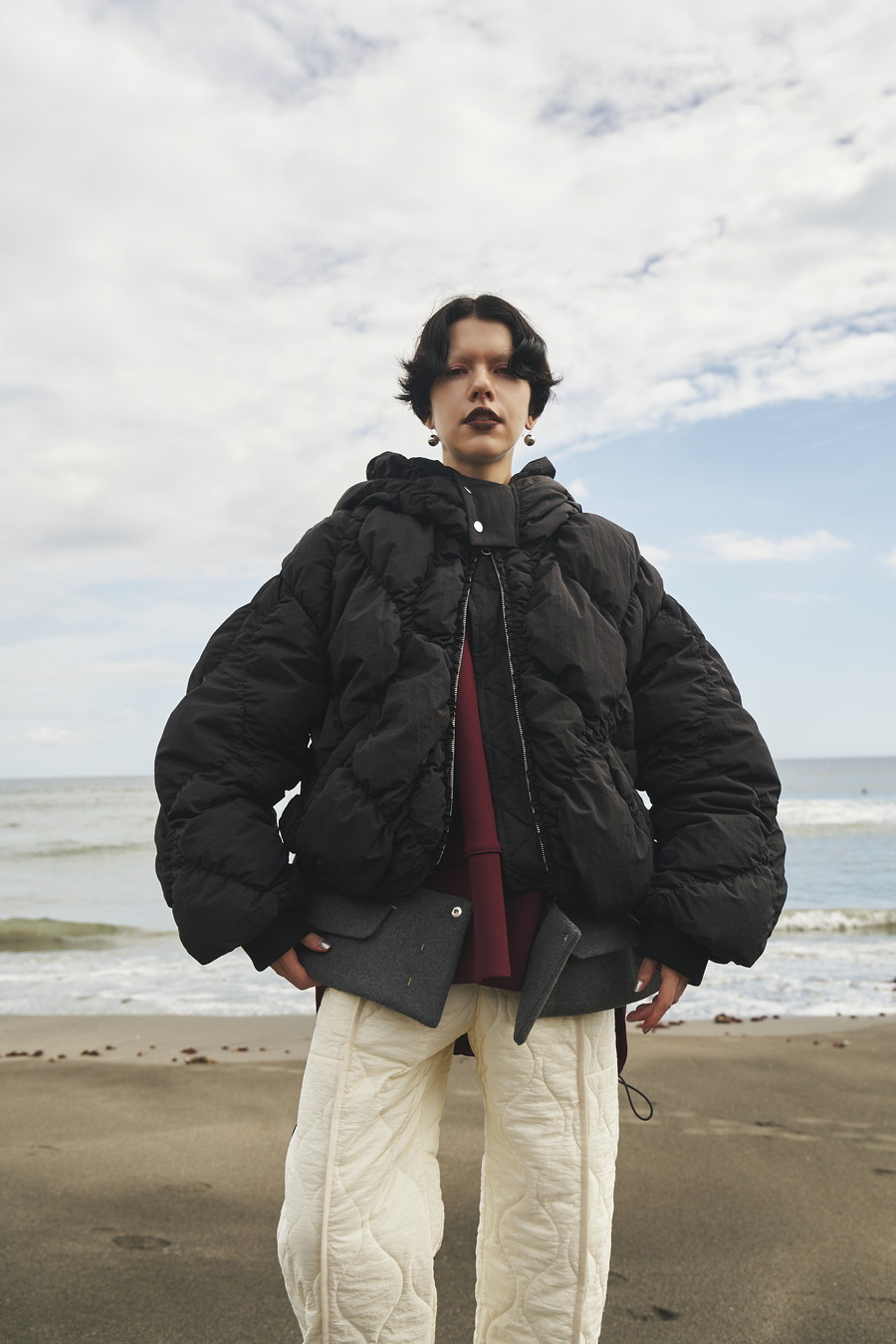 変形したキルティング柄にシャーリングを施した、OMMOらしい1着。