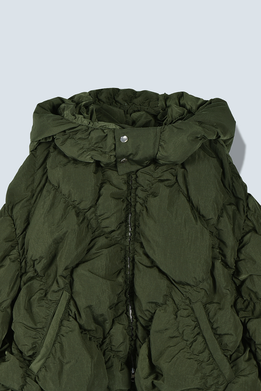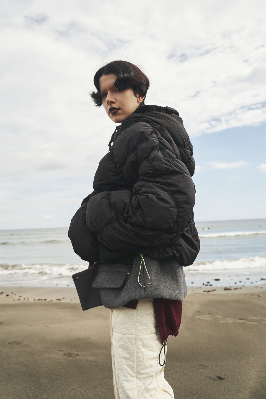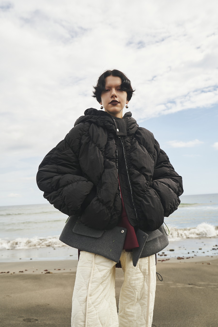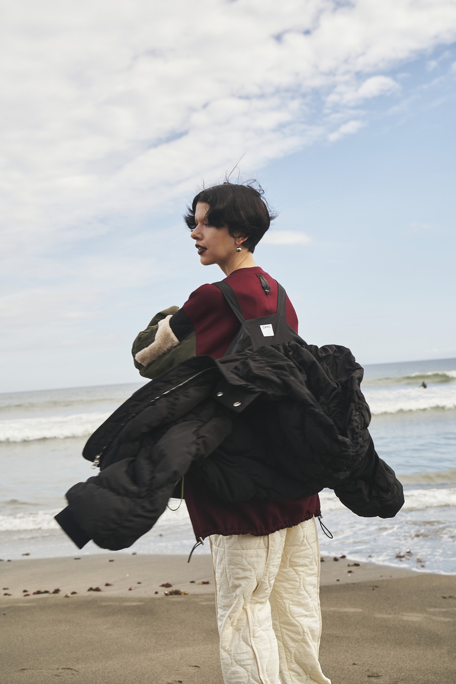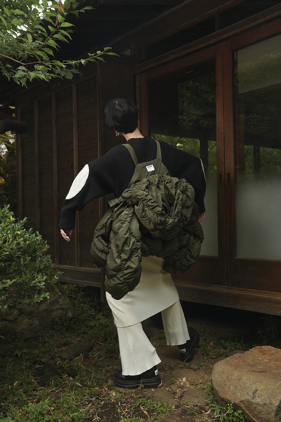変形したキルティング柄にシャーリングを施した、OMMOらしい1着。