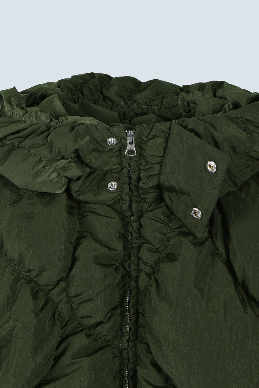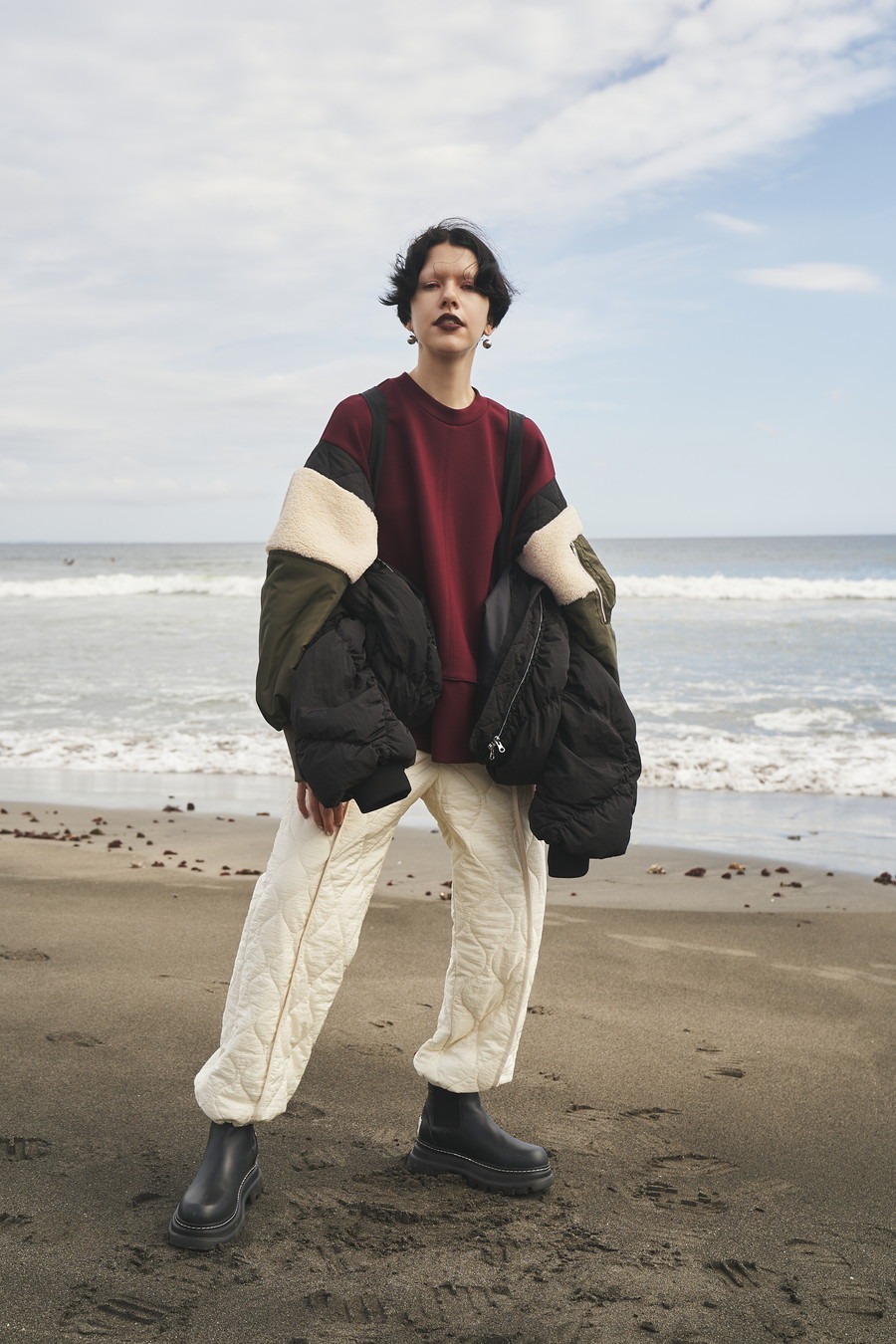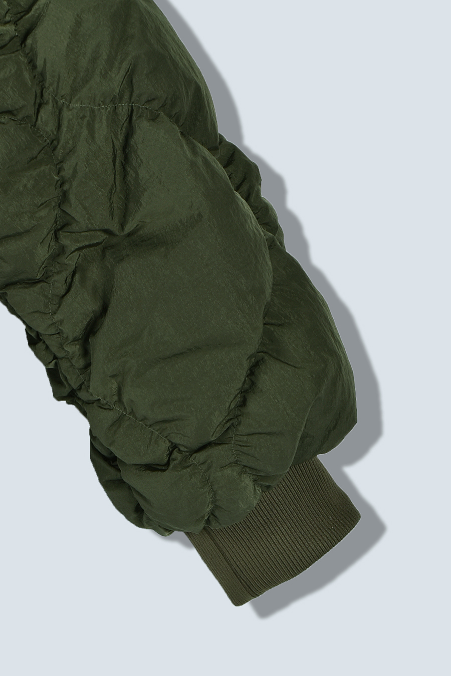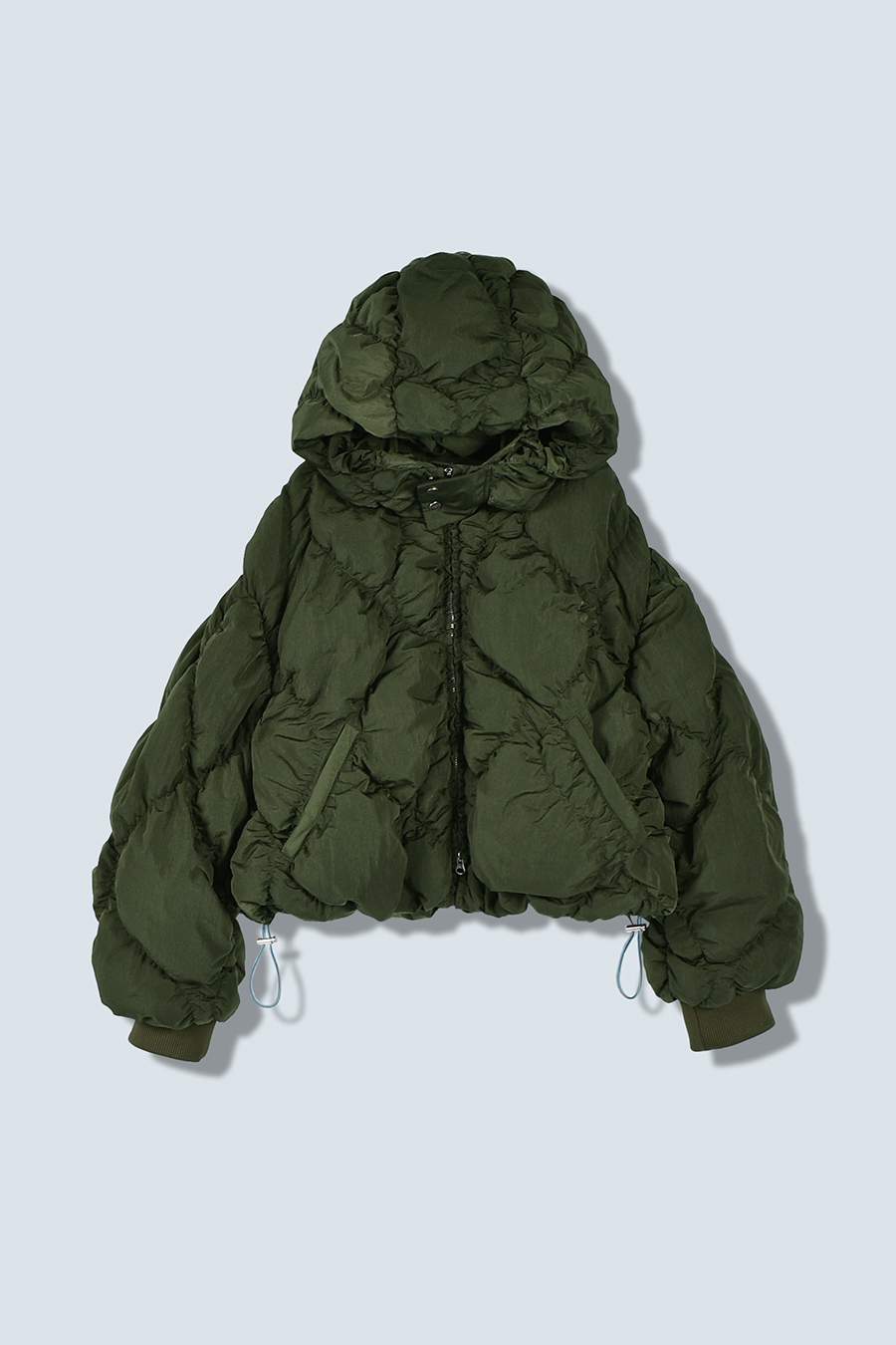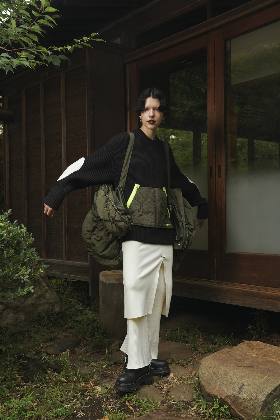変形したキルティング柄にシャーリングを施した、OMMOらしい1着。