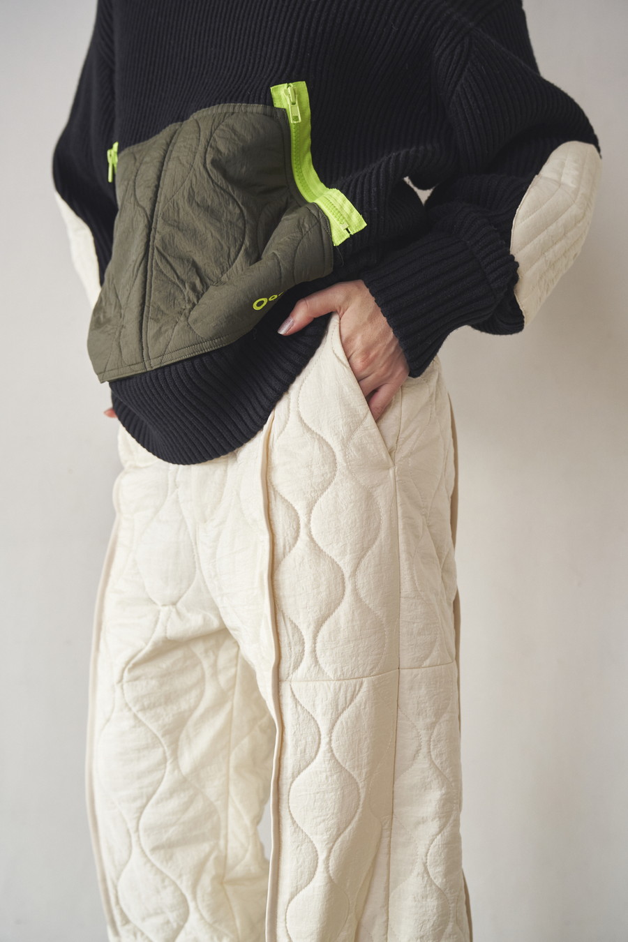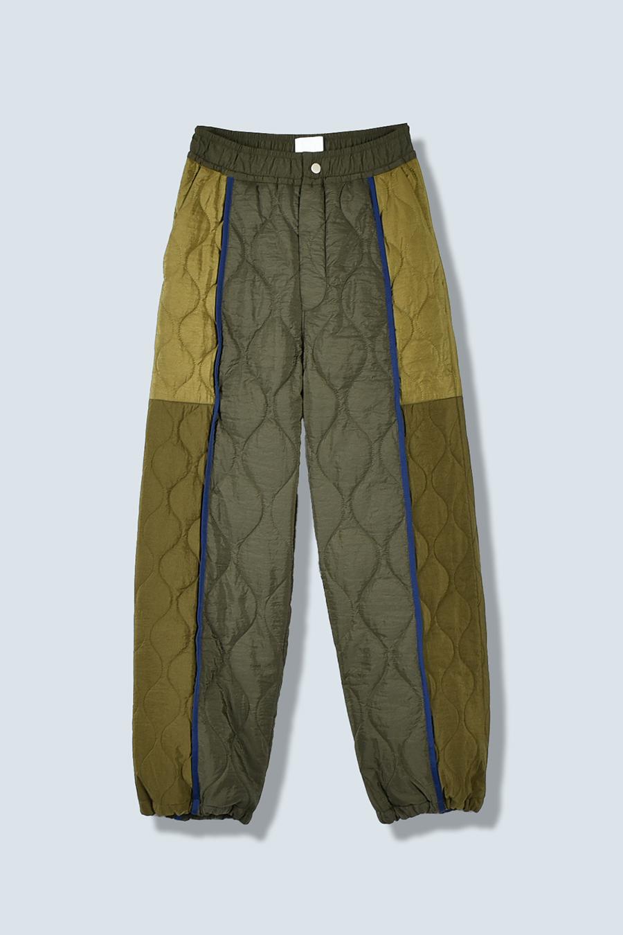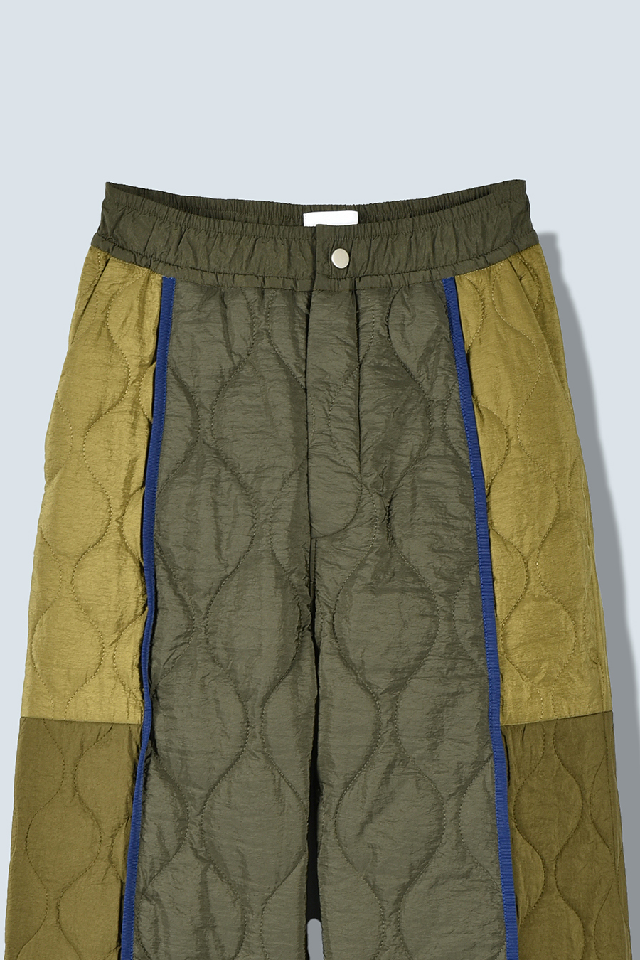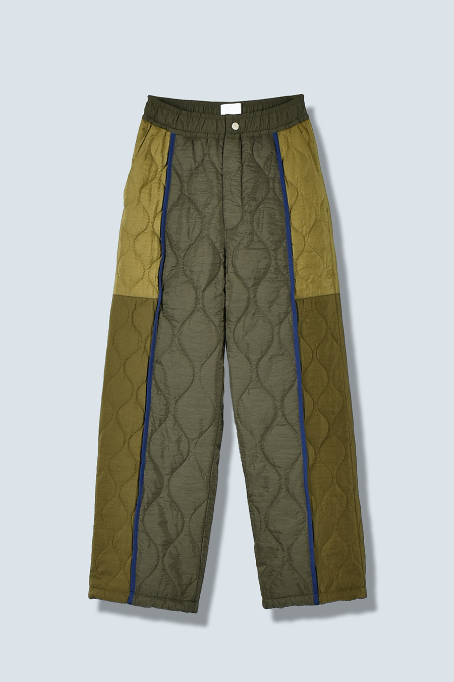 異なるサイズのキルティングを組み合わせた、シンプルながら立体感のある中綿入りキルティングパンツ。太すぎず細すぎない、すっきりとしたシルエットで、どんなトップスともバランスよく決まります。