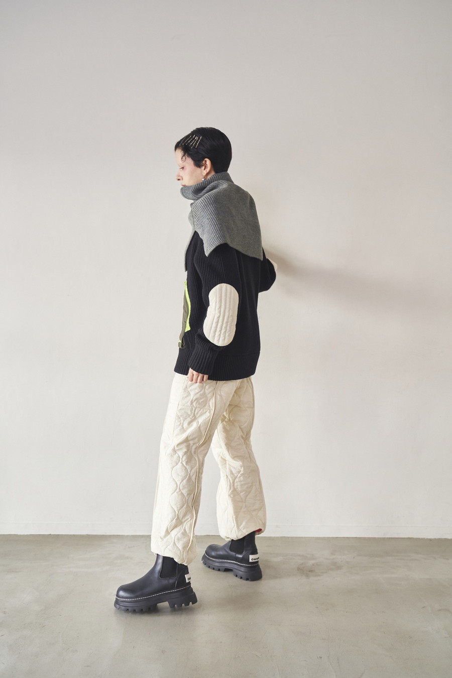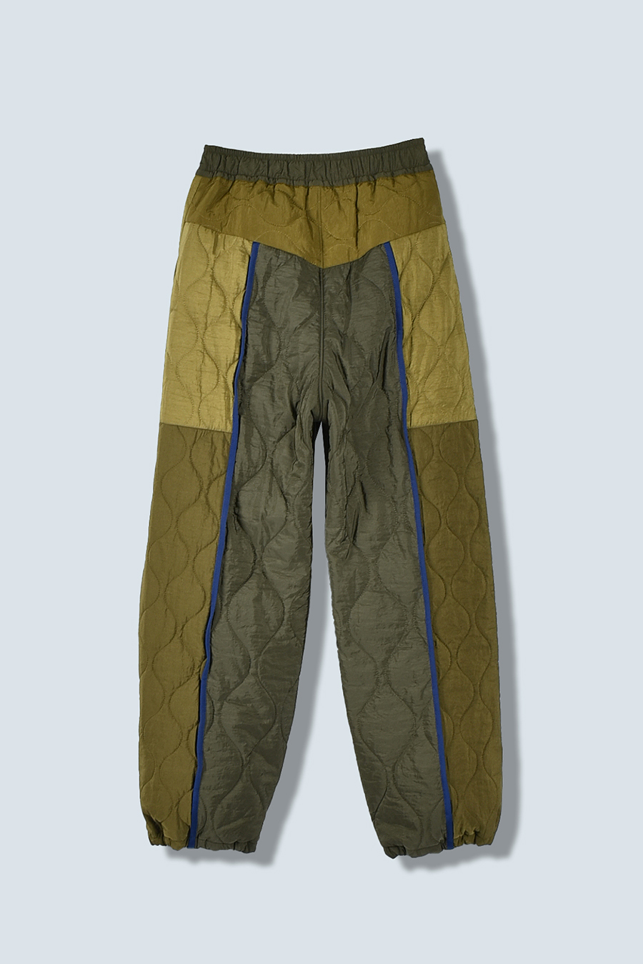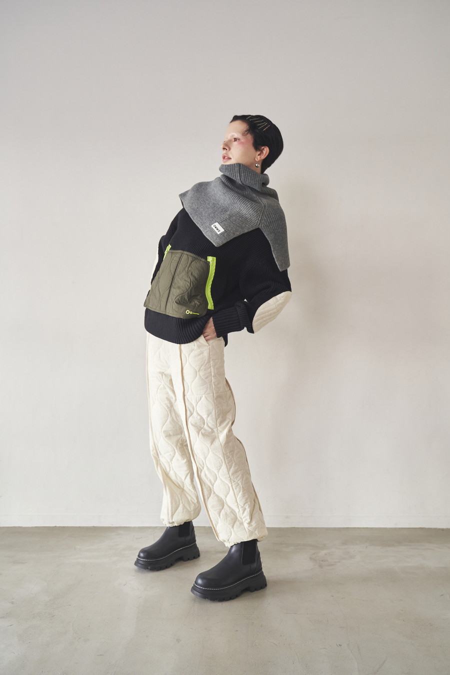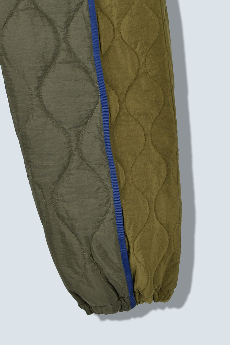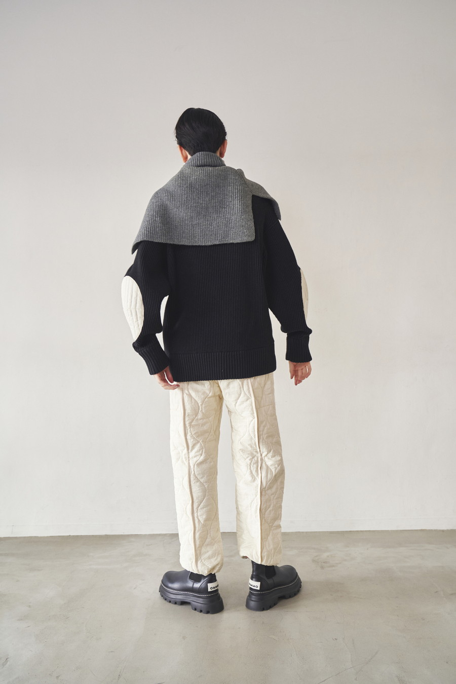 異なるサイズのキルティングを組み合わせた、シンプルながら立体感のある中綿入りキルティングパンツ。太すぎず細すぎない、すっきりとしたシルエットで、どんなトップスともバランスよく決まります。