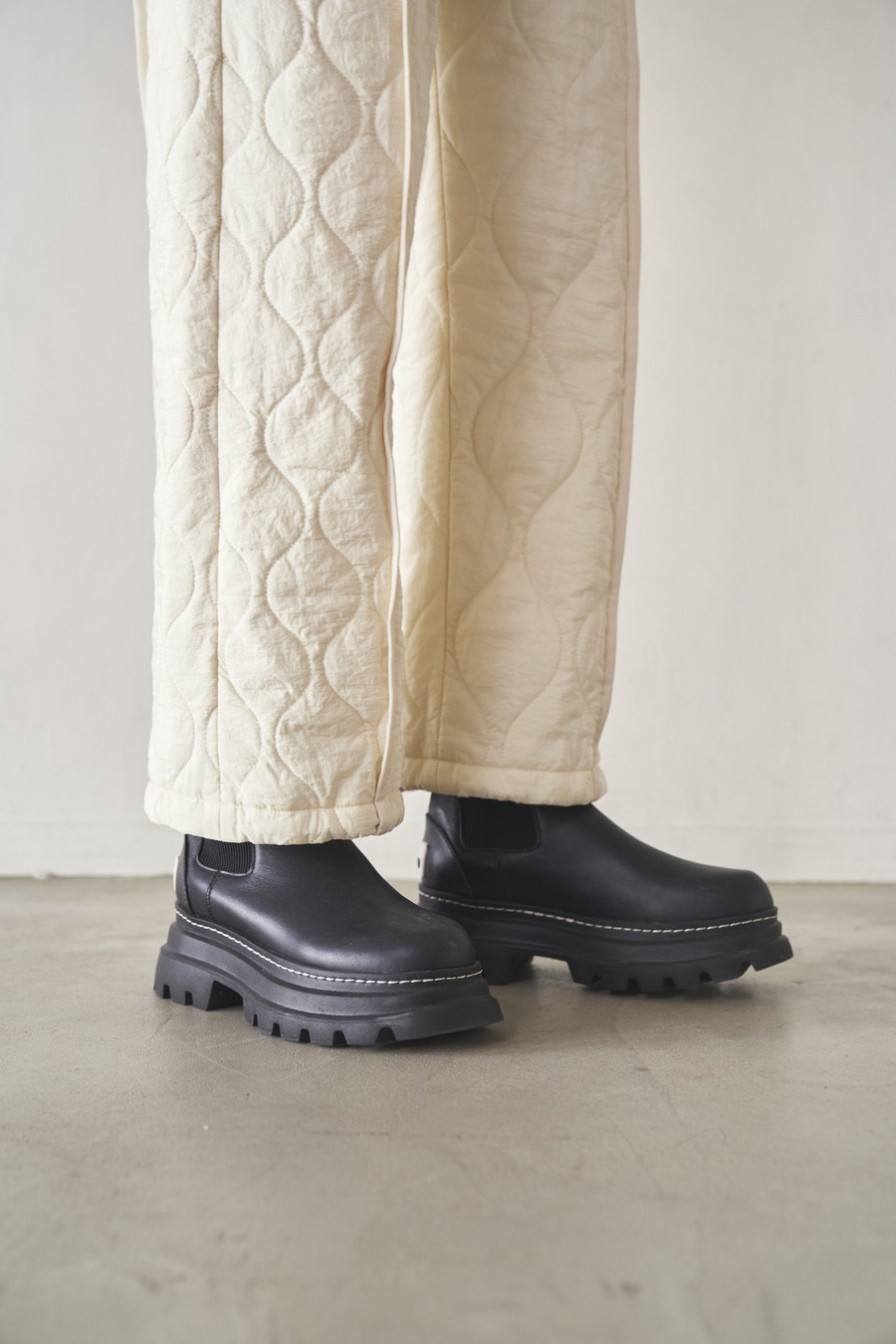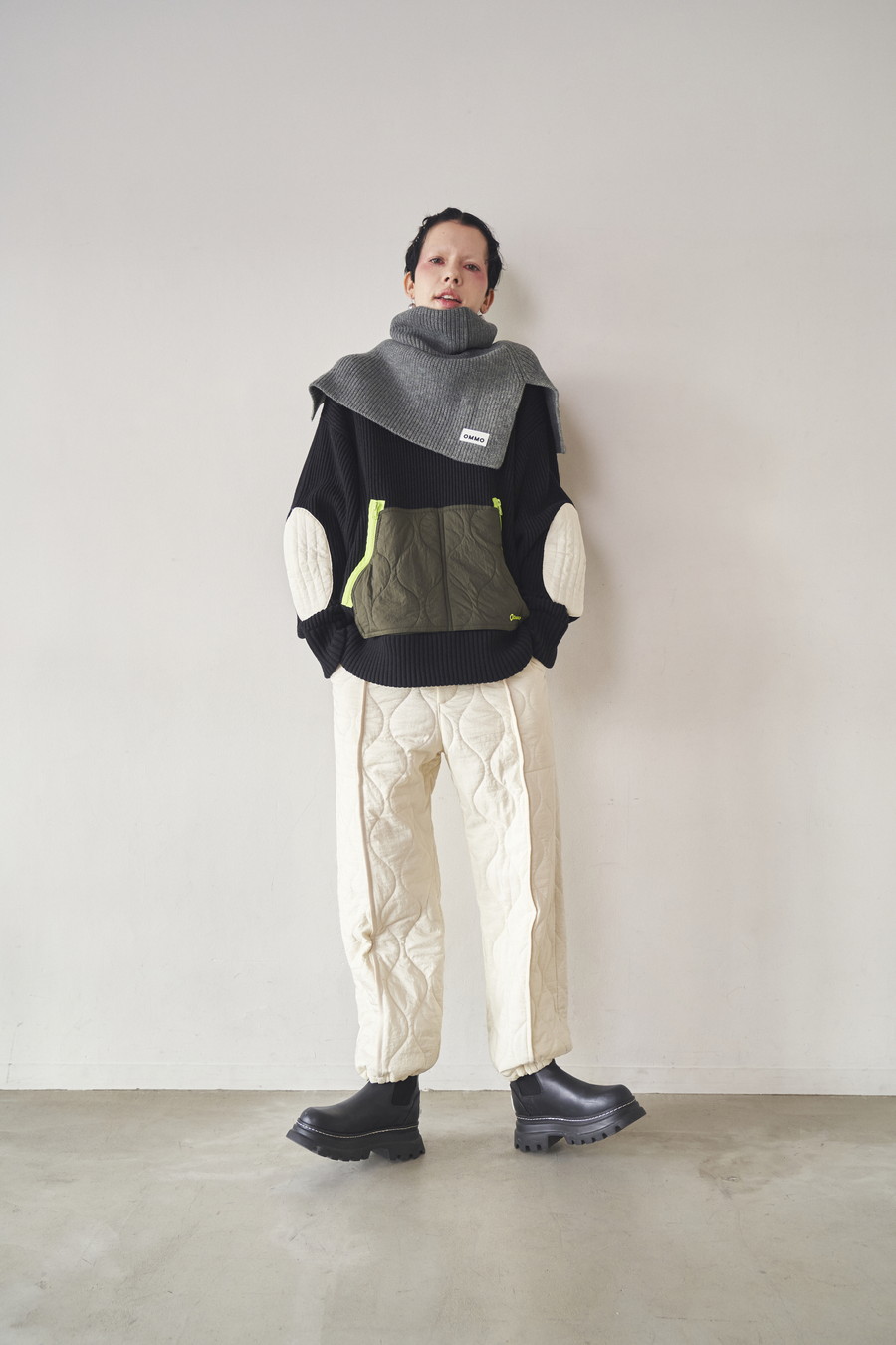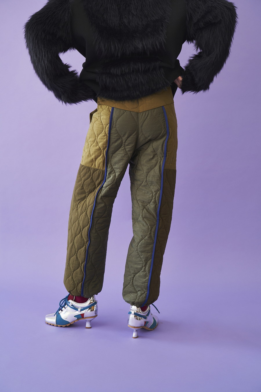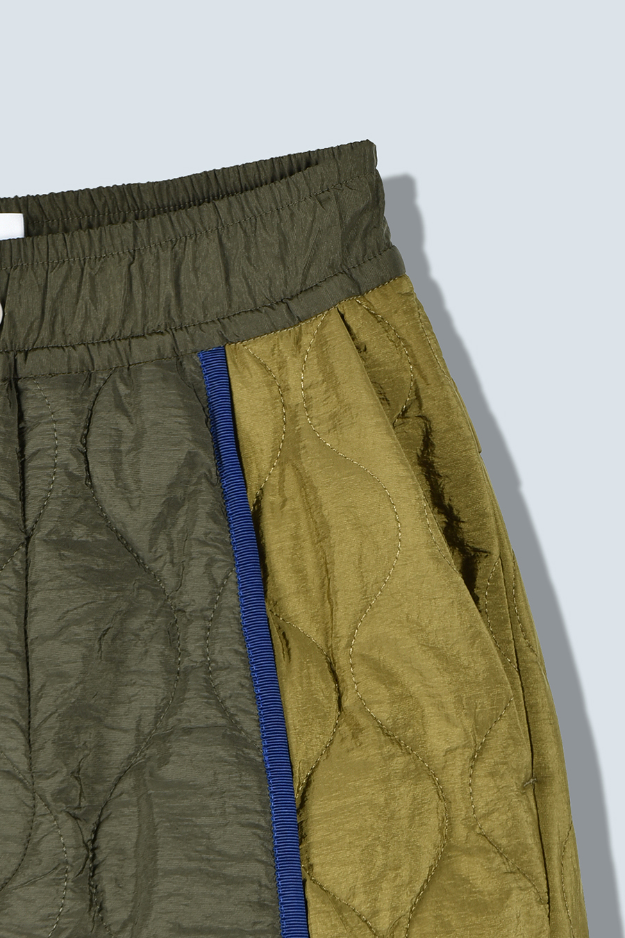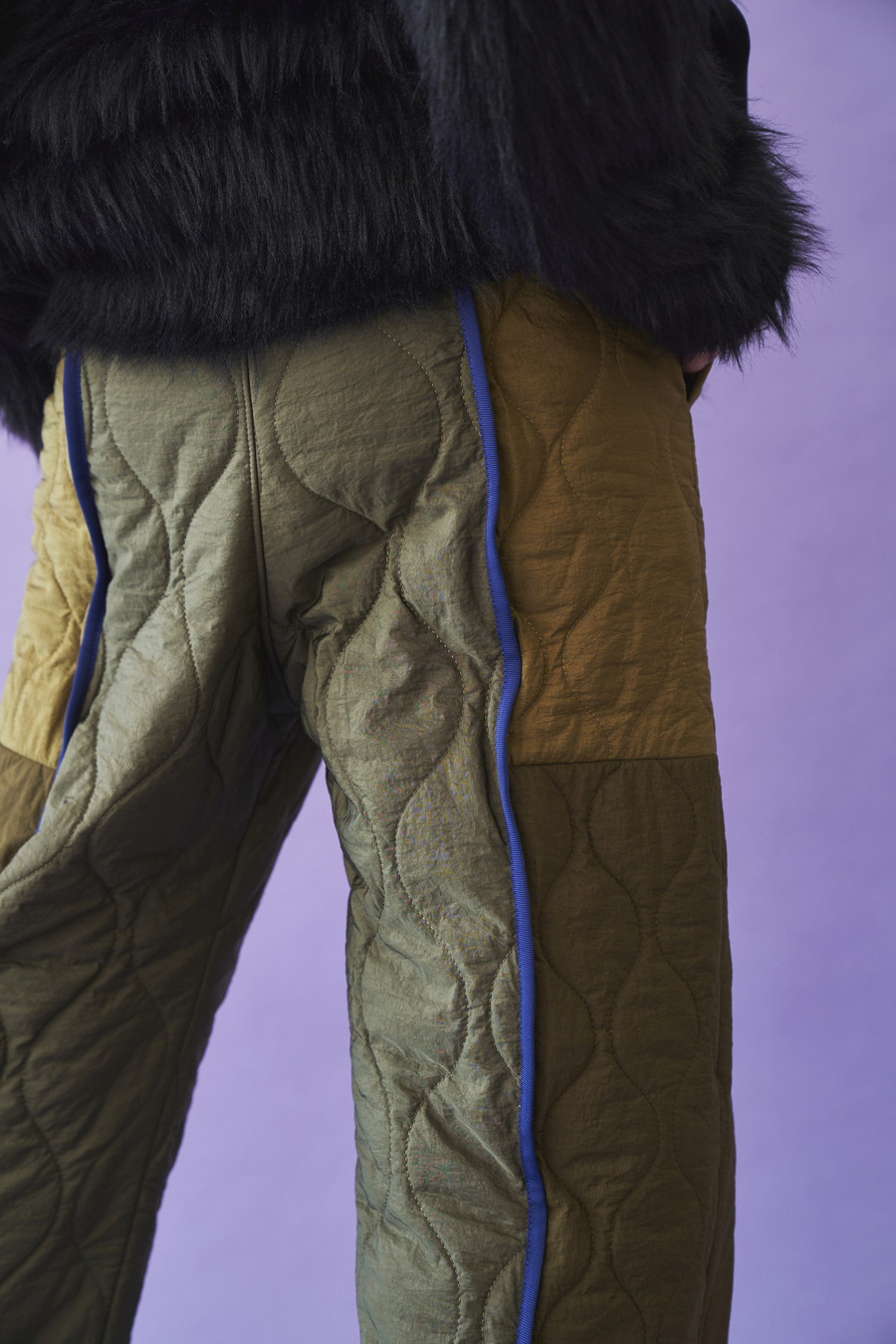 異なるサイズのキルティングを組み合わせた、シンプルながら立体感のある中綿入りキルティングパンツ。太すぎず細すぎない、すっきりとしたシルエットで、どんなトップスともバランスよく決まります。