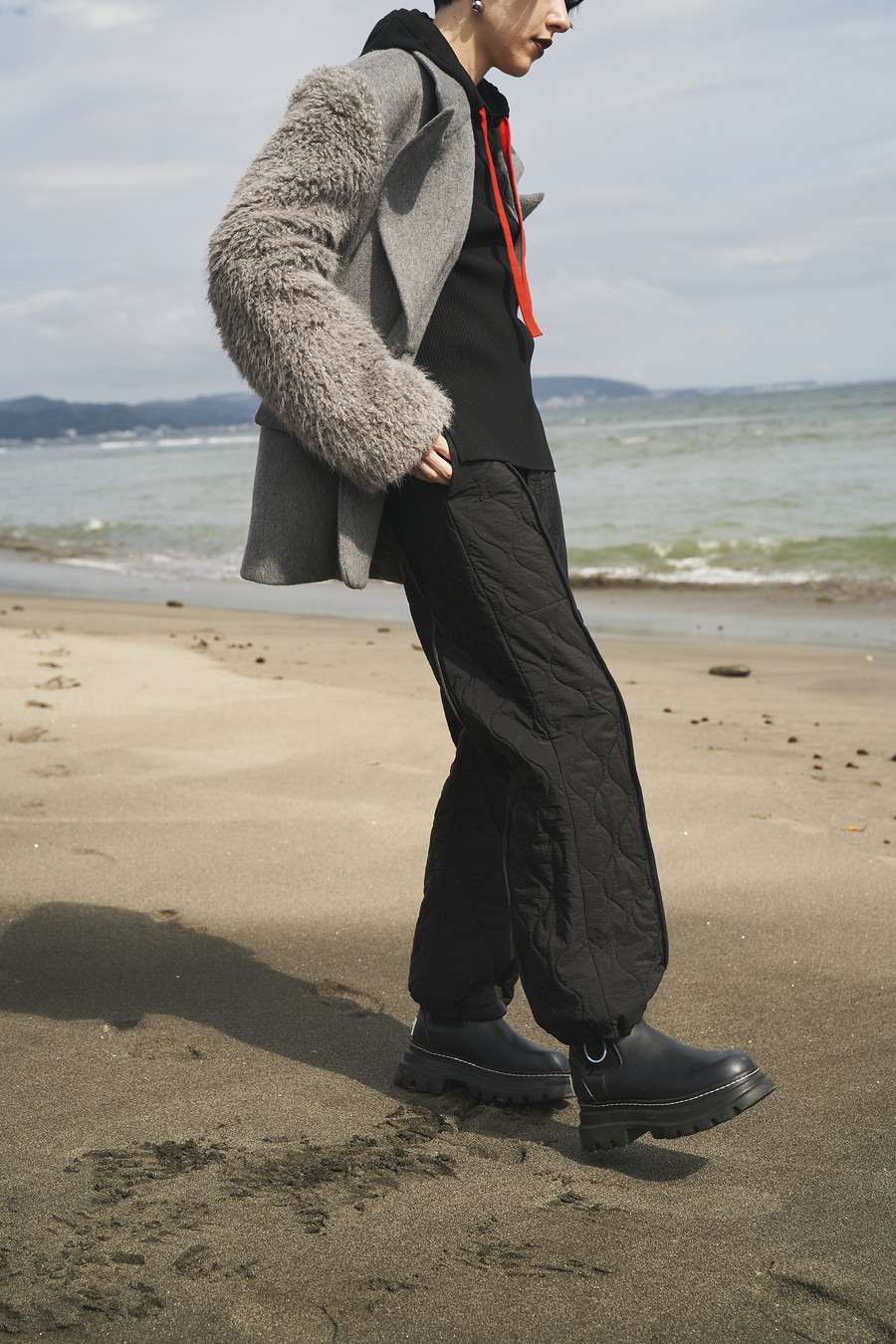 防寒性もあり、寒い季節のスタイリングにぴったりな一着です。