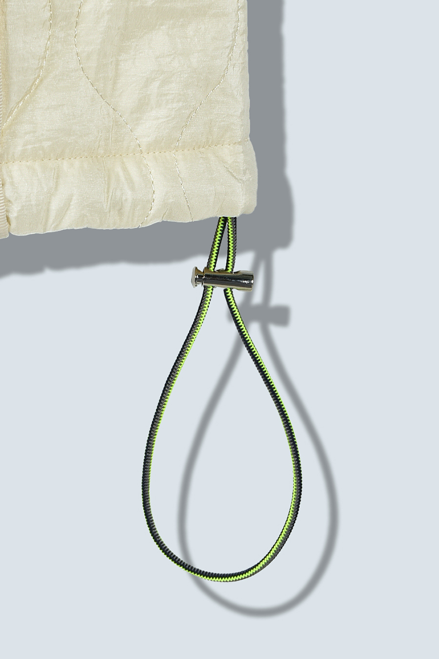 裾にはドローコードがあり、ストレートからバルーンシルエットまで自在に調整可能。