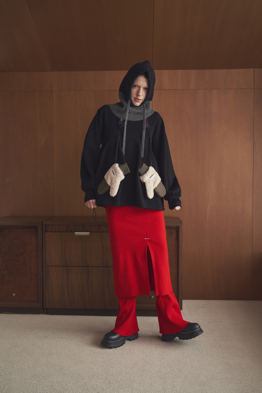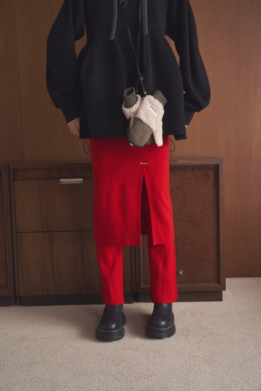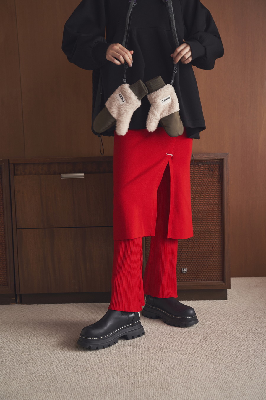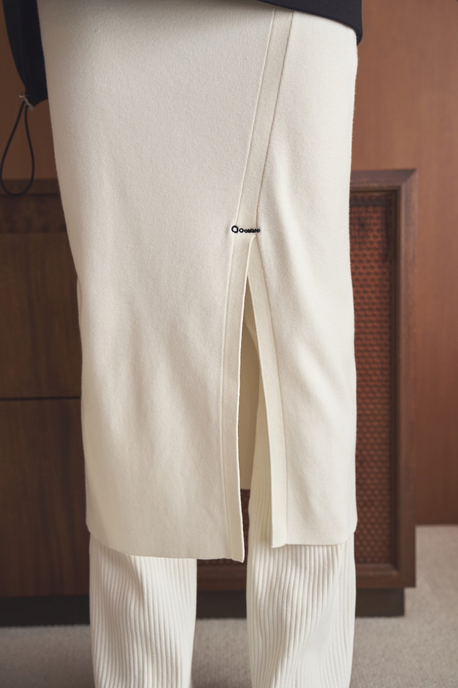 スリット部分にはさりげなくOMMOのロゴ刺繍入りで、ディテールまでこだわった一着です。