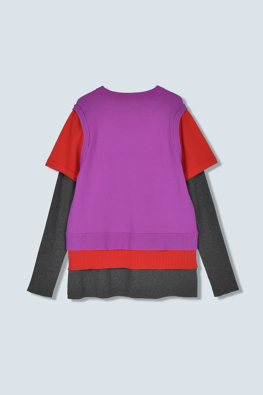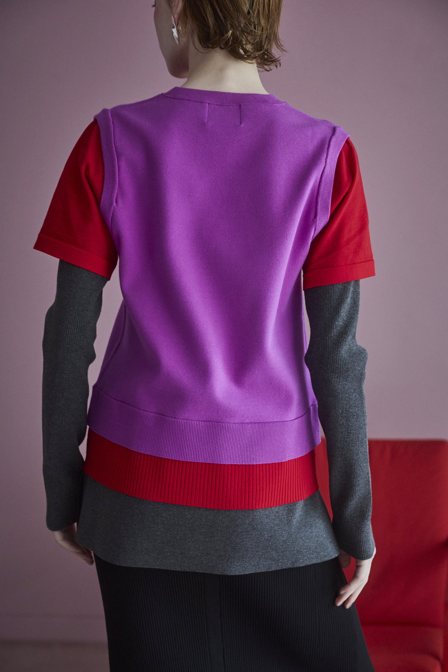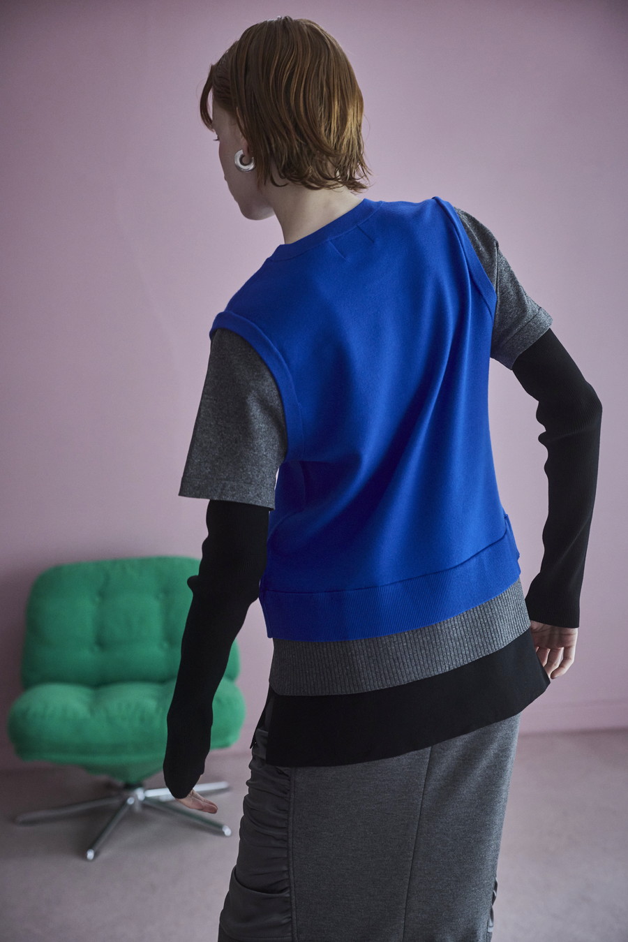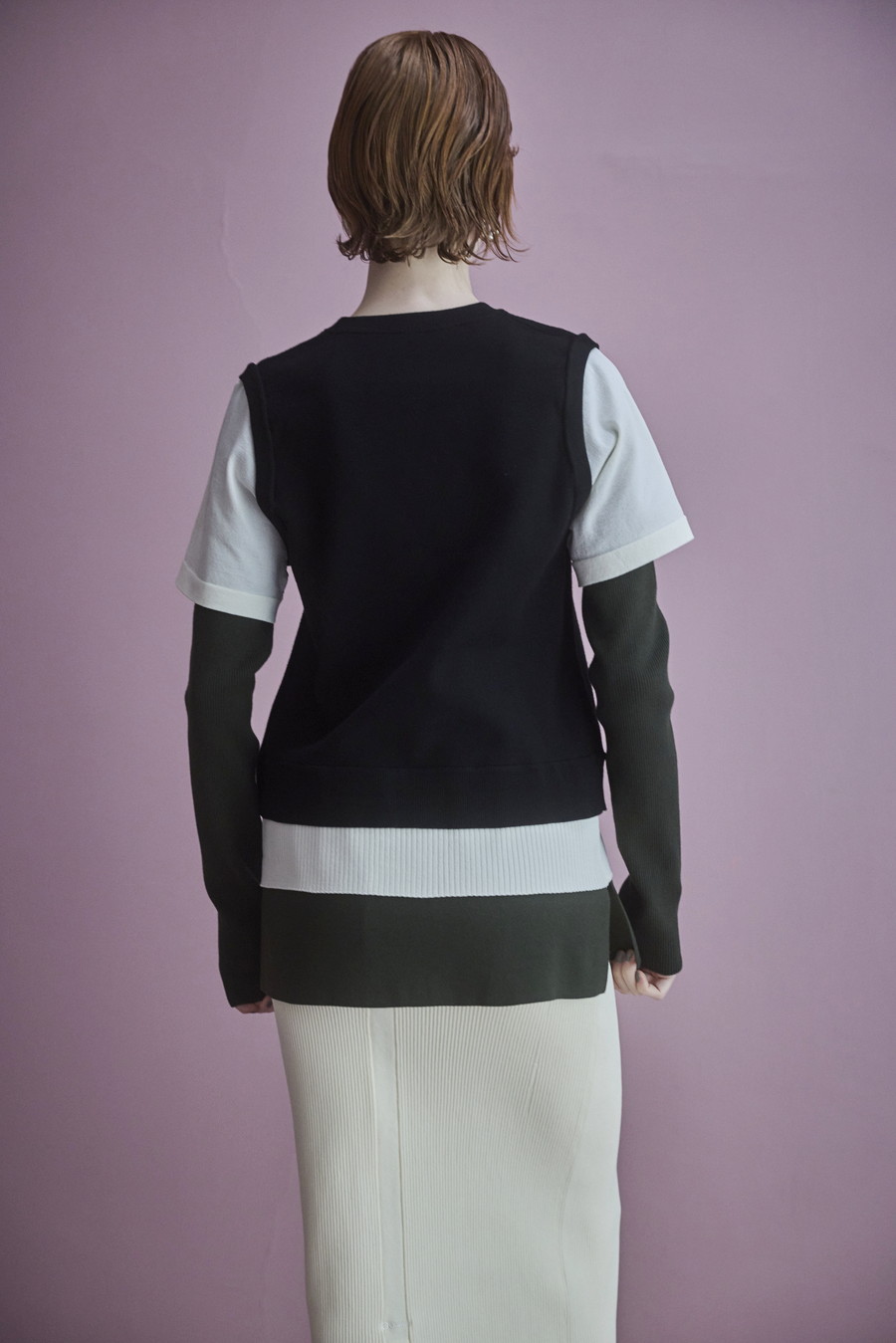 トレンド感のあるレイヤードデザインが目を引くニットトップス。ニットならではの上品さがあり、カジュアルに寄りすぎず着こなせる1着です。