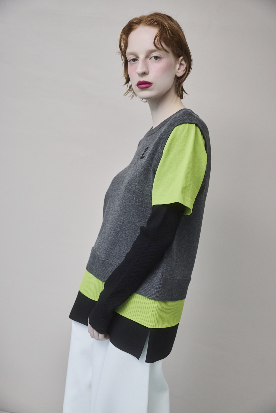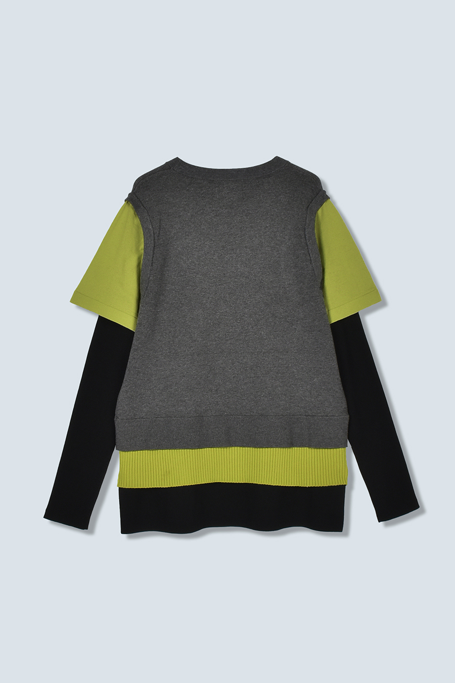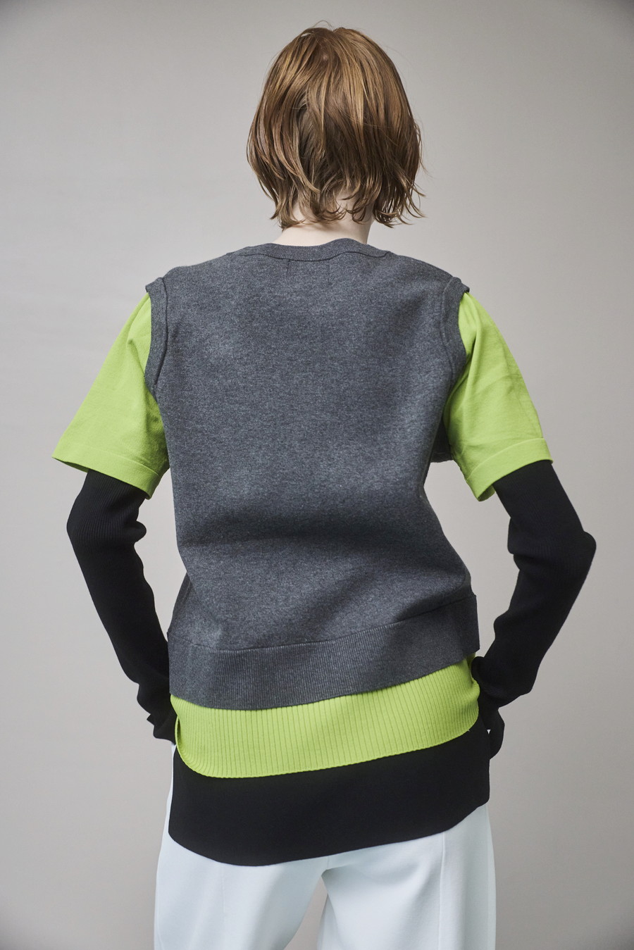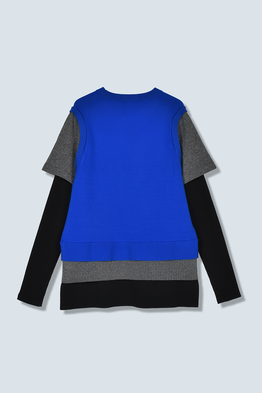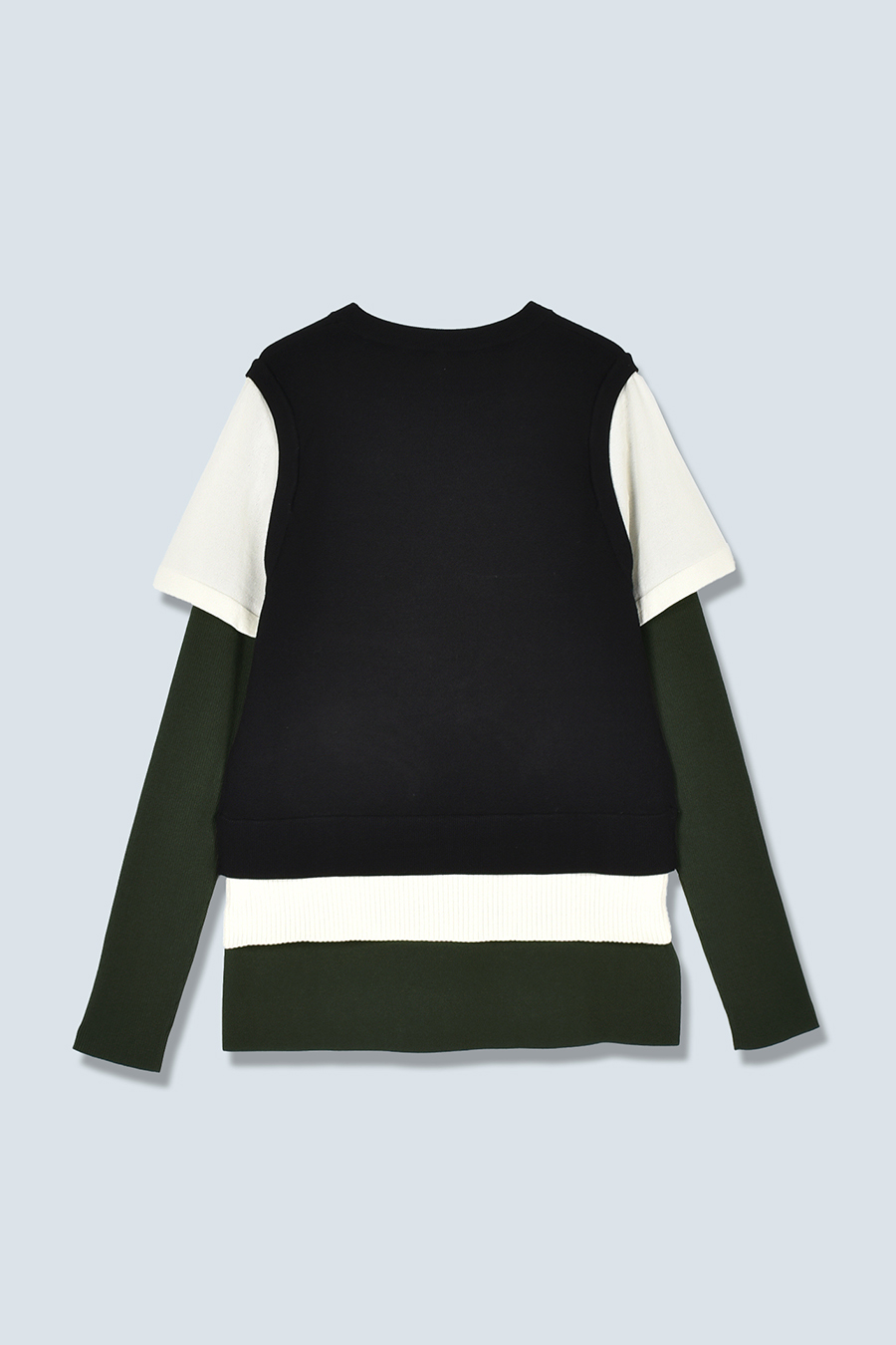トレンド感のあるレイヤードデザインが目を引くニットトップス。ニットならではの上品さがあり、カジュアルに寄りすぎず着こなせる1着です。