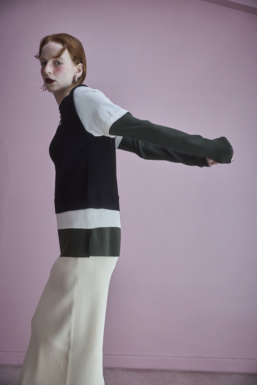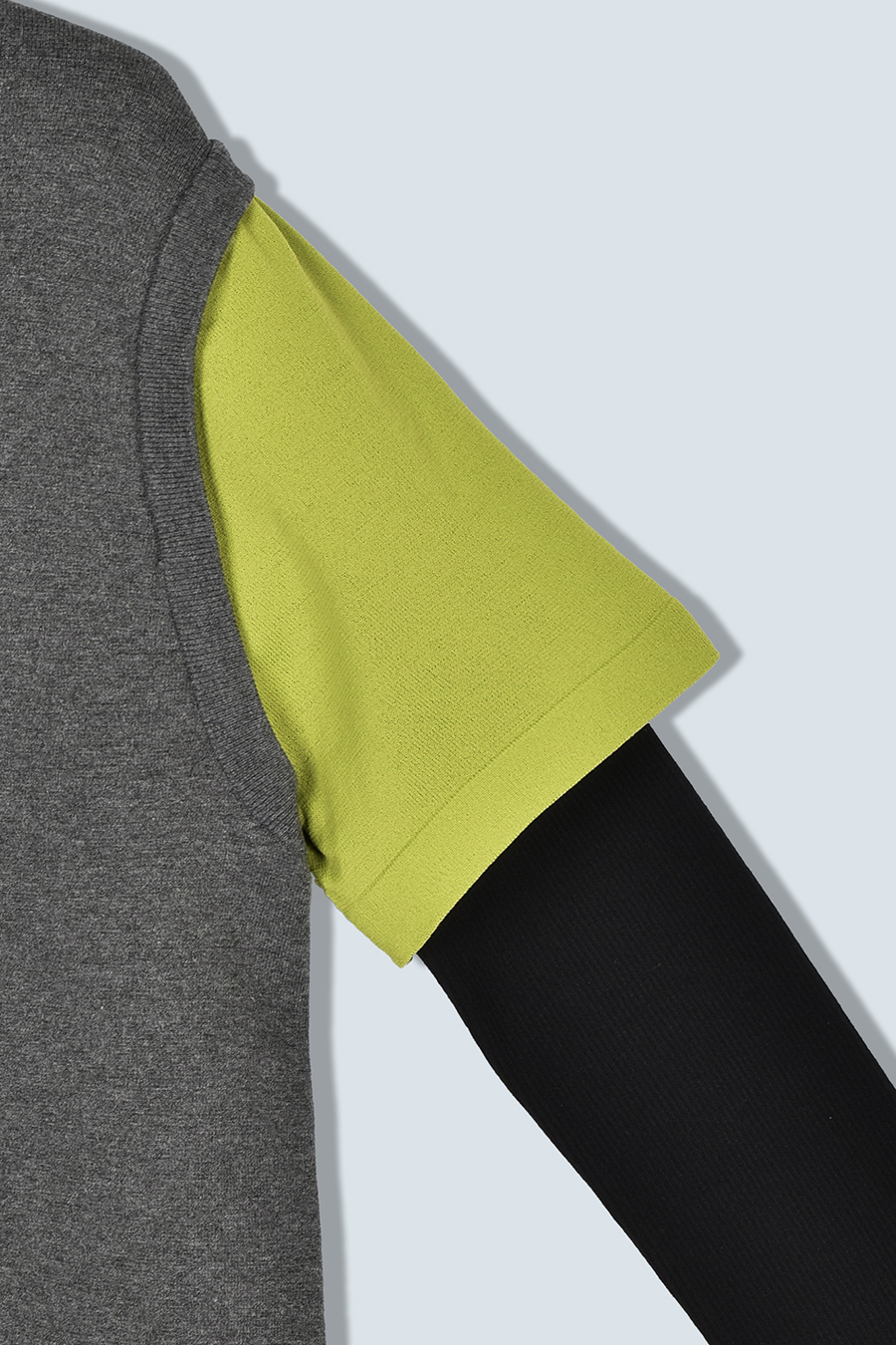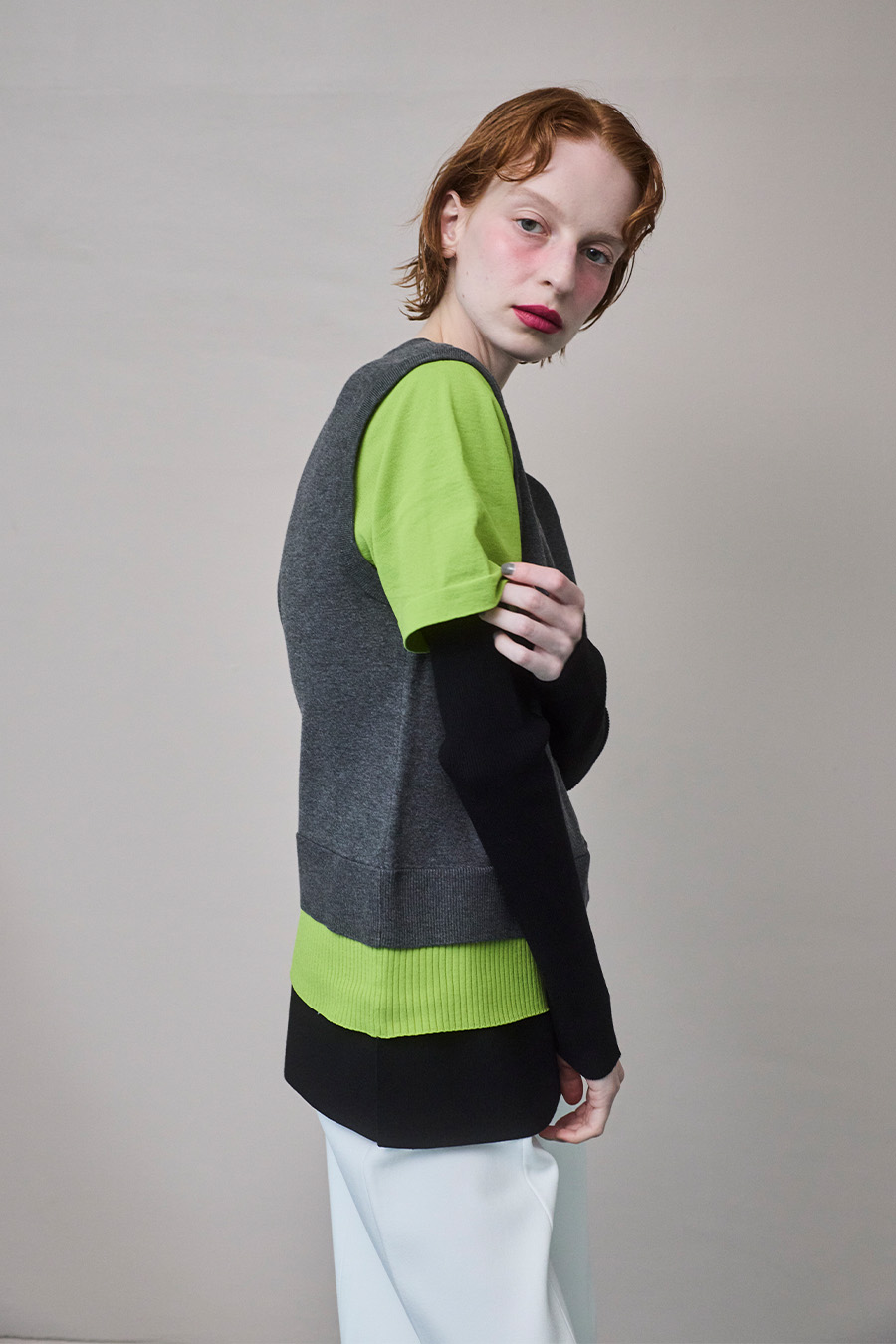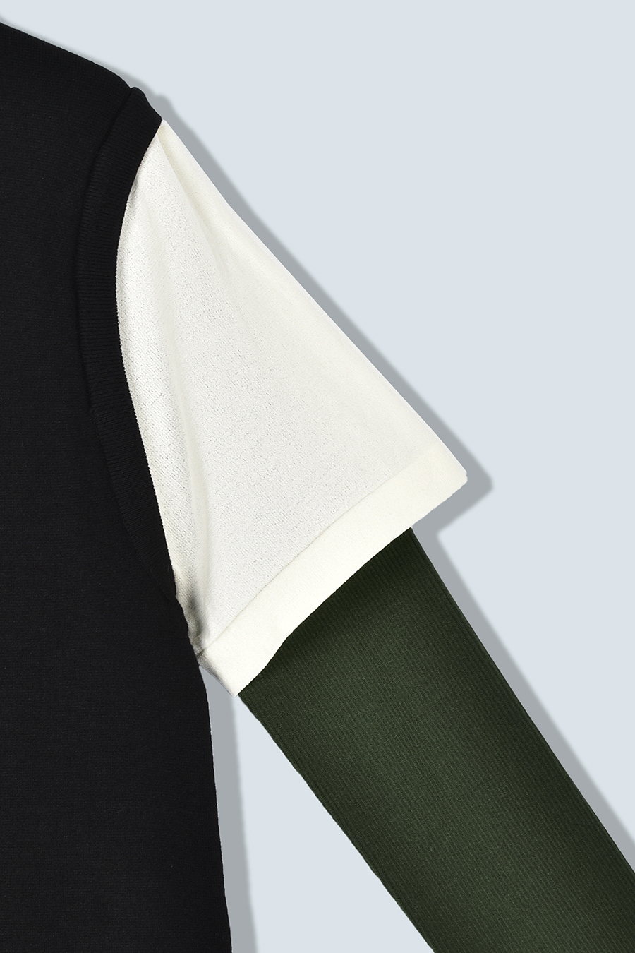トレンド感のあるレイヤードデザインが目を引くニットトップス。ニットならではの上品さがあり、カジュアルに寄りすぎず着こなせる1着です。