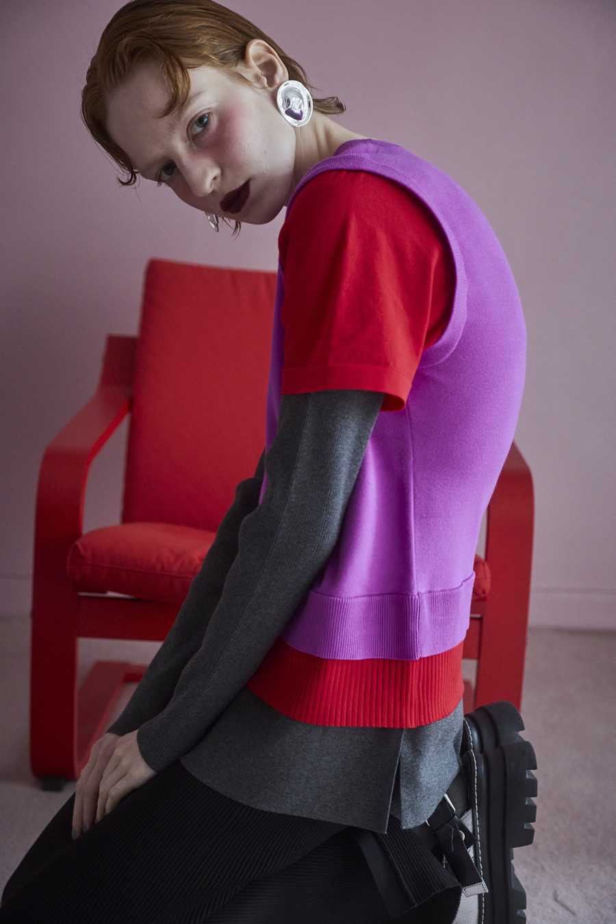 OMMOらしい配色がスタイルのアクセントになり、1枚でコーディネートが完成するアイテムです。