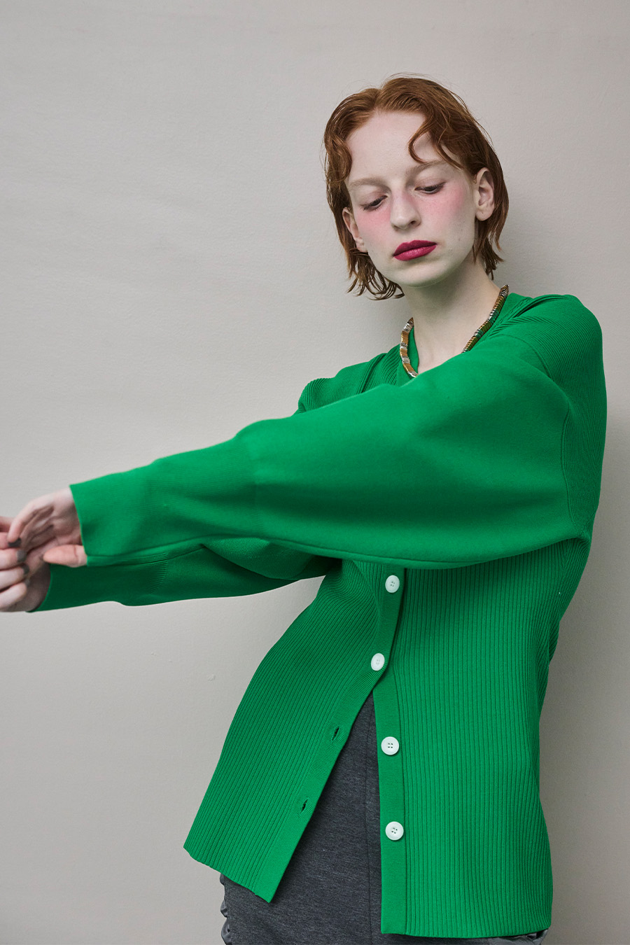 カーディガンとしてはもちろん、トップス感覚でも着こなせる1着です。