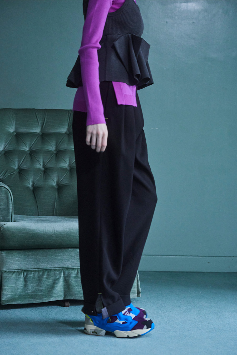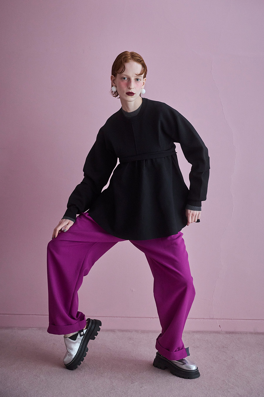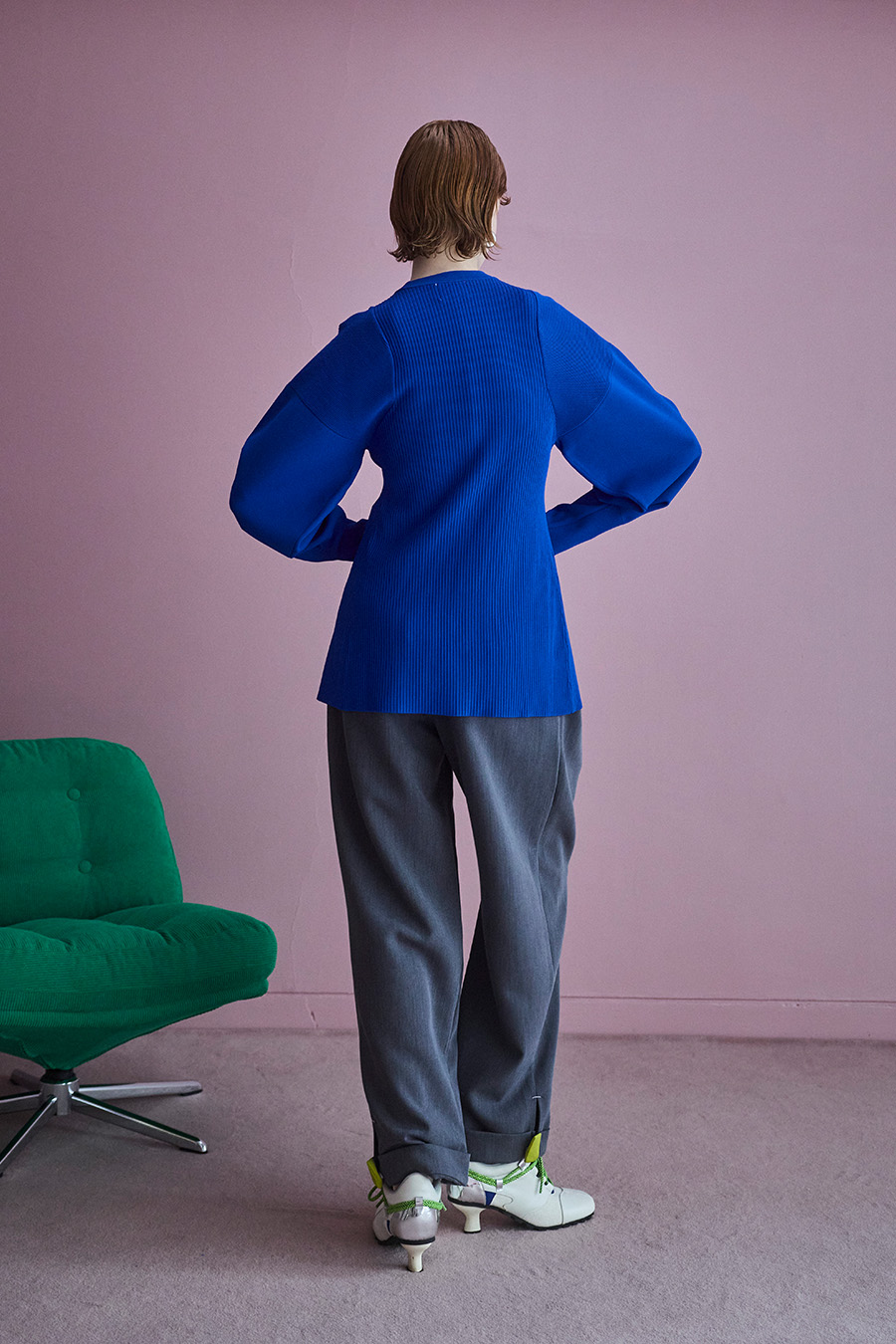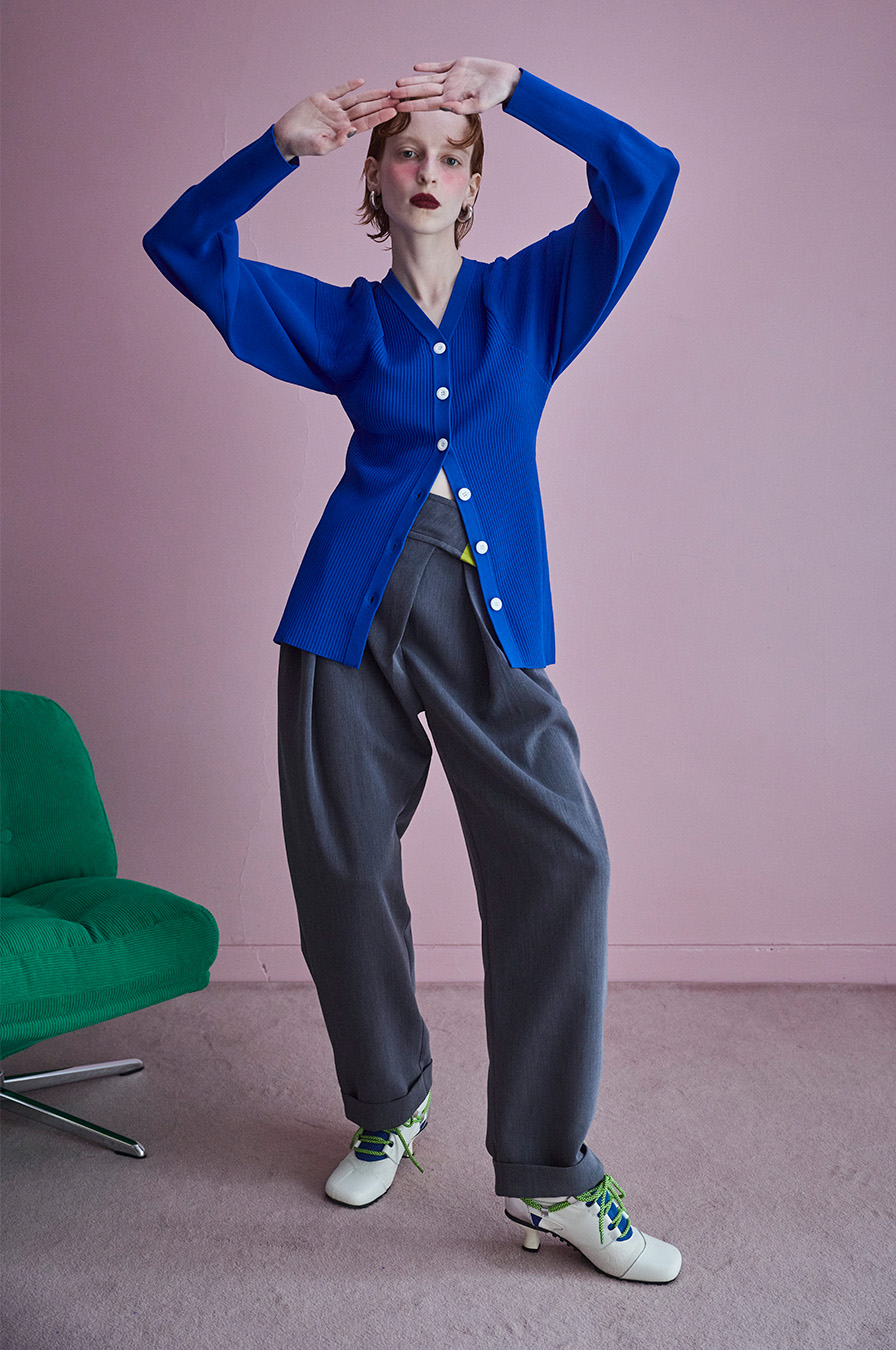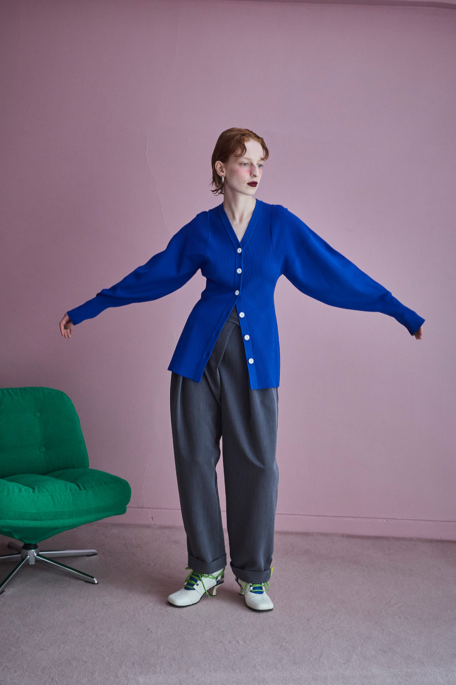 スタイリングに合わせてシルエットの変化ができる1着です。