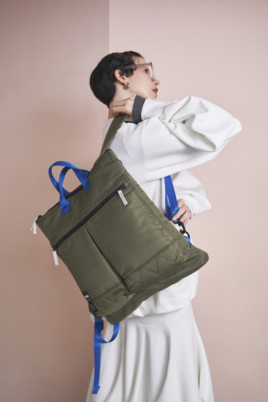 手持ち・ショルダー・リュックの3WAY仕様で、シーンに合わせて使い分けられる実用性の高いデザインです。