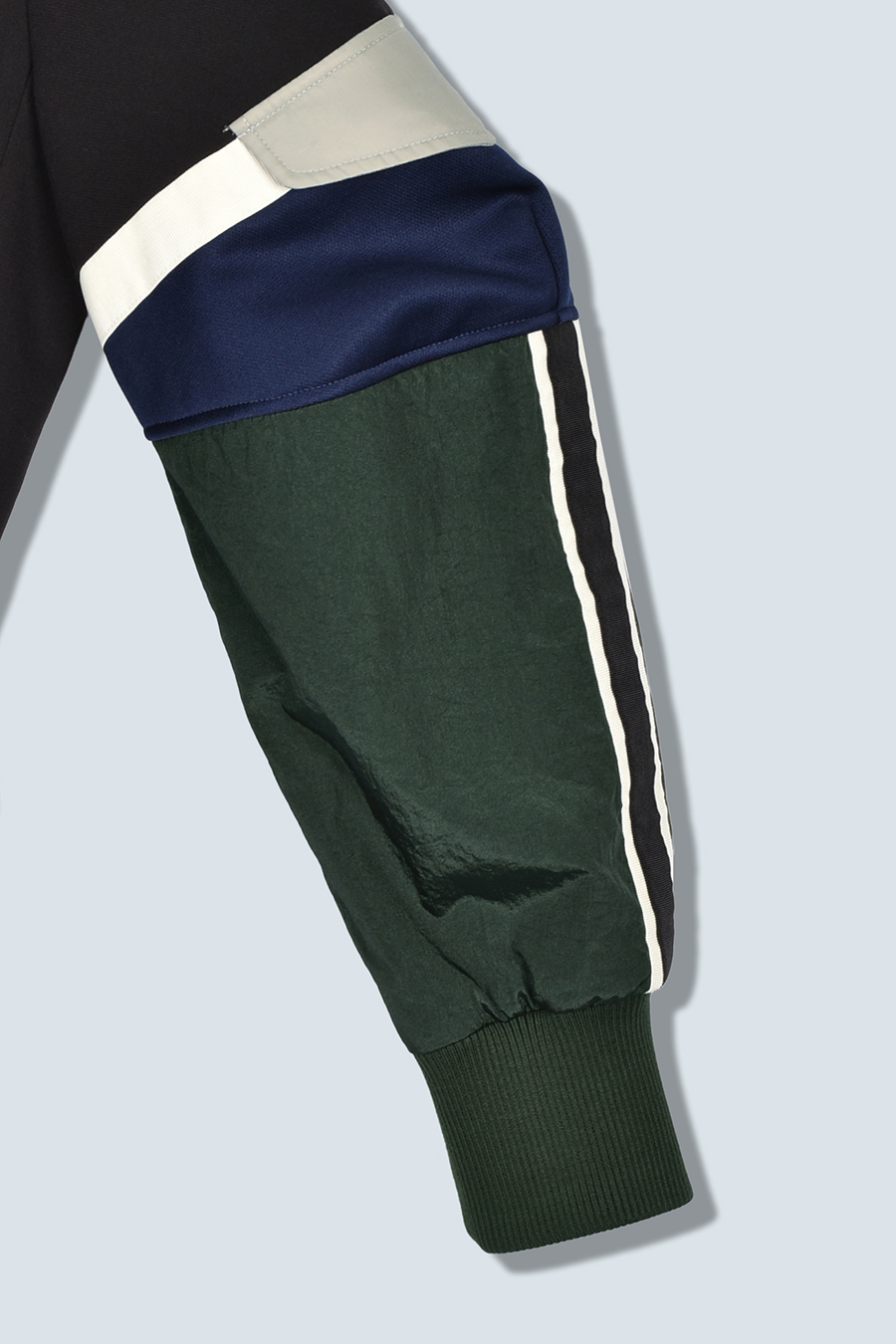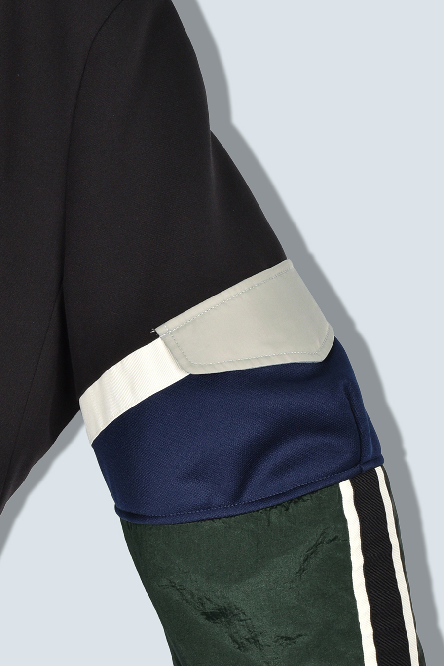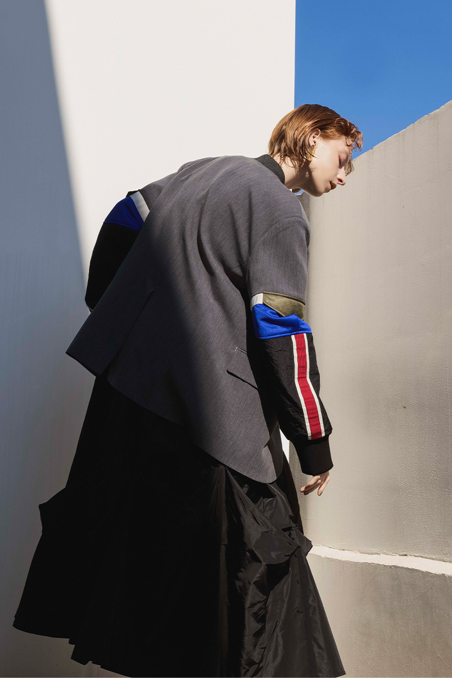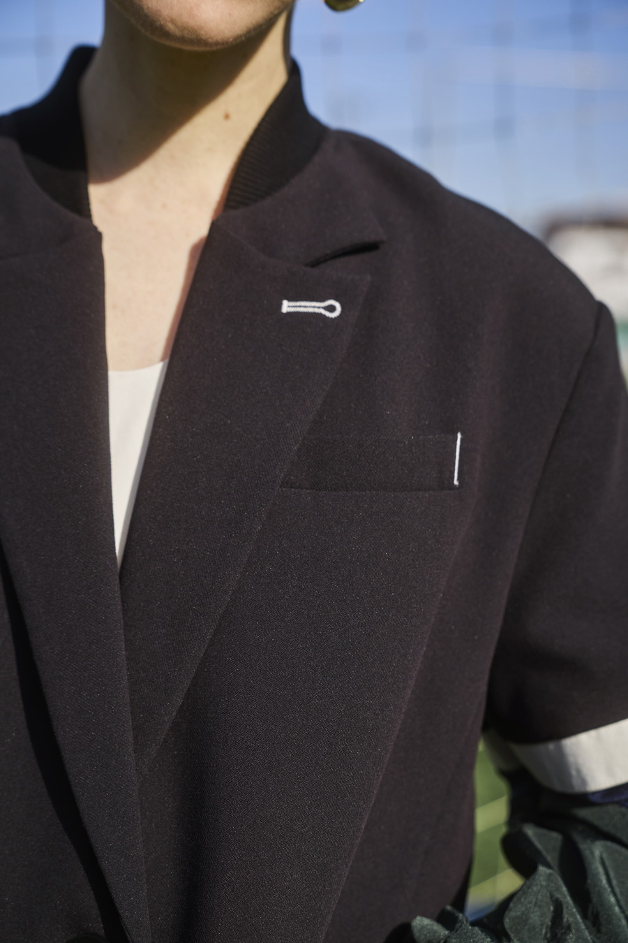 クラシックなテーラードジャケットに、スポーティなトラックジャケットをドッキングさせたハイブリッドデザインのジャケット。袖のドッキング部分には中綿を入れ、立体的なフォルムと軽やかな着用感を両立しています。