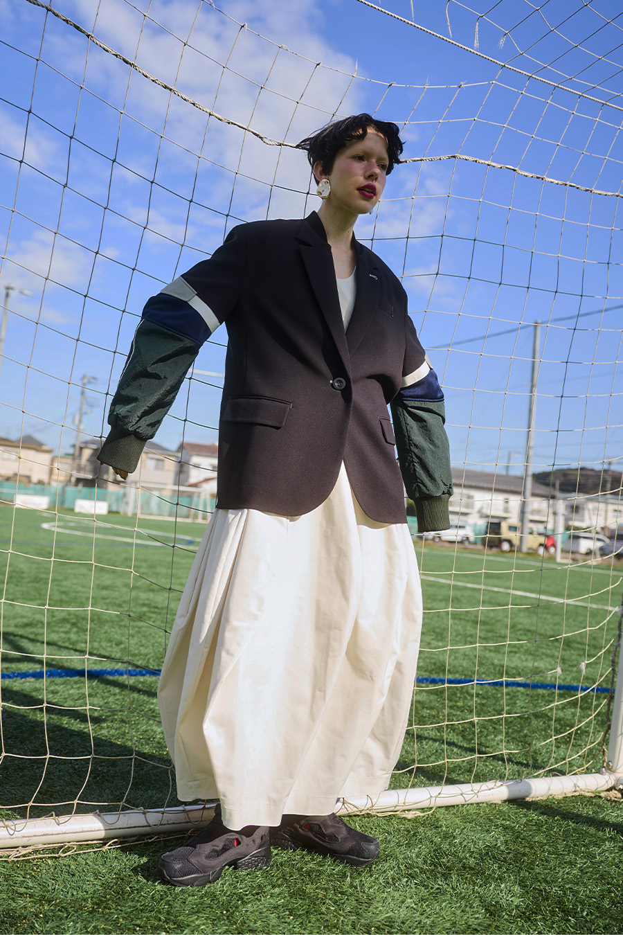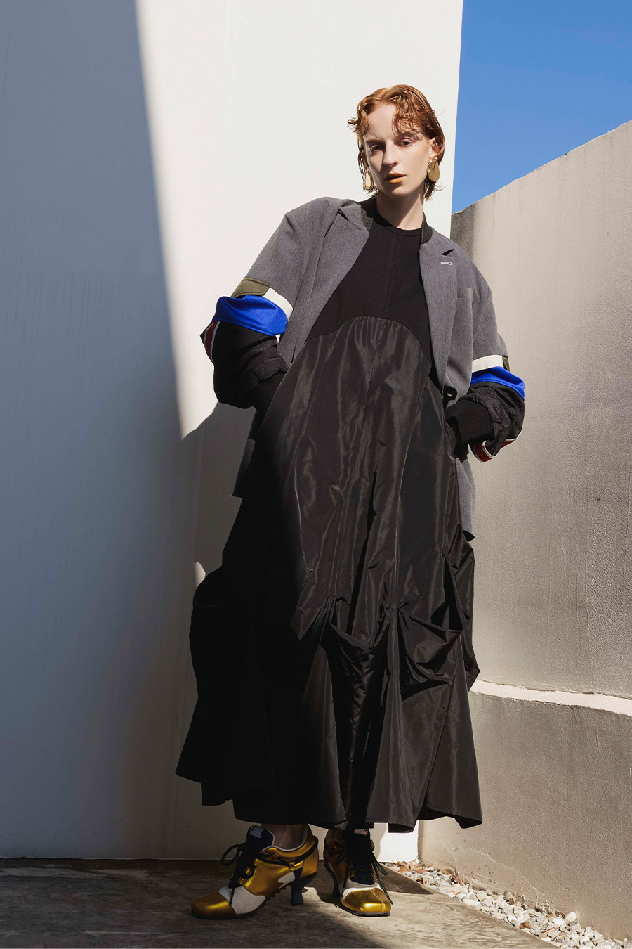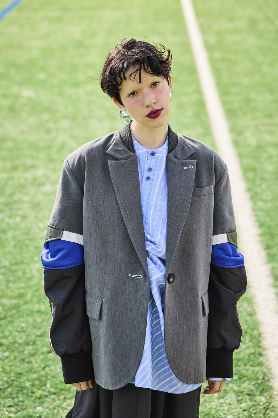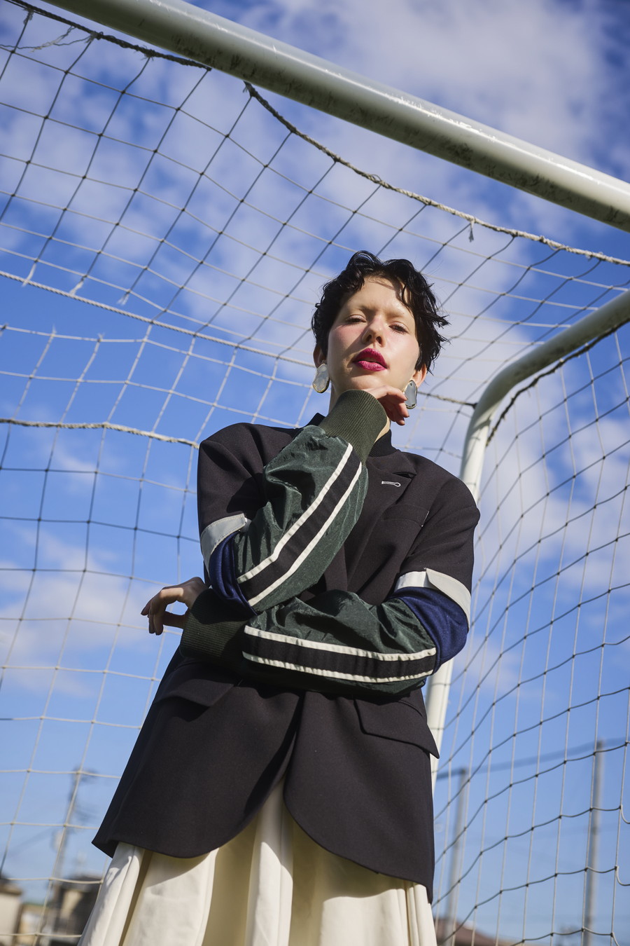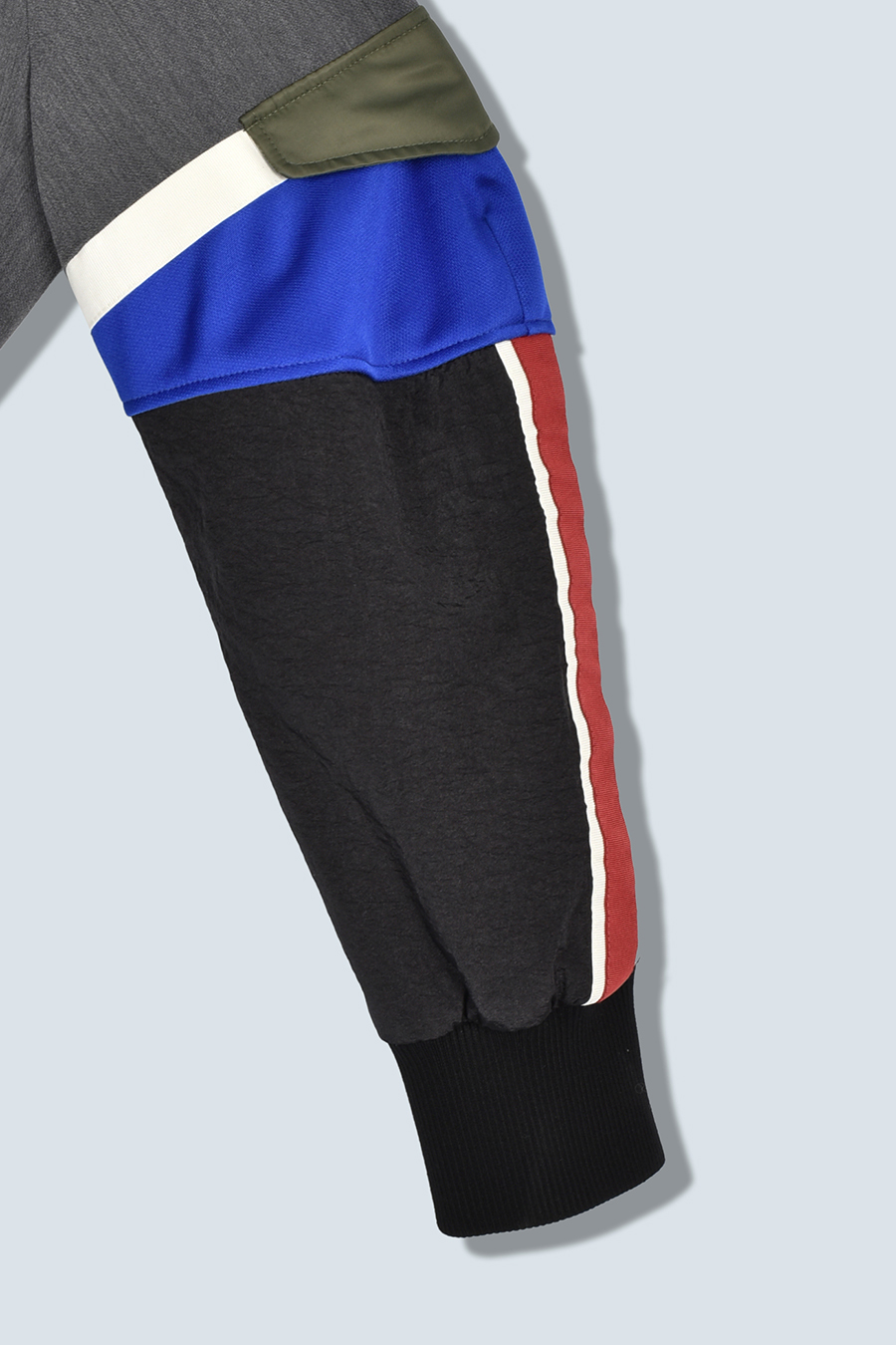 クラシックなテーラードジャケットに、スポーティなトラックジャケットをドッキングさせたハイブリッドデザインのジャケット。袖のドッキング部分には中綿を入れ、立体的なフォルムと軽やかな着用感を両立しています。