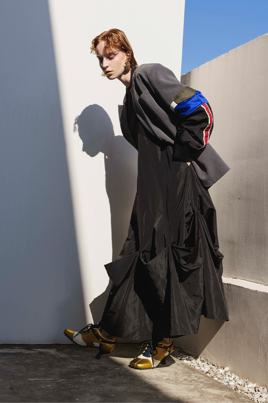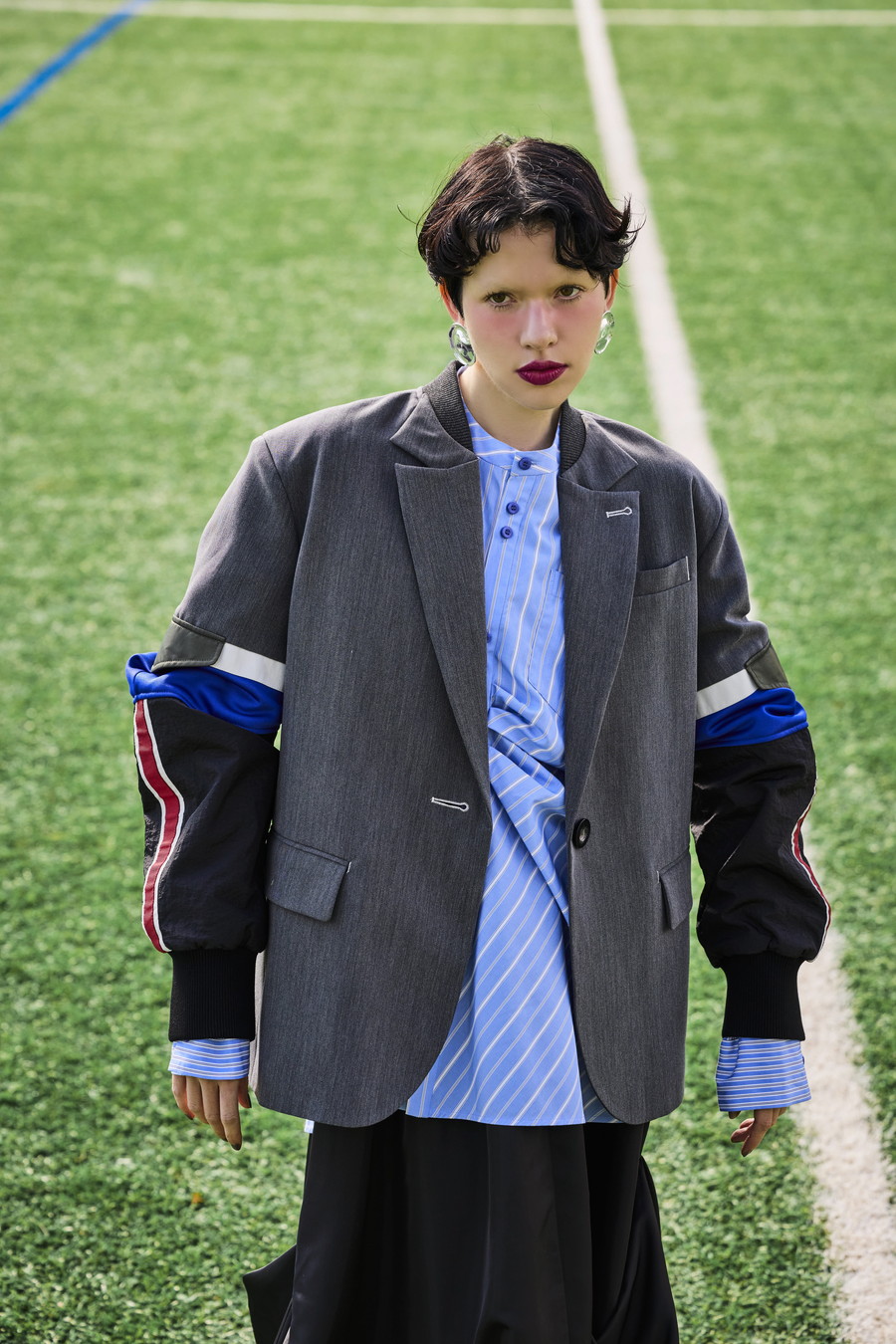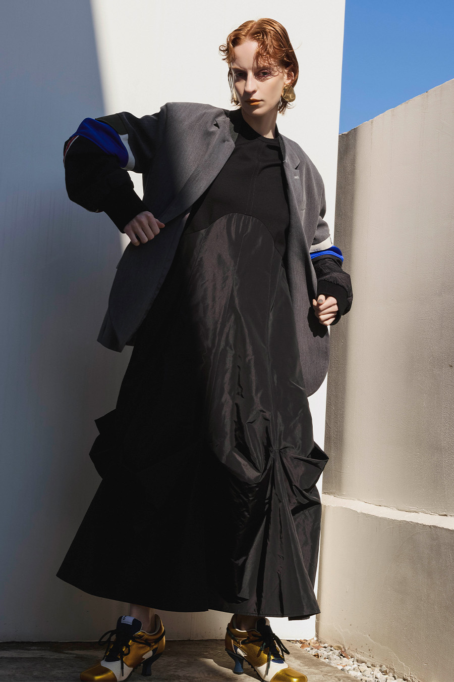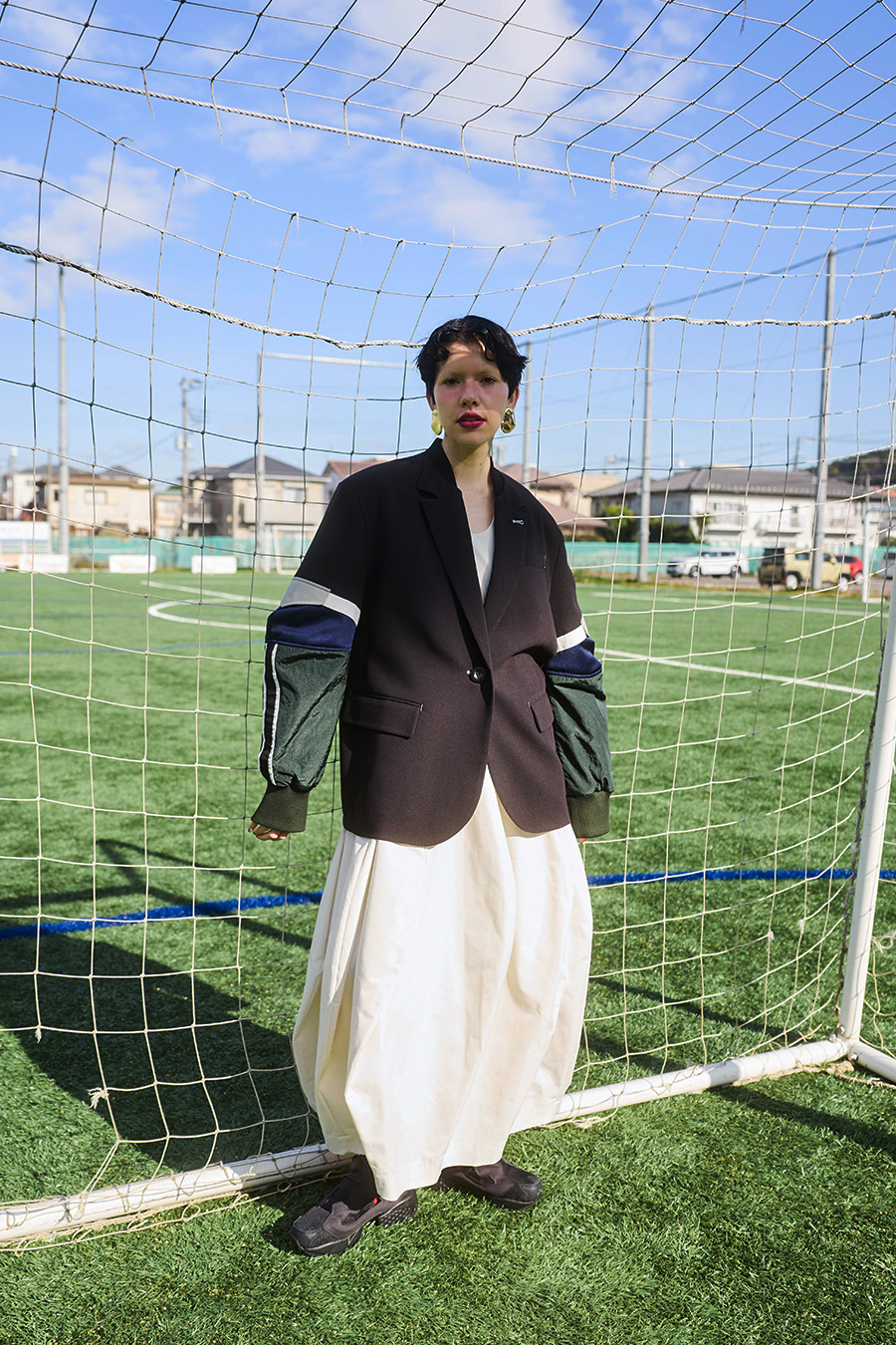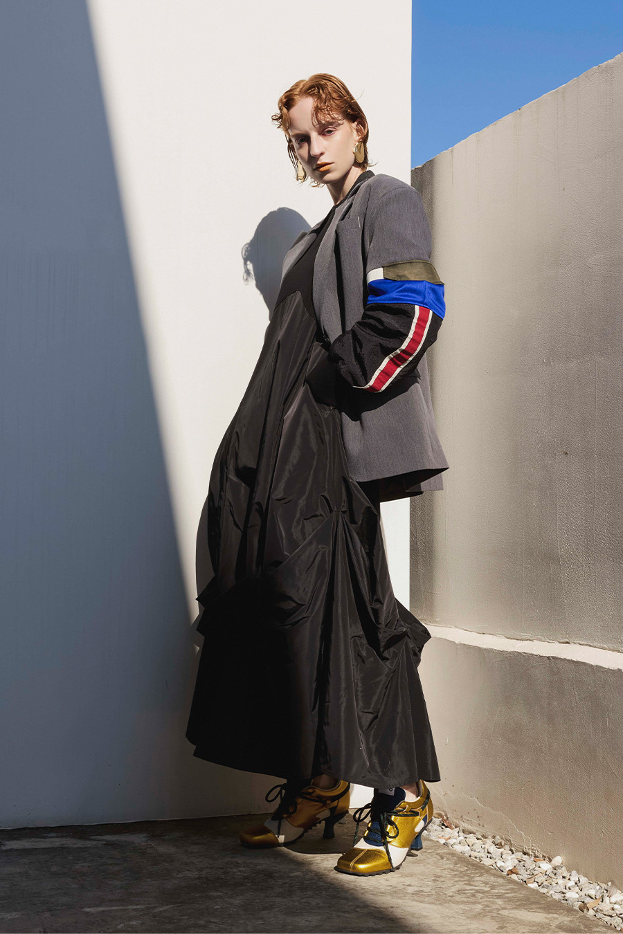 クラシックなテーラードジャケットに、スポーティなトラックジャケットをドッキングさせたハイブリッドデザインのジャケット。袖のドッキング部分には中綿を入れ、立体的なフォルムと軽やかな着用感を両立しています。