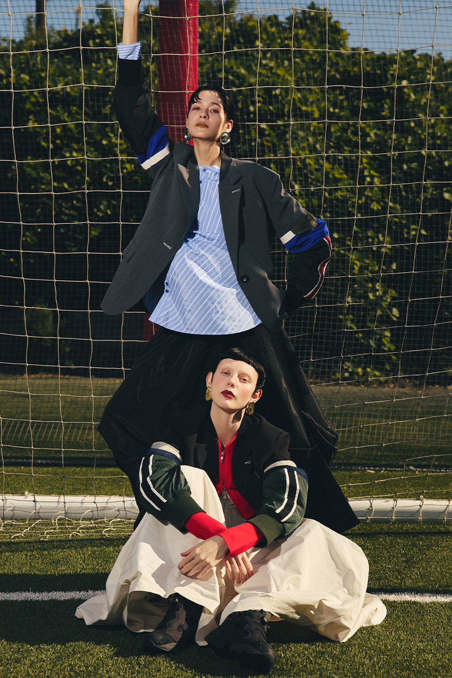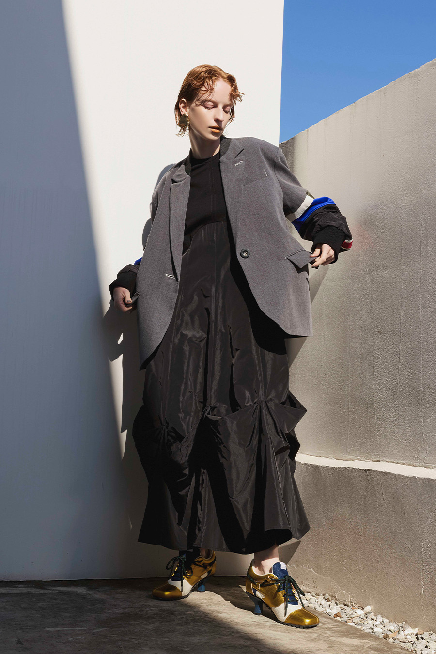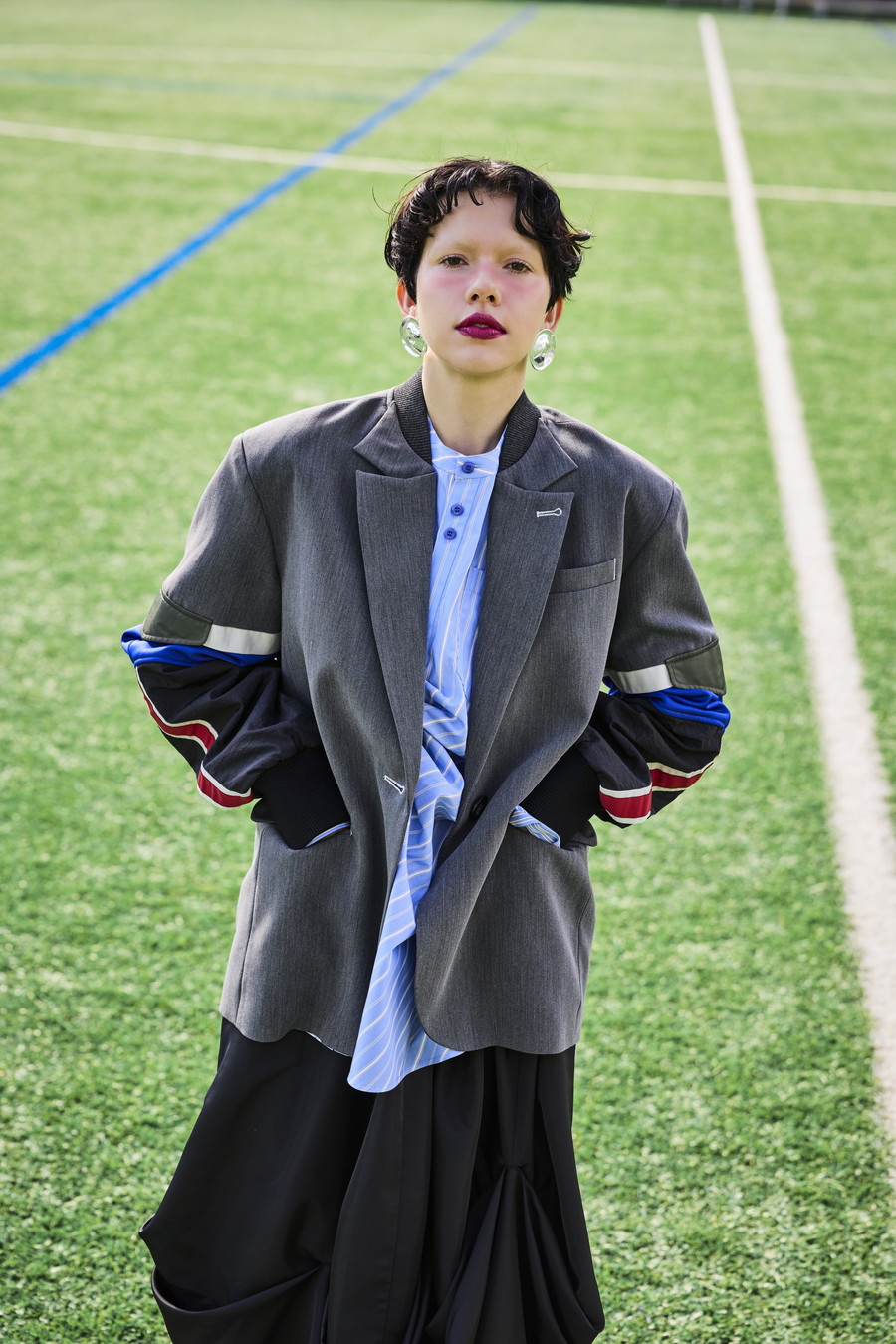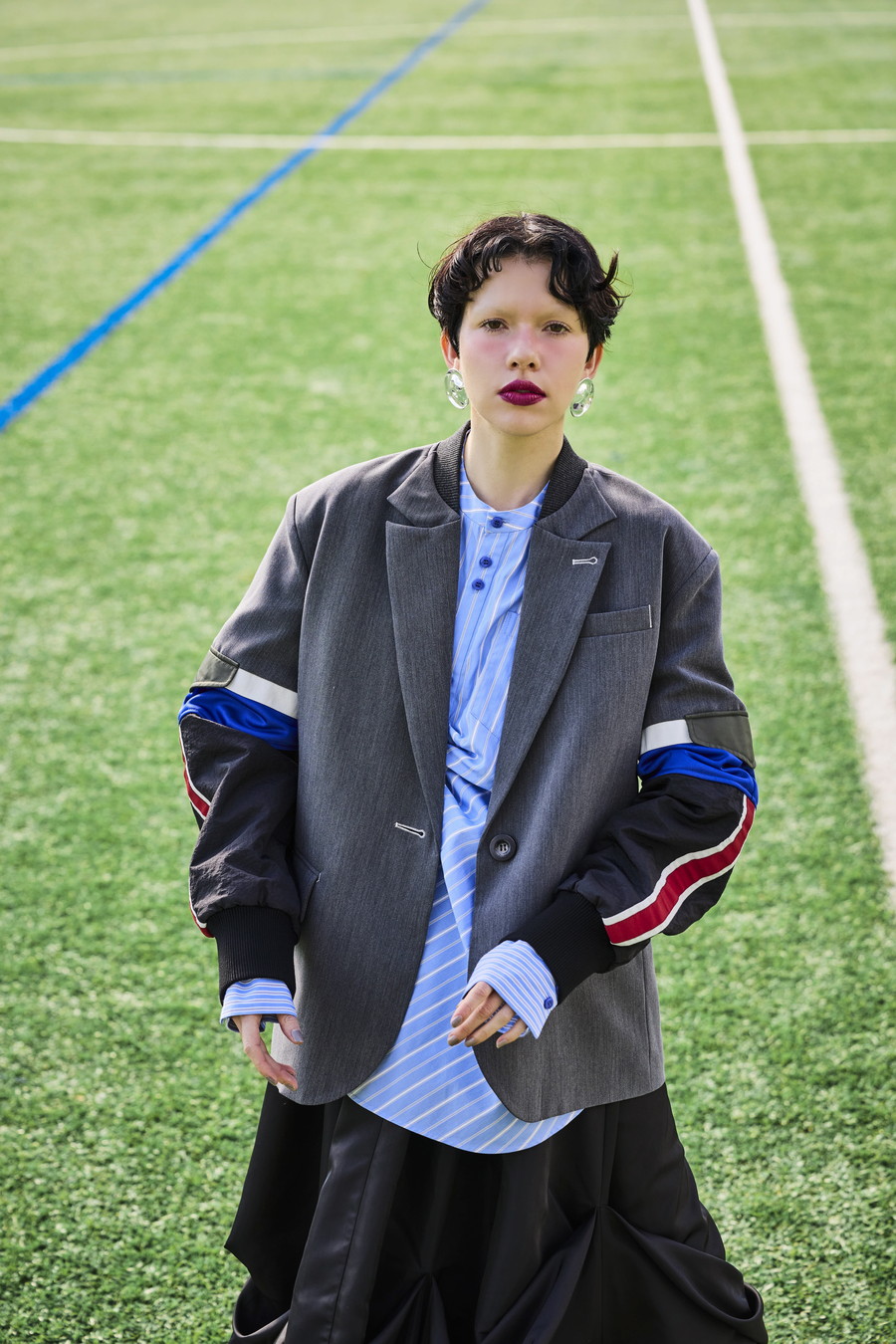 クラシックなテーラードジャケットに、スポーティなトラックジャケットをドッキングさせたハイブリッドデザインのジャケット。袖のドッキング部分には中綿を入れ、立体的なフォルムと軽やかな着用感を両立しています。