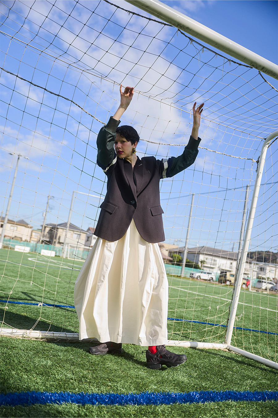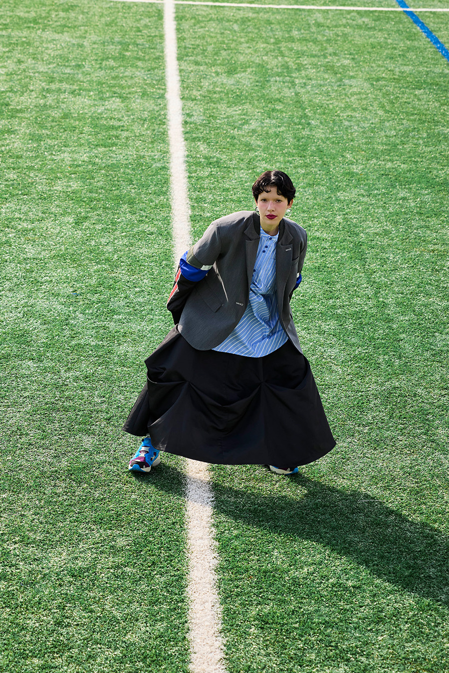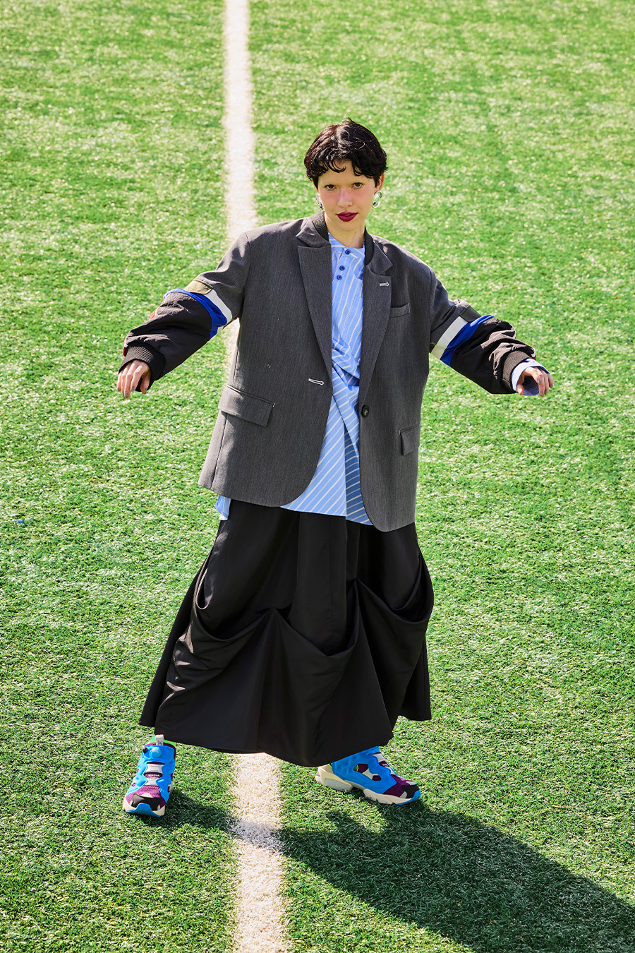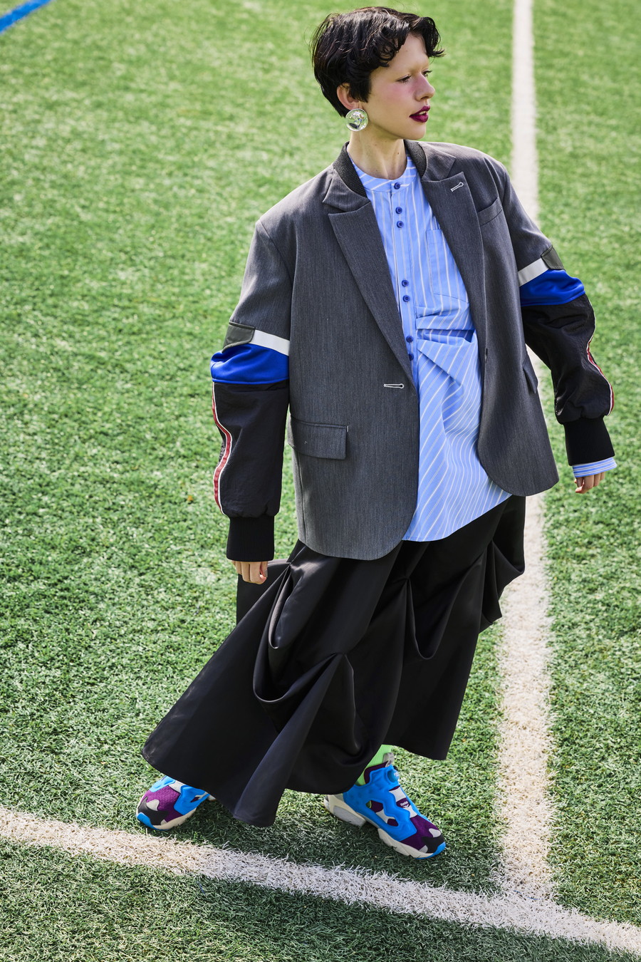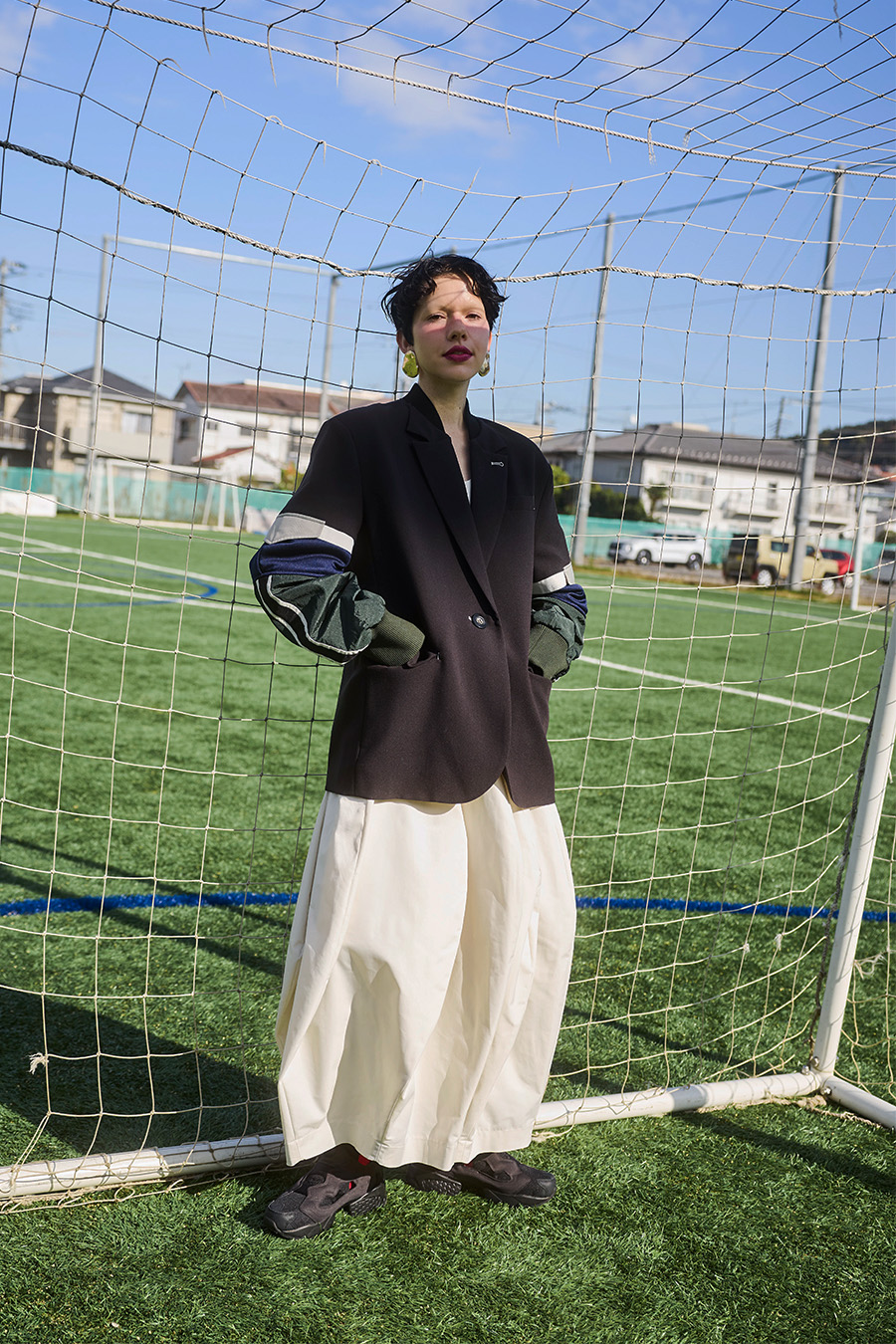クラシックなテーラードジャケットに、スポーティなトラックジャケットをドッキングさせたハイブリッドデザインのジャケット。袖のドッキング部分には中綿を入れ、立体的なフォルムと軽やかな着用感を両立しています。