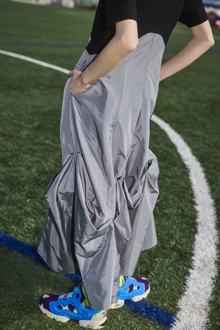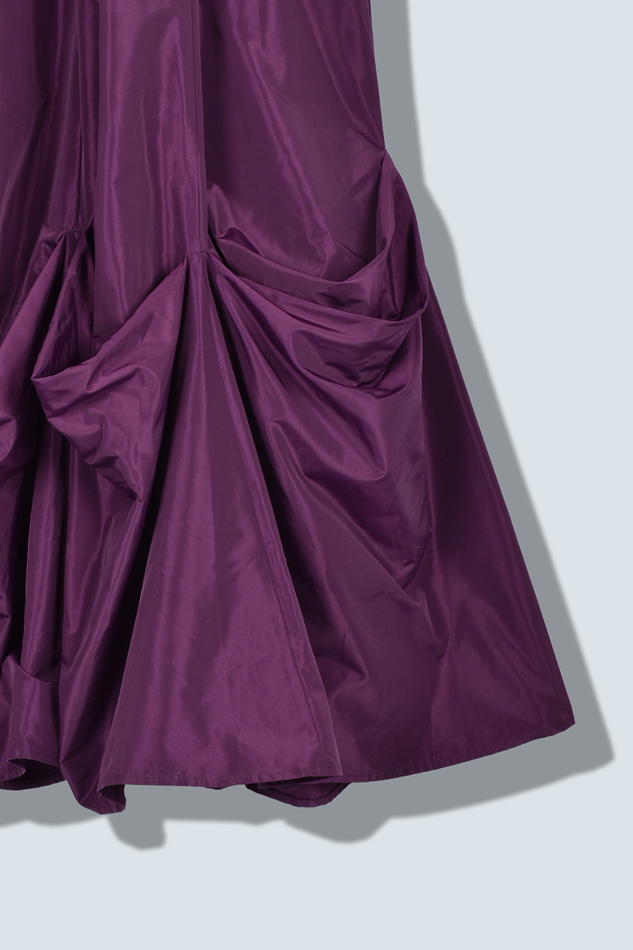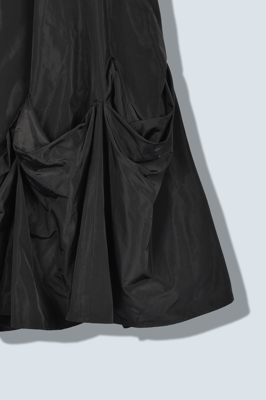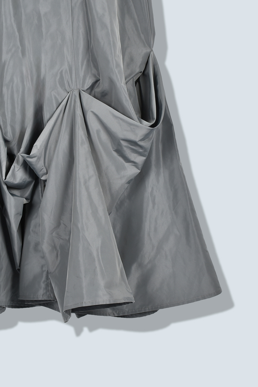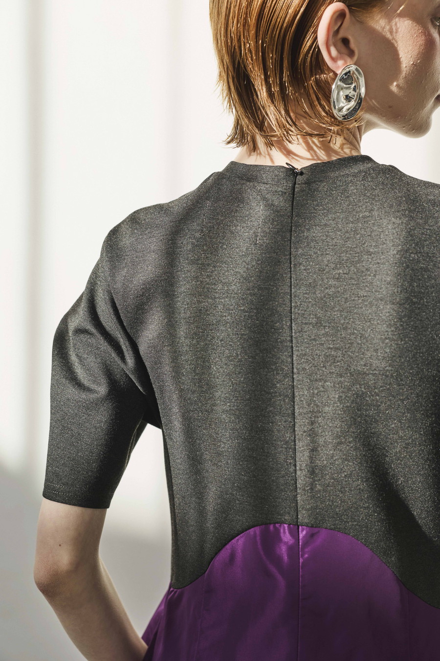 大胆なタックディテールが目を惹くカットソーと布帛のドッキングワンピース。バスト下からは軽くて張りのあるポリエステル素材を使用しており、ボリューム分量はしっかりとありますが着心地が軽く様々な体型の方にも取り入れやすいシルエットに仕上げております。