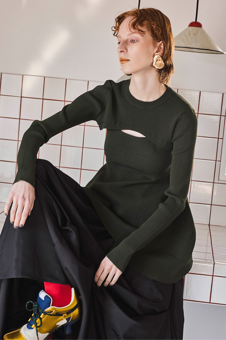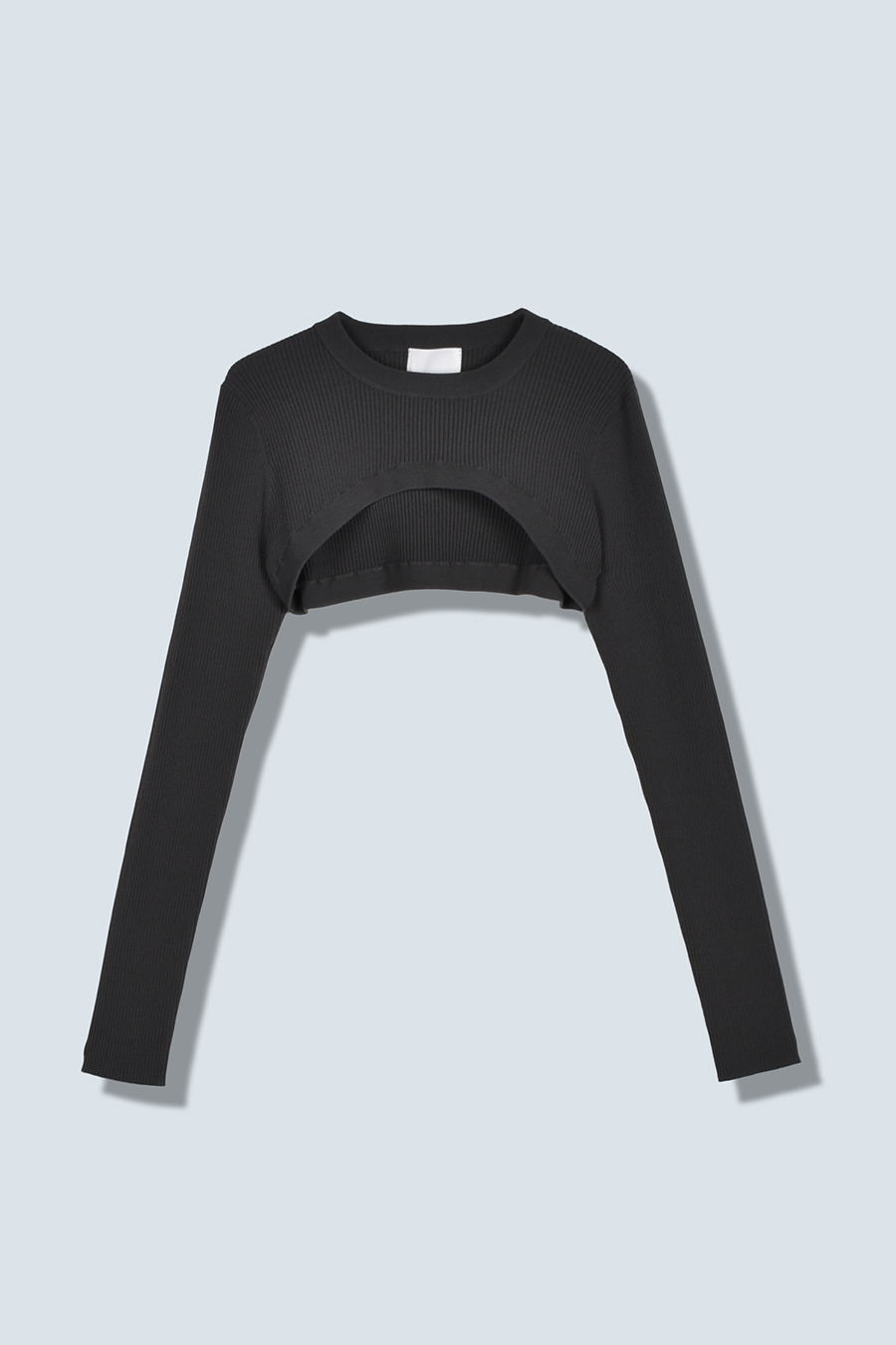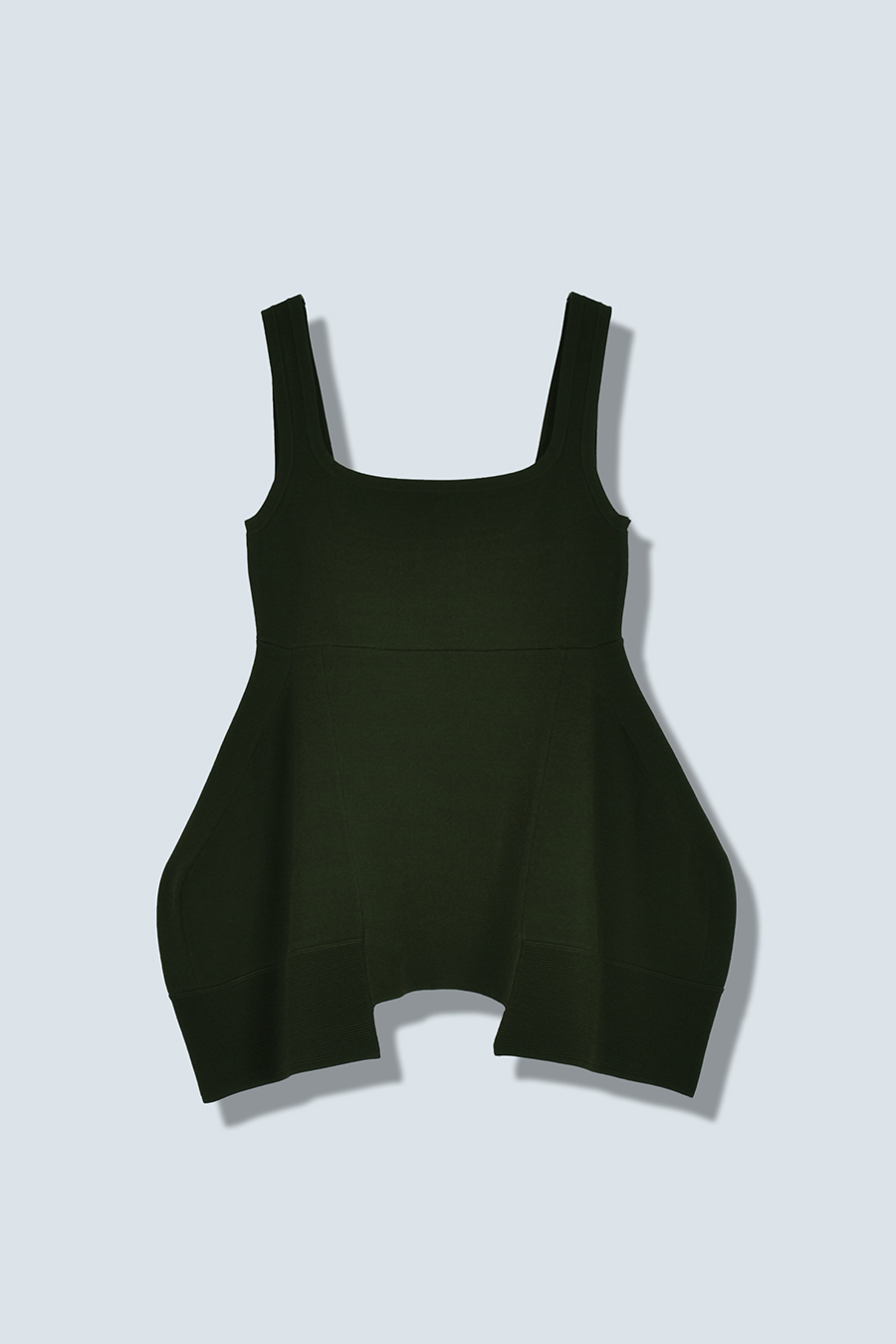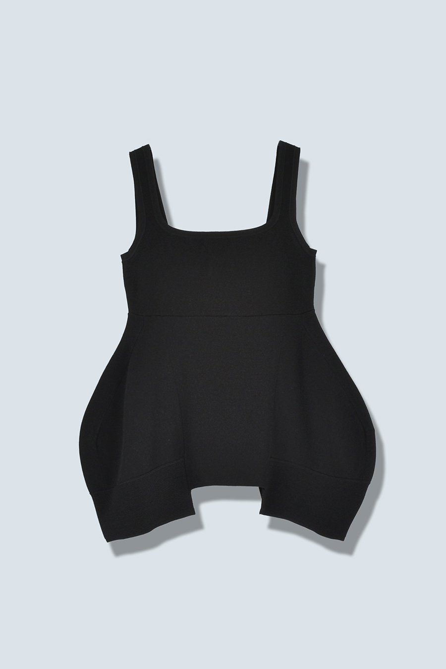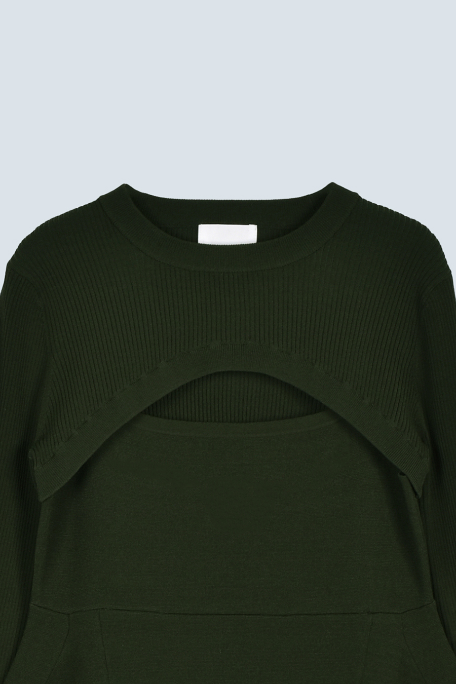 スクエアネックがデコルテを美しく魅せてくれる構築的なシルエットのニットタンクと、マイクロ丈のニットトップスのアンサンブルSET。バストからウエスト部分まではタイトなシルエットで女性らしい雰囲気に。