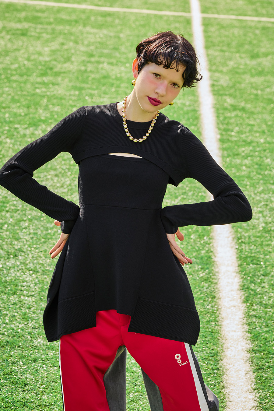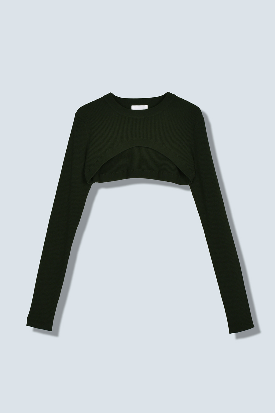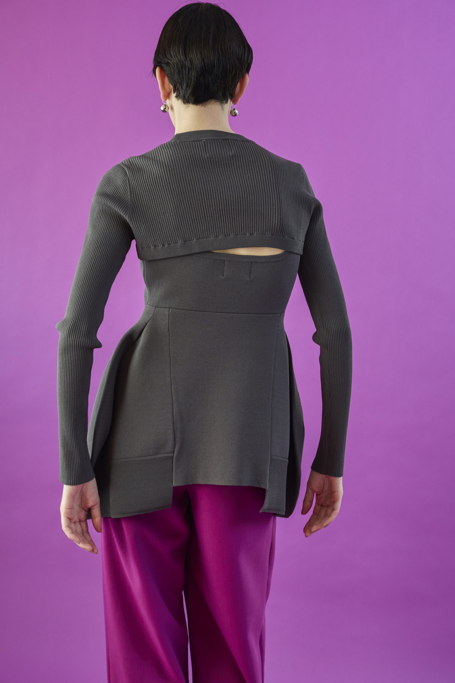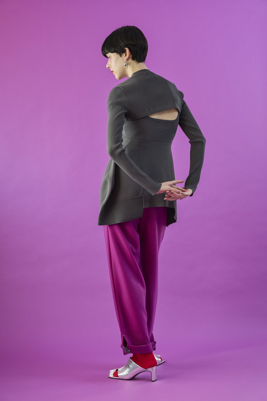 スクエアネックがデコルテを美しく魅せてくれる構築的なシルエットのニットタンクと、マイクロ丈のニットトップスのアンサンブルSET。バストからウエスト部分まではタイトなシルエットで女性らしい雰囲気に。