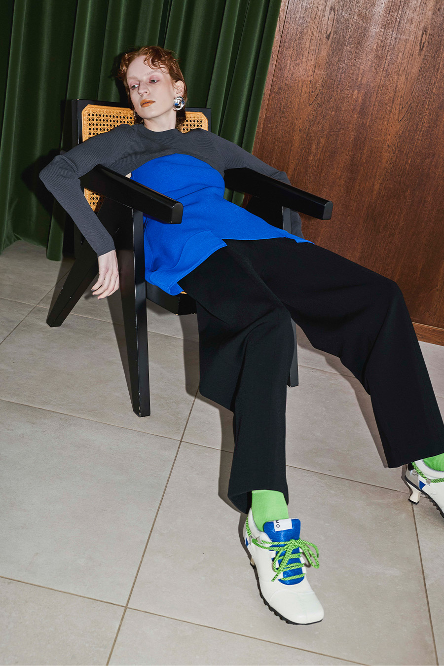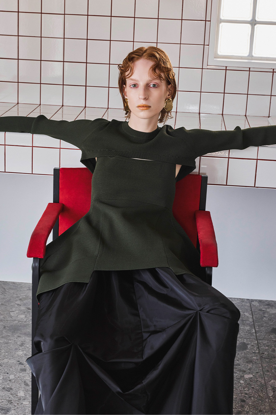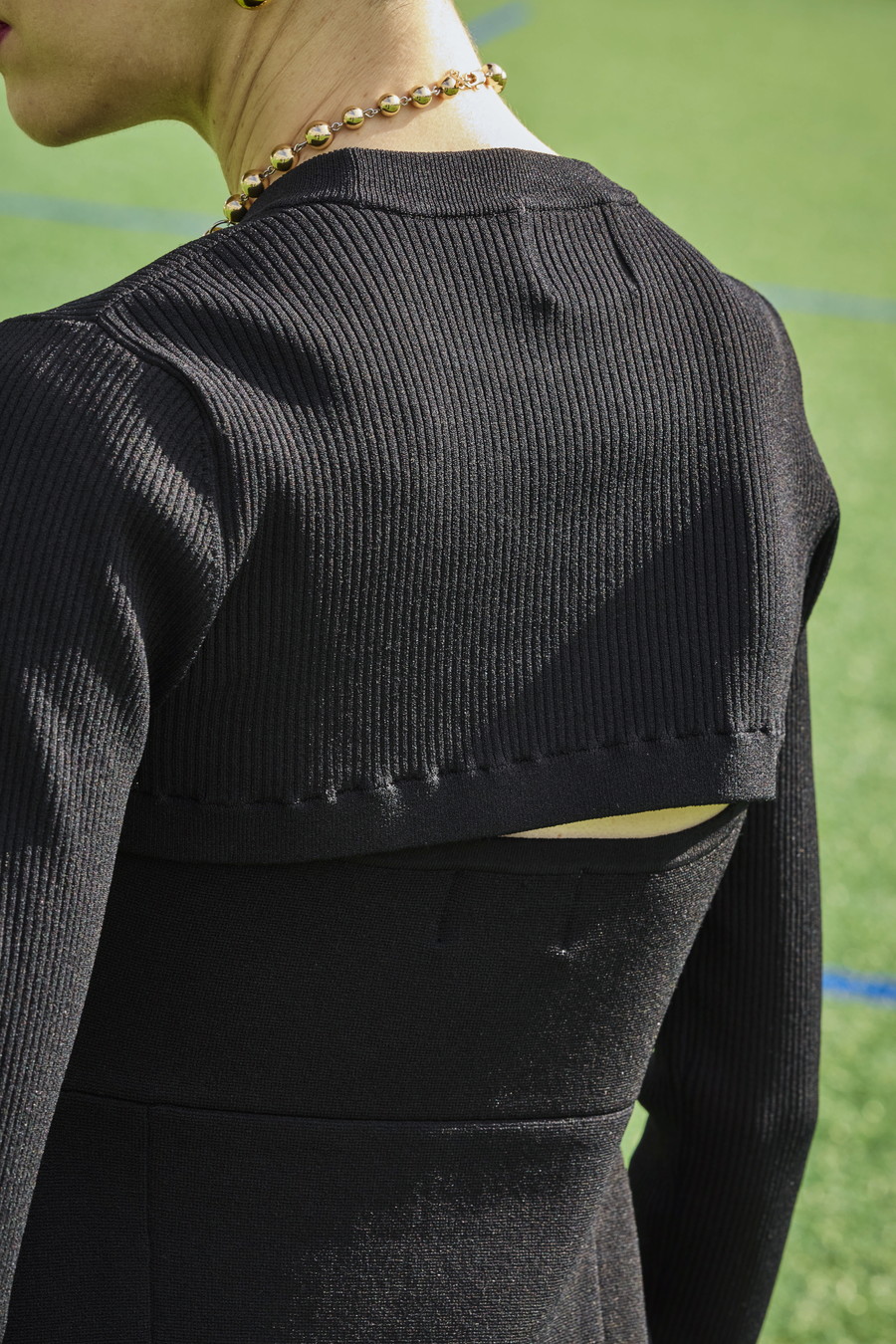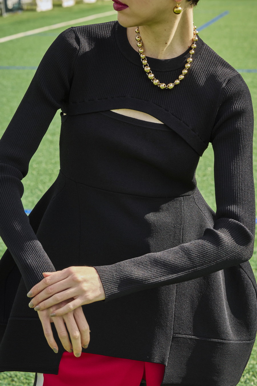 スクエアネックがデコルテを美しく魅せてくれる構築的なシルエットのニットタンクと、マイクロ丈のニットトップスのアンサンブルSET。バストからウエスト部分まではタイトなシルエットで女性らしい雰囲気に。