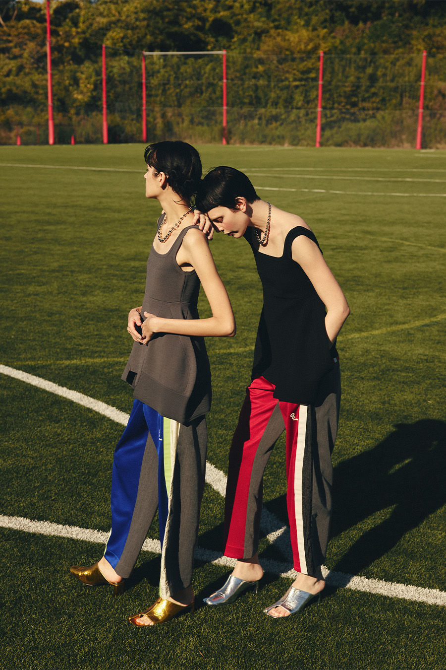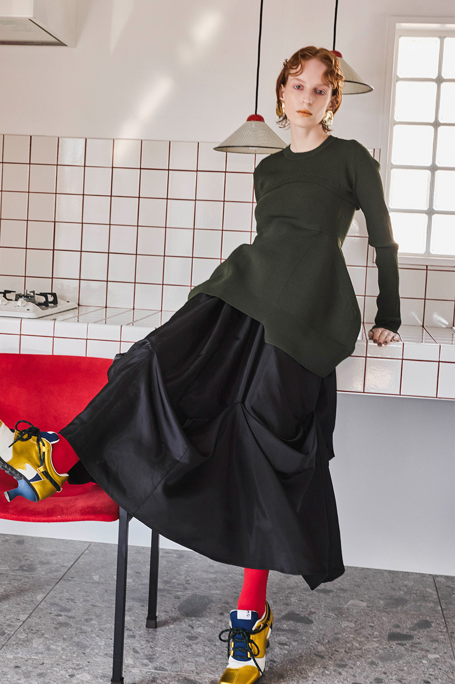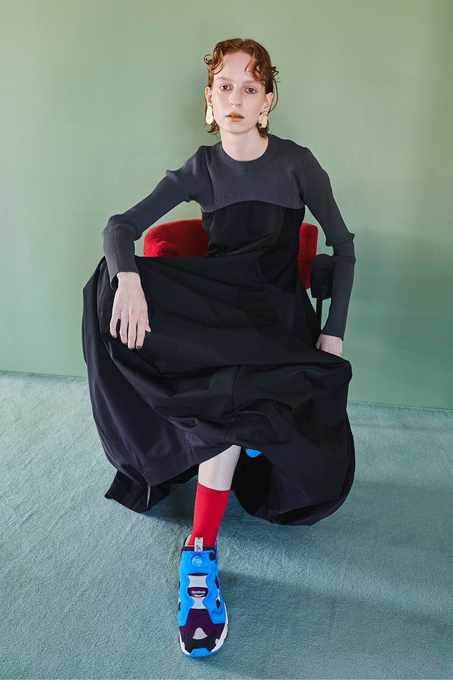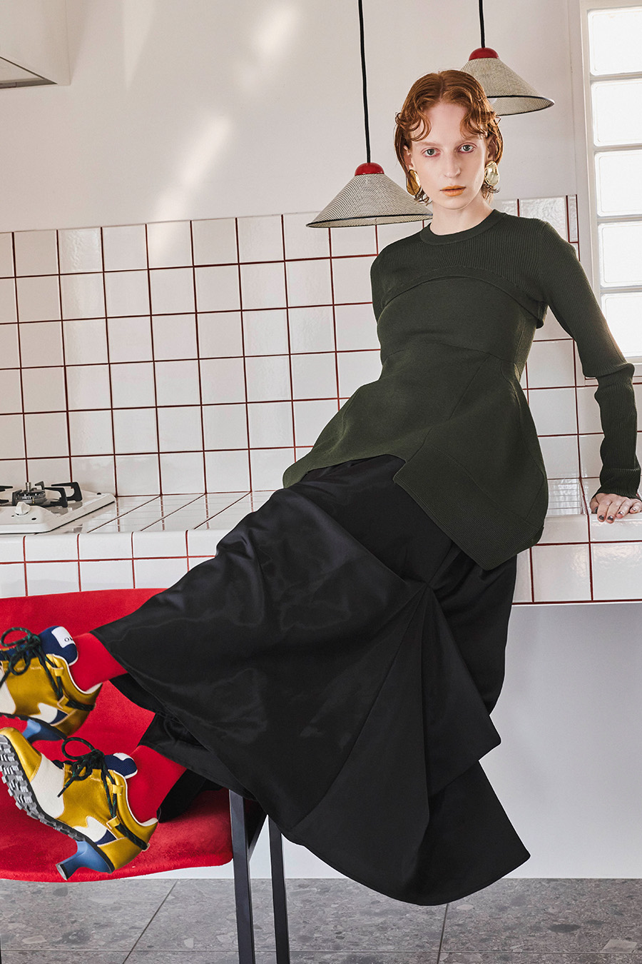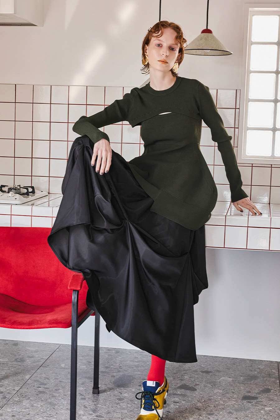 スクエアネックがデコルテを美しく魅せてくれる構築的なシルエットのニットタンクと、マイクロ丈のニットトップスのアンサンブルSET。バストからウエスト部分まではタイトなシルエットで女性らしい雰囲気に。