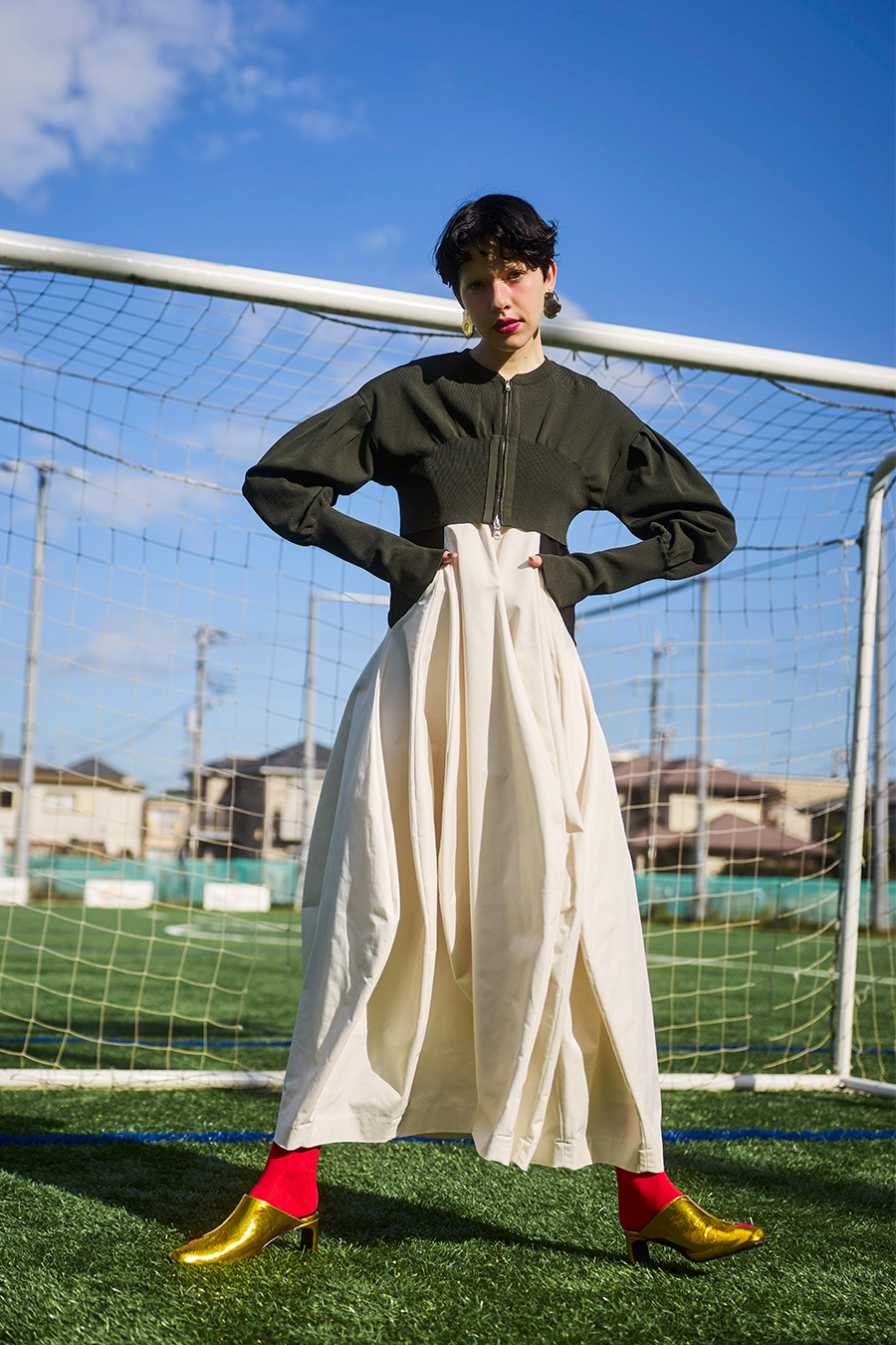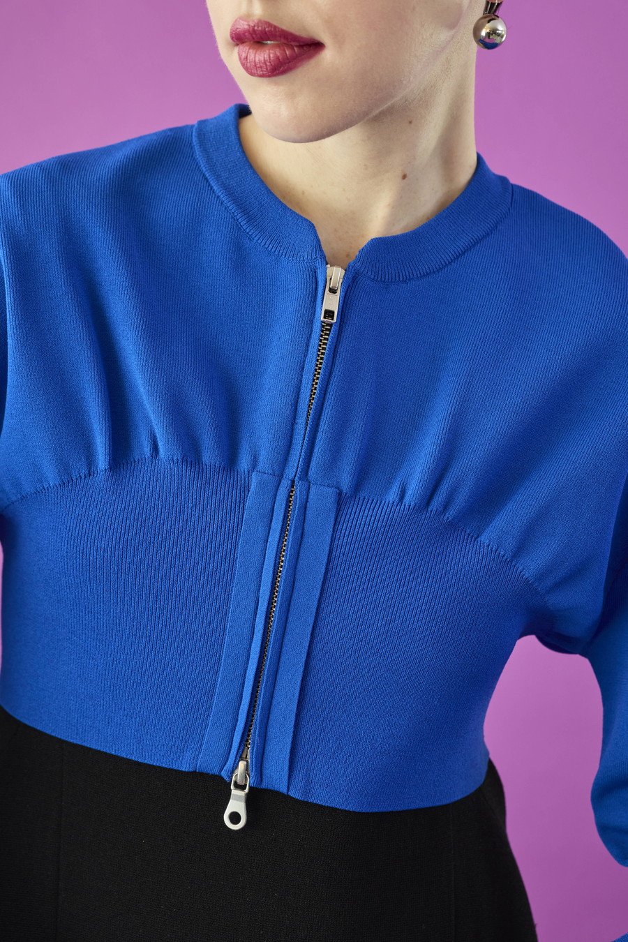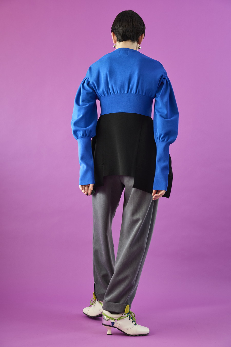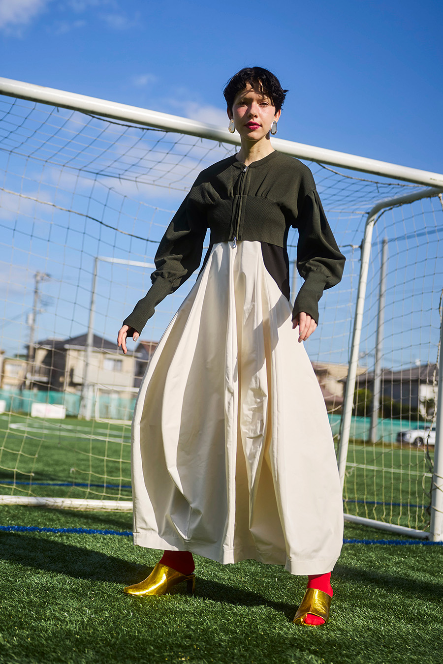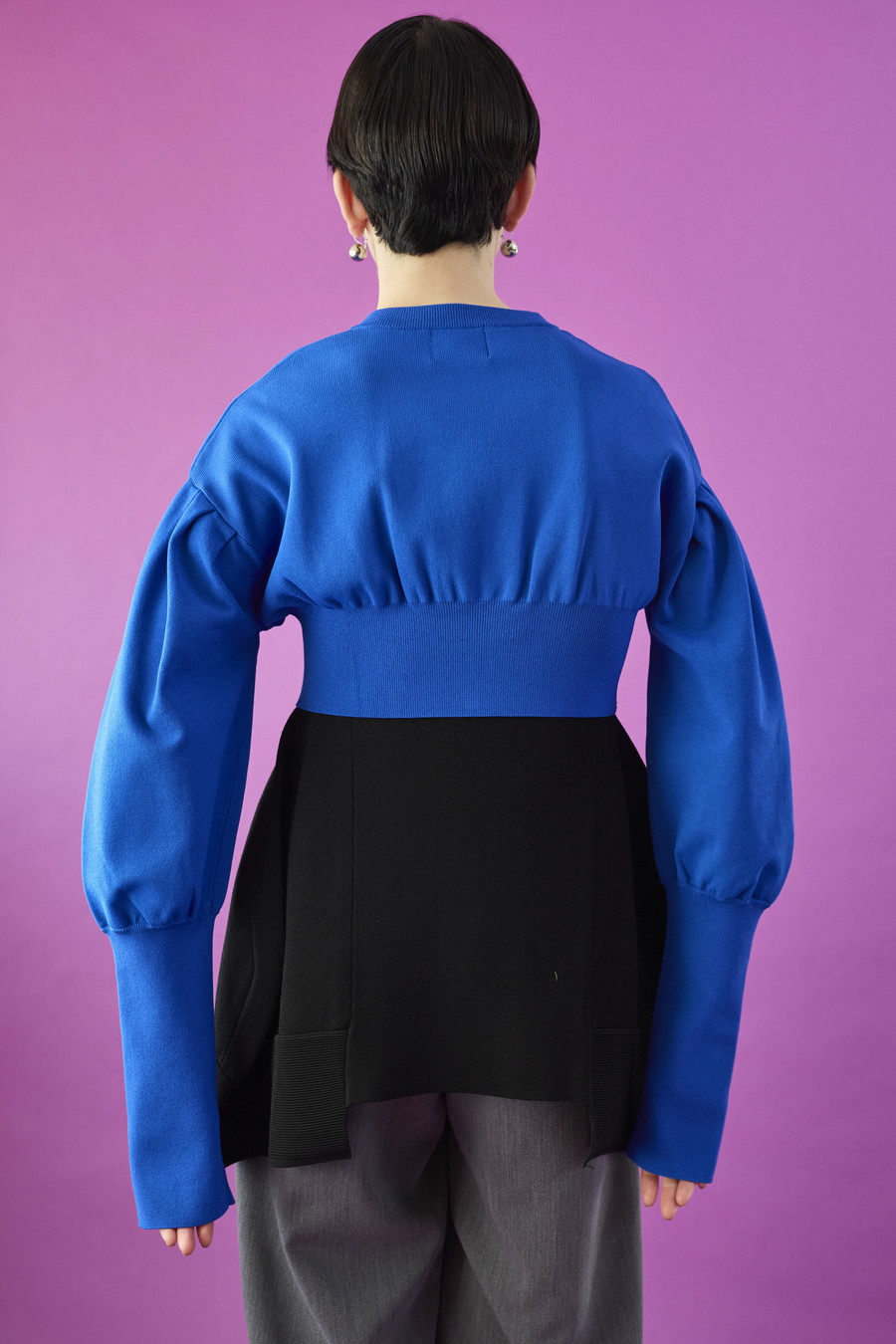 ボリュームスリーブが印象的なショート丈のジップアップニットカーディガン。ワンピースやトップスとのレイヤードで季節の変わり目にも取り入れやすい一枚です。