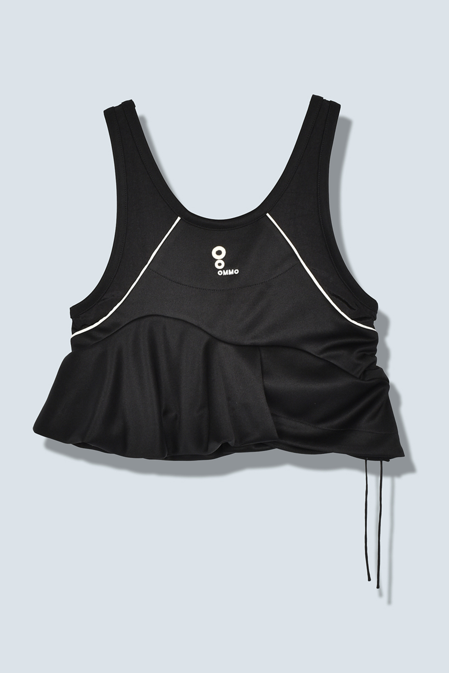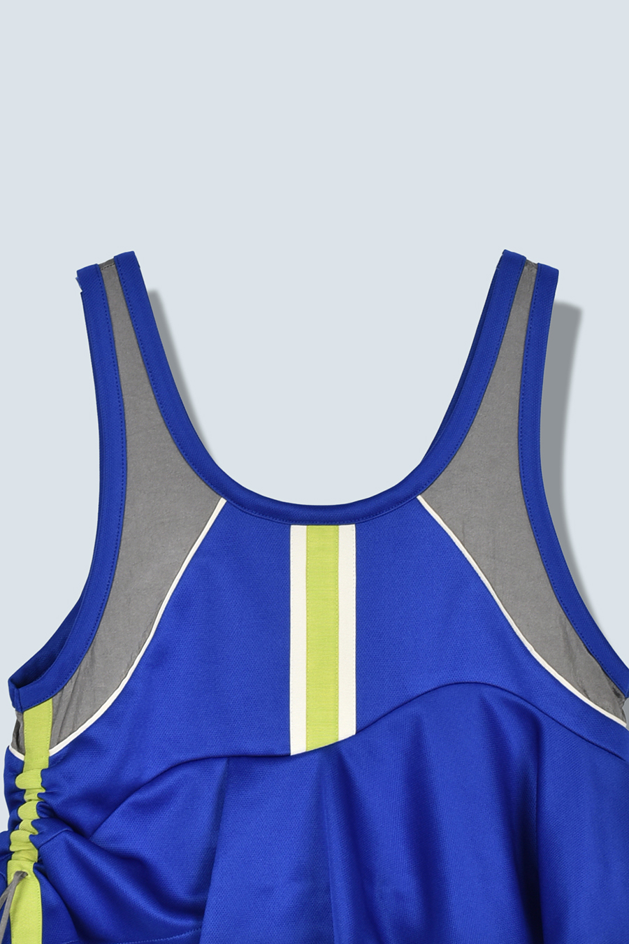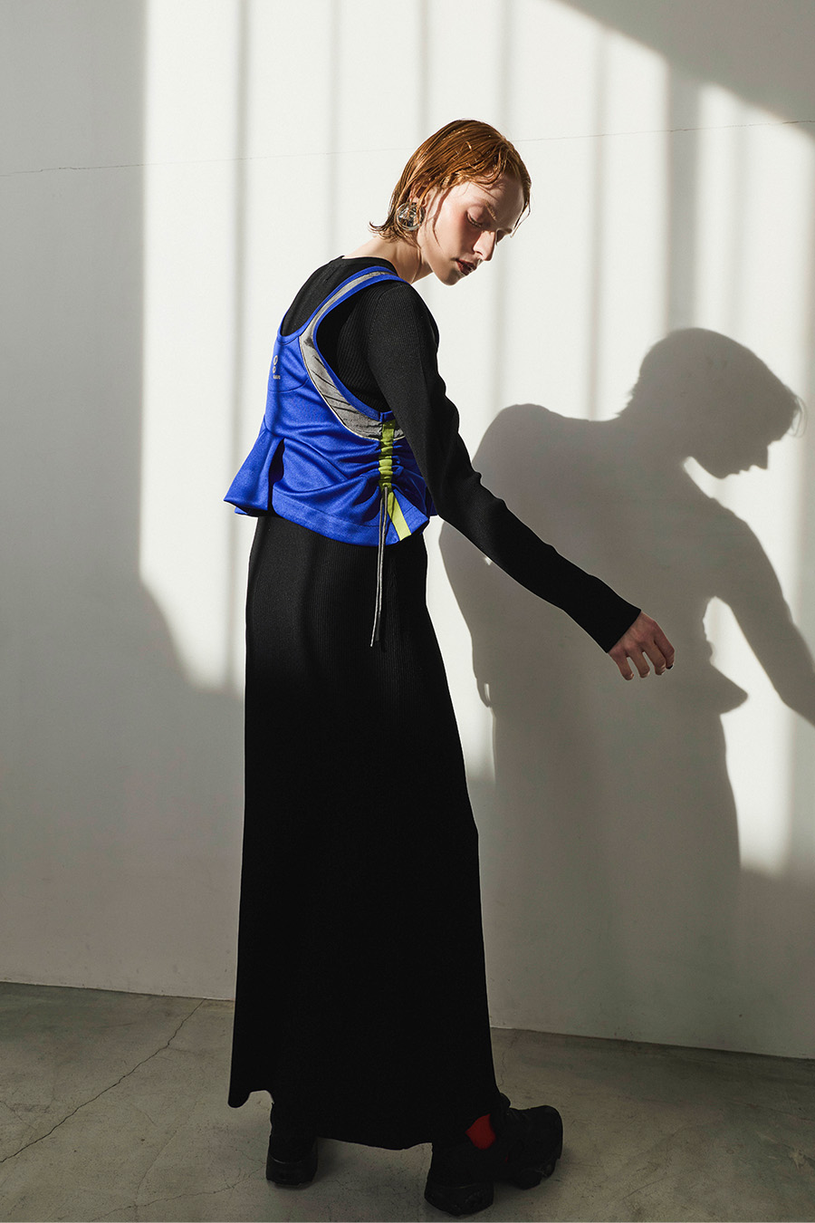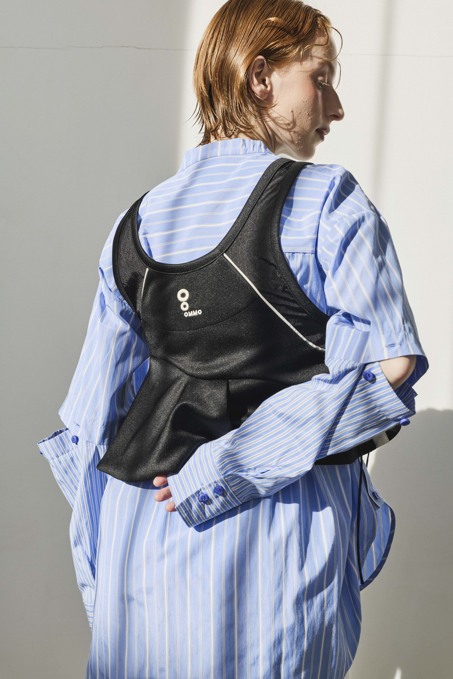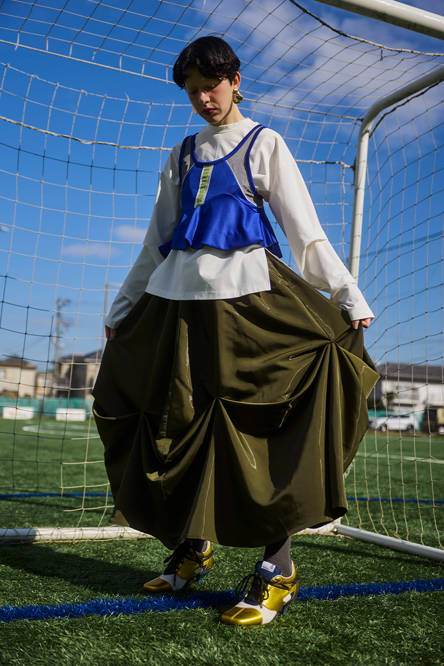 スポーティなトラックデザインを女性らしいギャザーフレアーデザインに落とし込んだタンク型ビスチェトップス。程良い伸縮性を兼ね備えたスポーツジャージ素材を使用しています。背中とアームホールを大きめに開けている為、オーバーサイズシャツやカットソー、ワンピースなど幅広いアイテムとのレイヤードを楽しんでいただける今シーズンイチオシのシリーズです。
