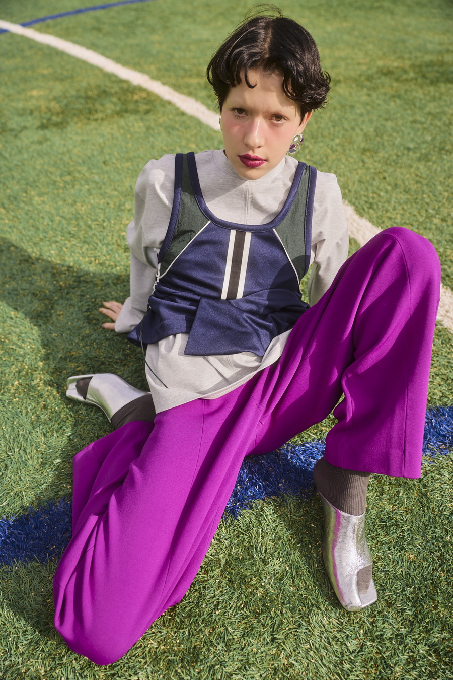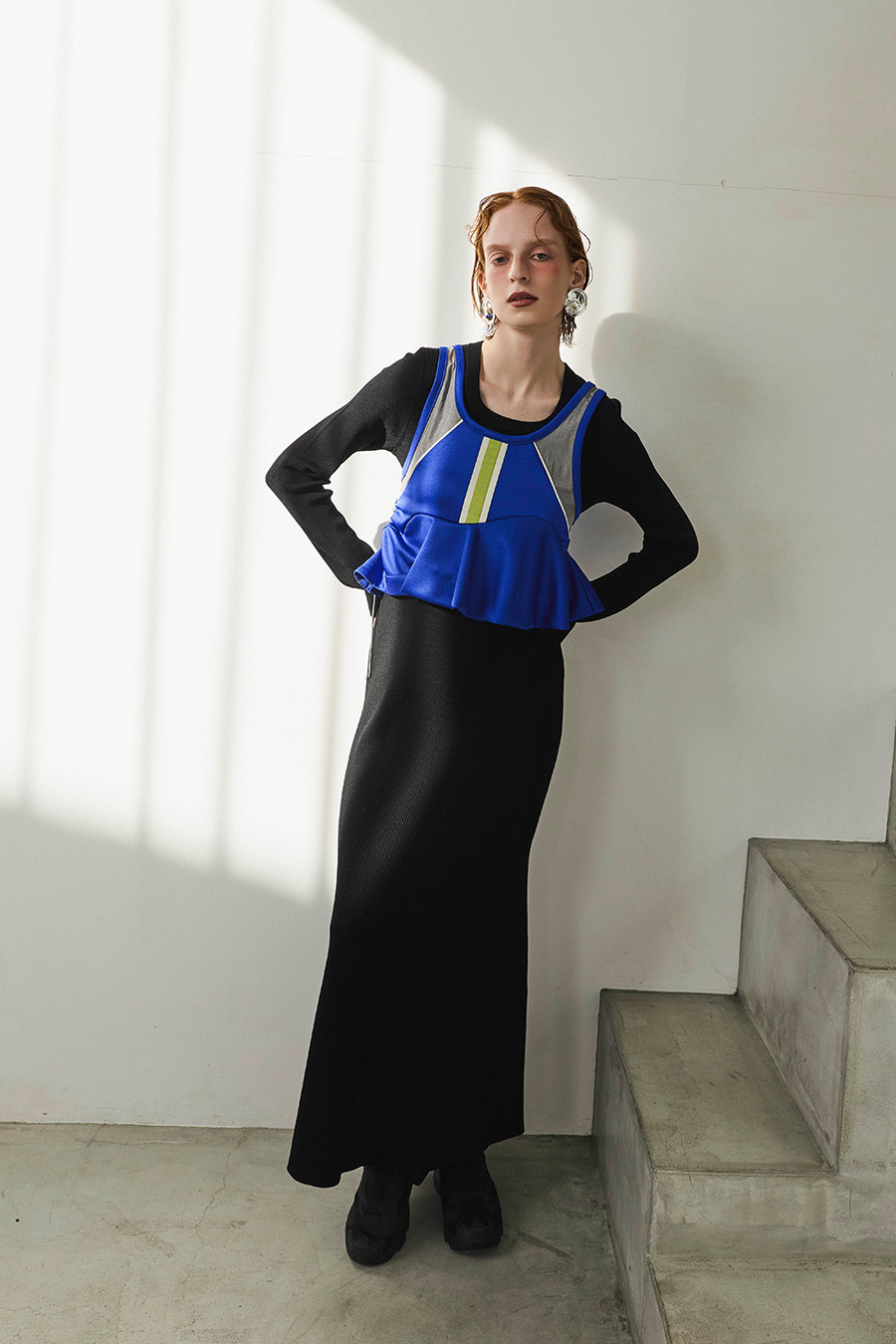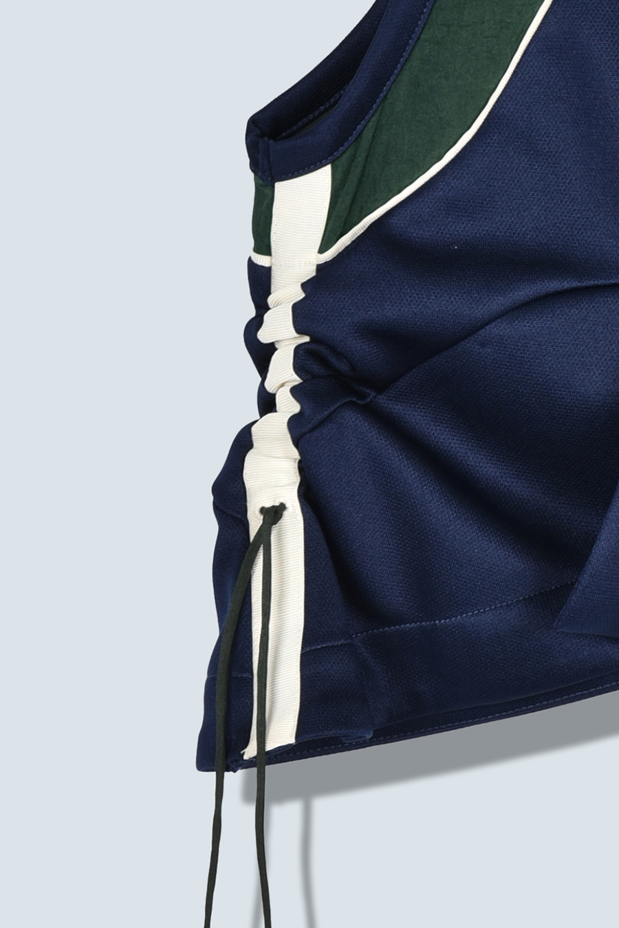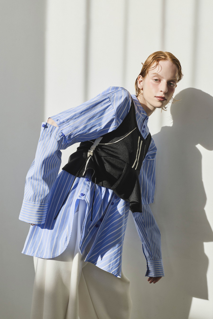 スポーティなトラックデザインを女性らしいギャザーフレアーデザインに落とし込んだタンク型ビスチェトップス。程良い伸縮性を兼ね備えたスポーツジャージ素材を使用しています。背中とアームホールを大きめに開けている為、オーバーサイズシャツやカットソー、ワンピースなど幅広いアイテムとのレイヤードを楽しんでいただける今シーズンイチオシのシリーズです。