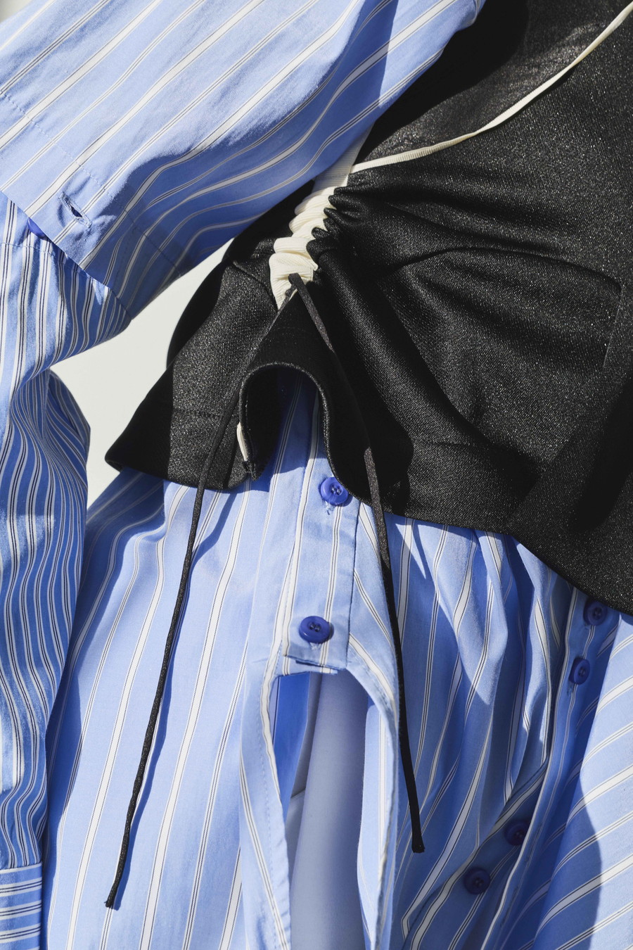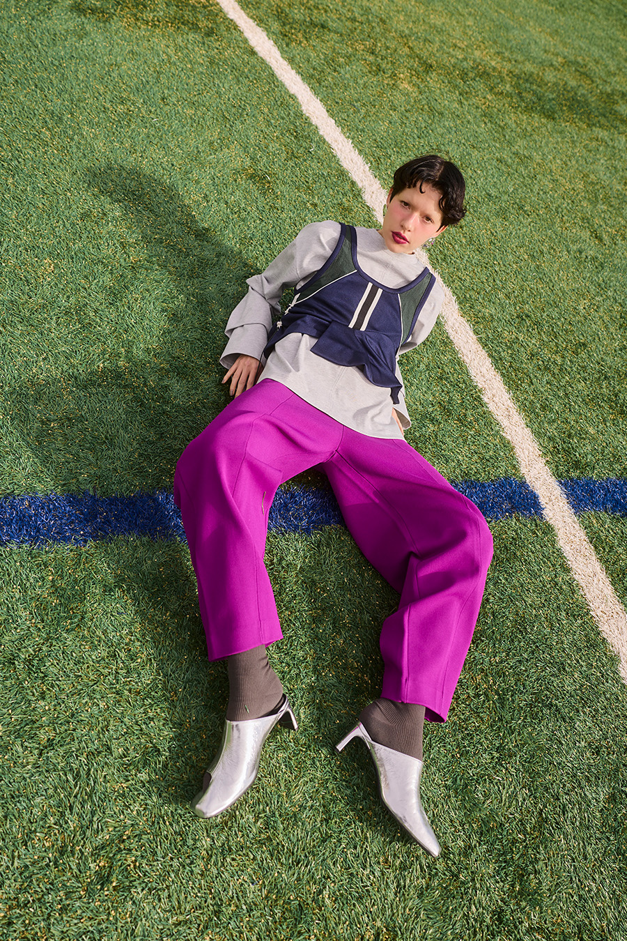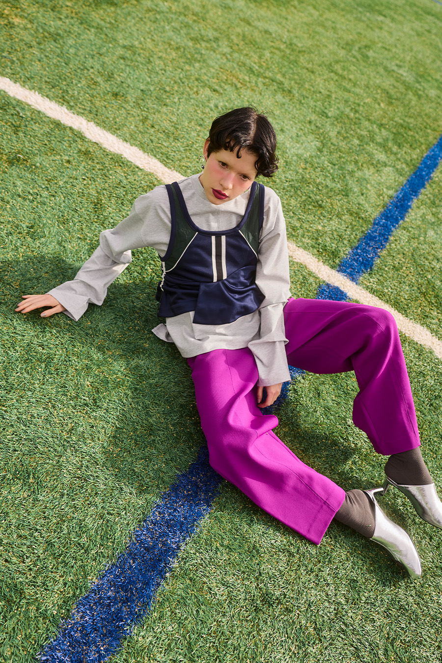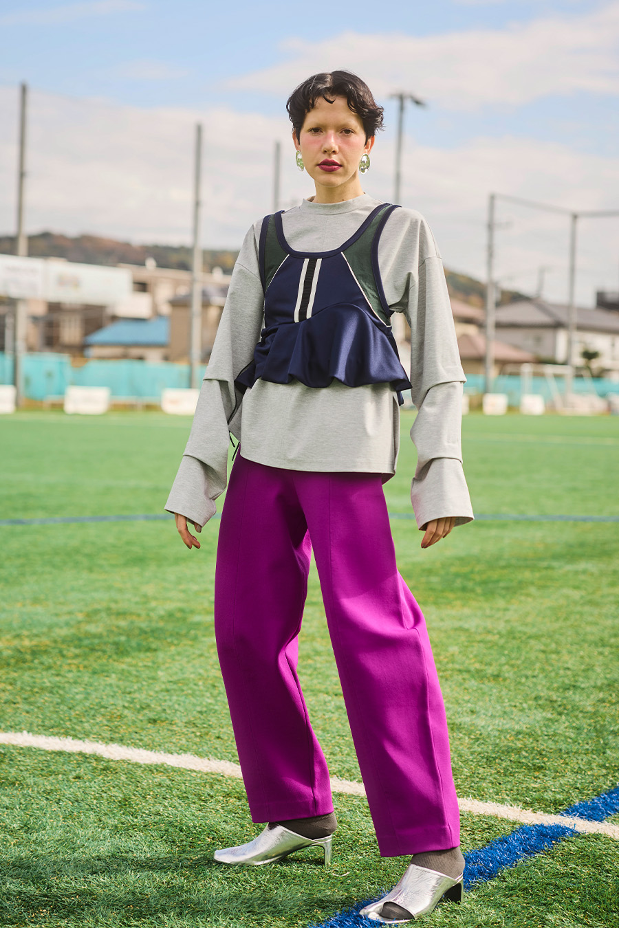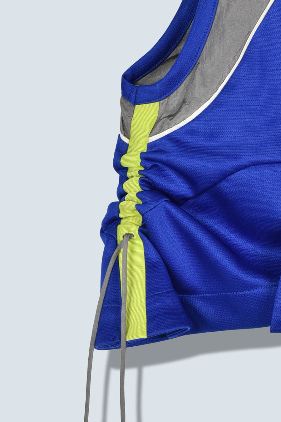 スポーティなトラックデザインを女性らしいギャザーフレアーデザインに落とし込んだタンク型ビスチェトップス。程良い伸縮性を兼ね備えたスポーツジャージ素材を使用しています。背中とアームホールを大きめに開けている為、オーバーサイズシャツやカットソー、ワンピースなど幅広いアイテムとのレイヤードを楽しんでいただける今シーズンイチオシのシリーズです。