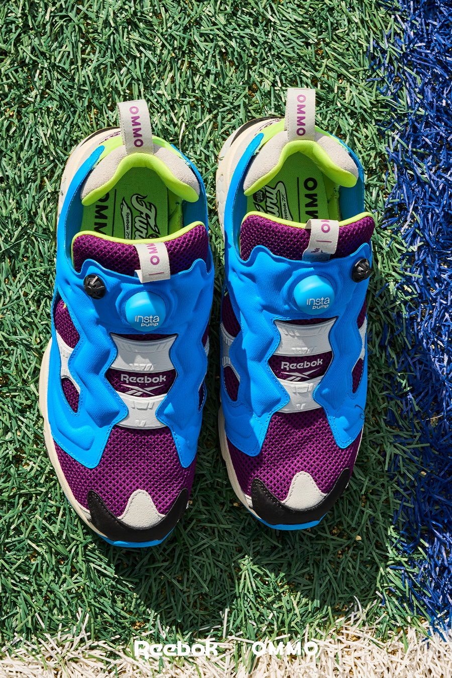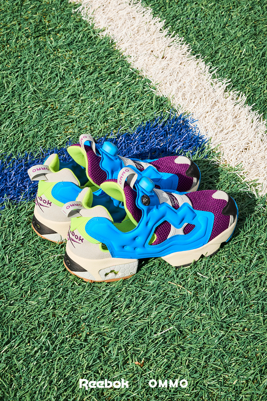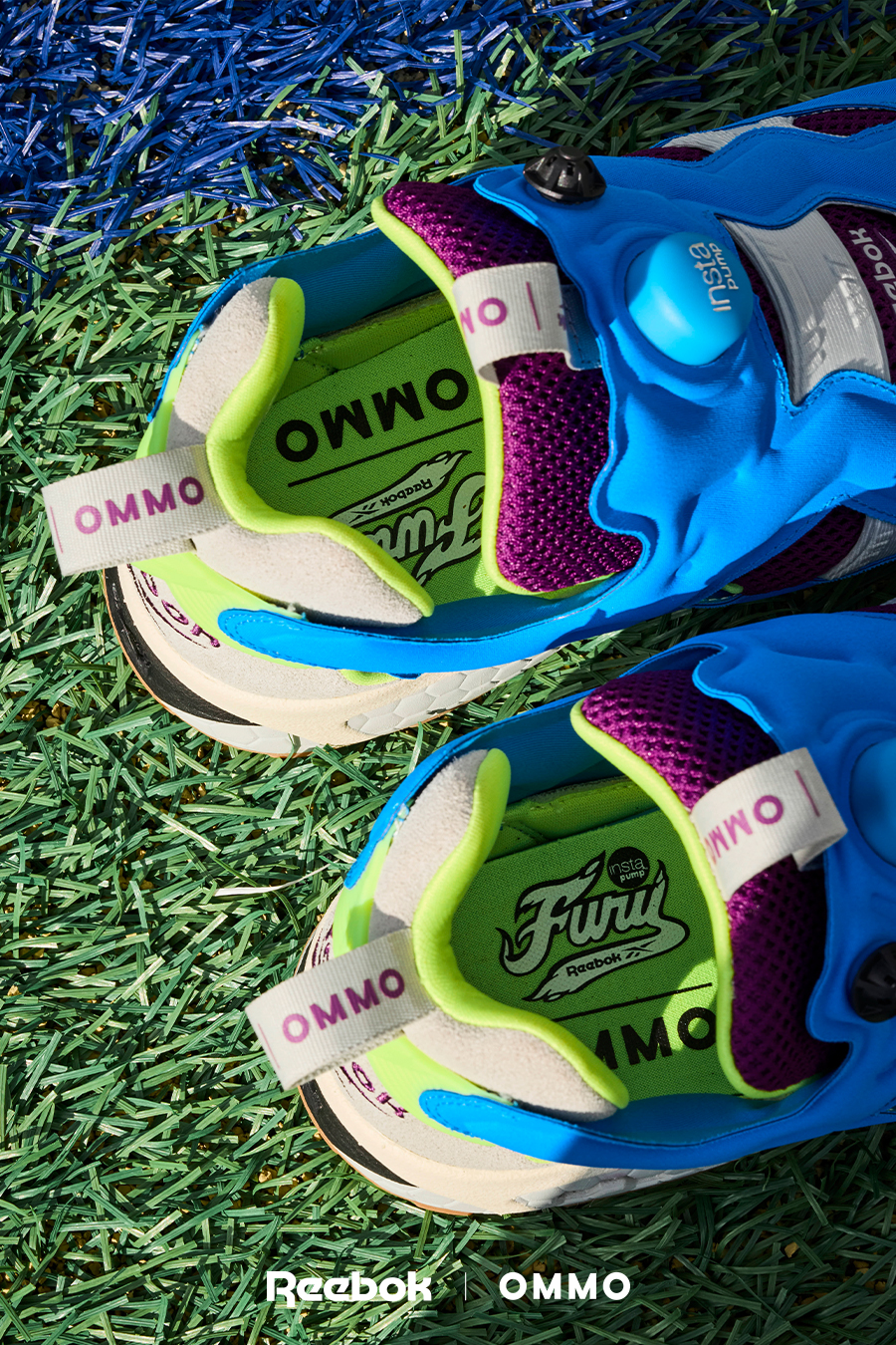 アイコニック且つ革新的なスポーツカルチャーブランドのリーボックとOMMOのコラボレーションシューズ。Reebokを象徴するアイコニックモデル「INSTAPUMP FURY 94」。