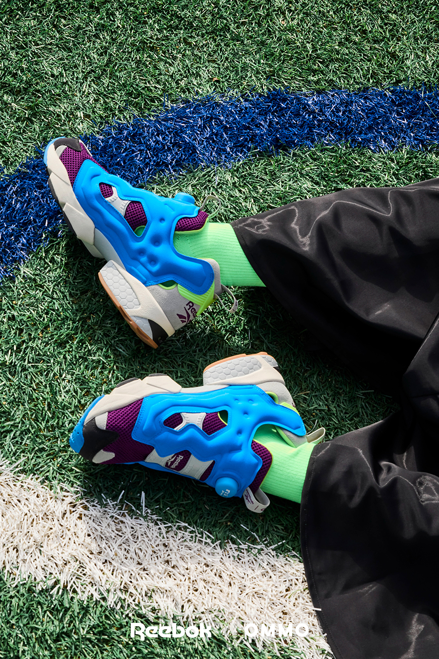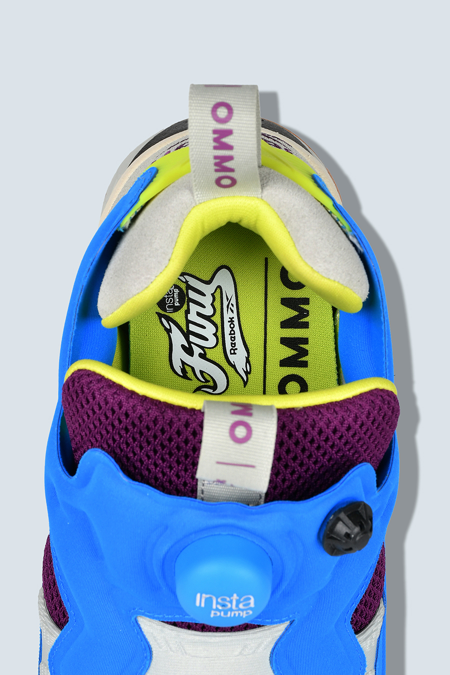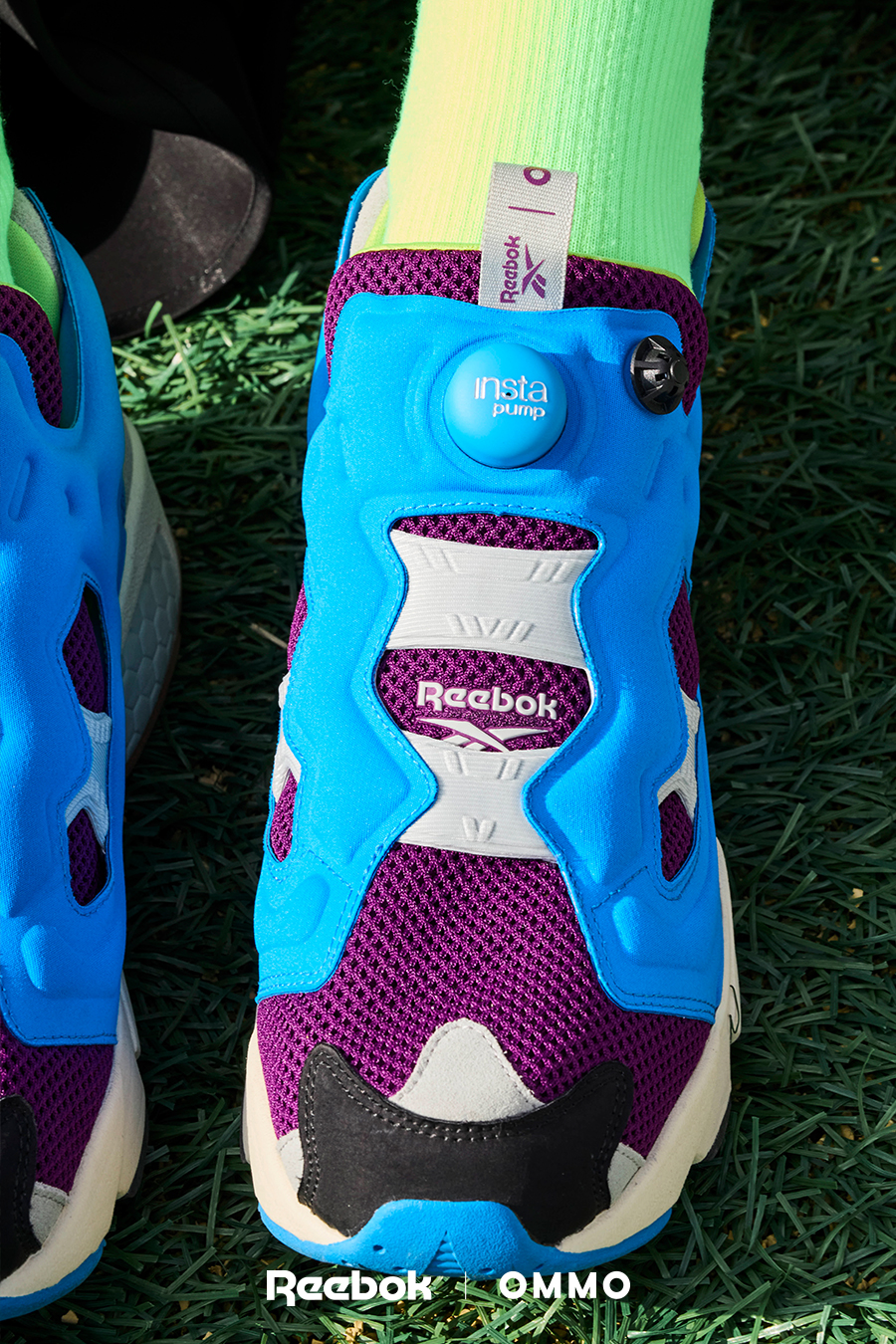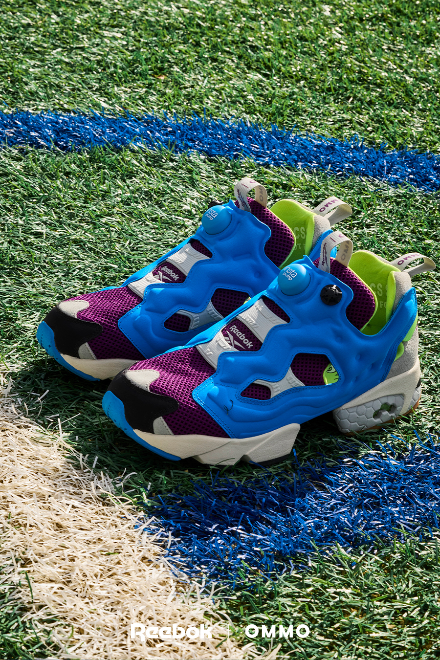アイコニック且つ革新的なスポーツカルチャーブランドのリーボックとOMMOのコラボレーションシューズ。Reebokを象徴するアイコニックモデル「INSTAPUMP FURY 94」。