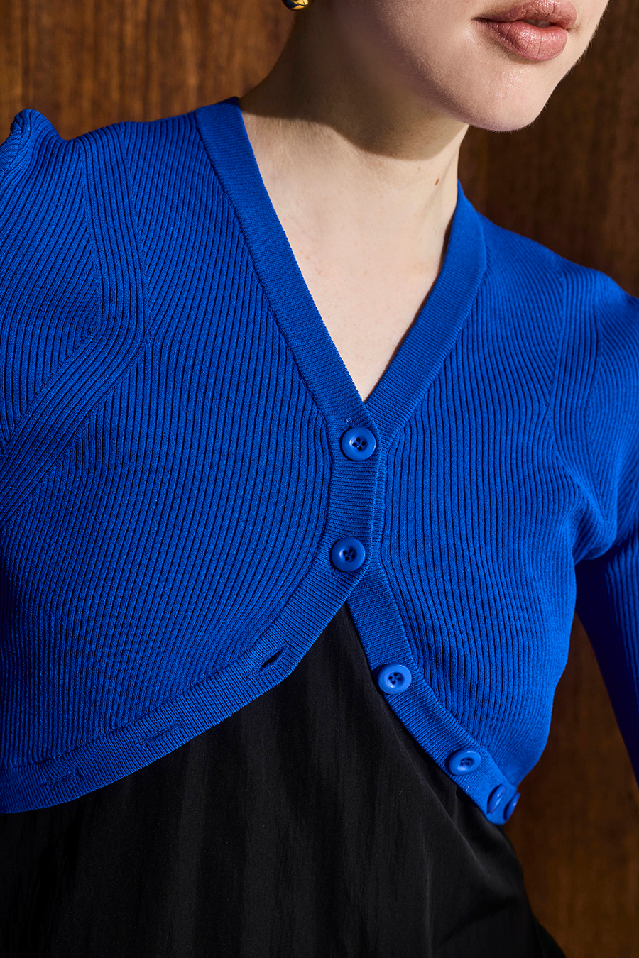 コンパクトなサイズ感のショートニットカーディガン。Vラインのネックと裾のシルエットで身体を華奢に魅せてくれます。