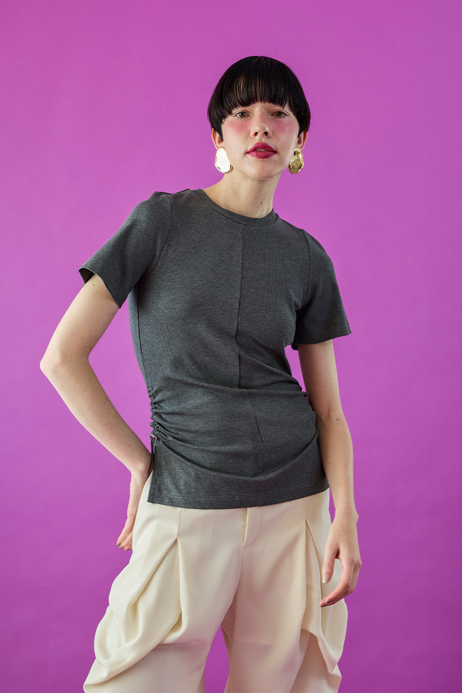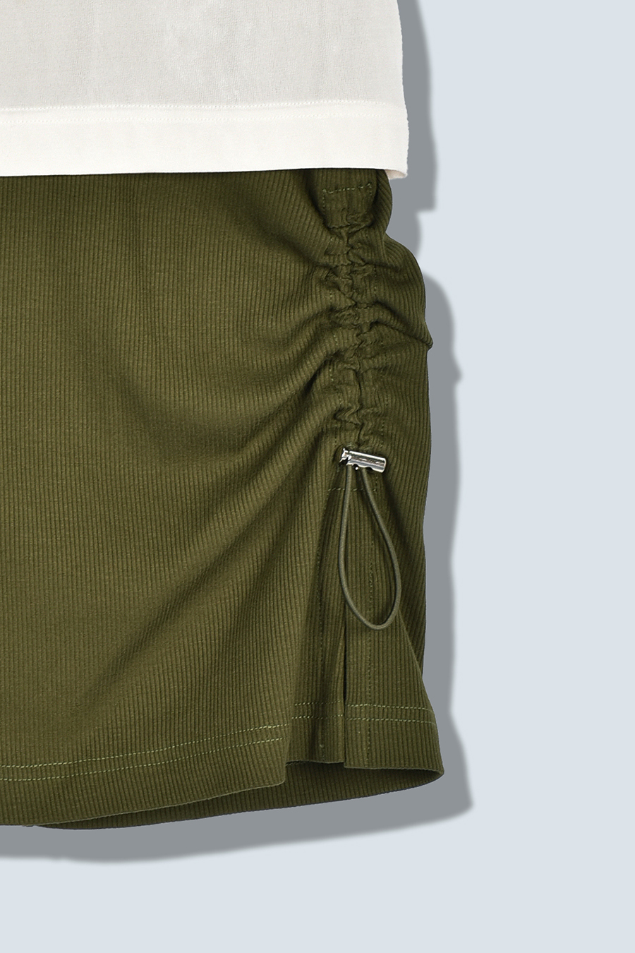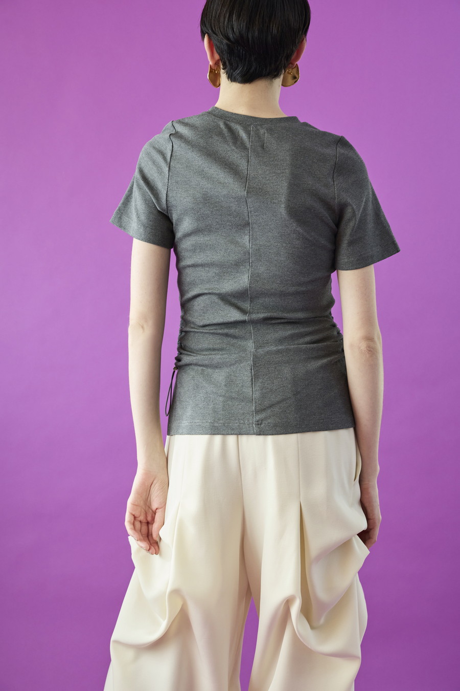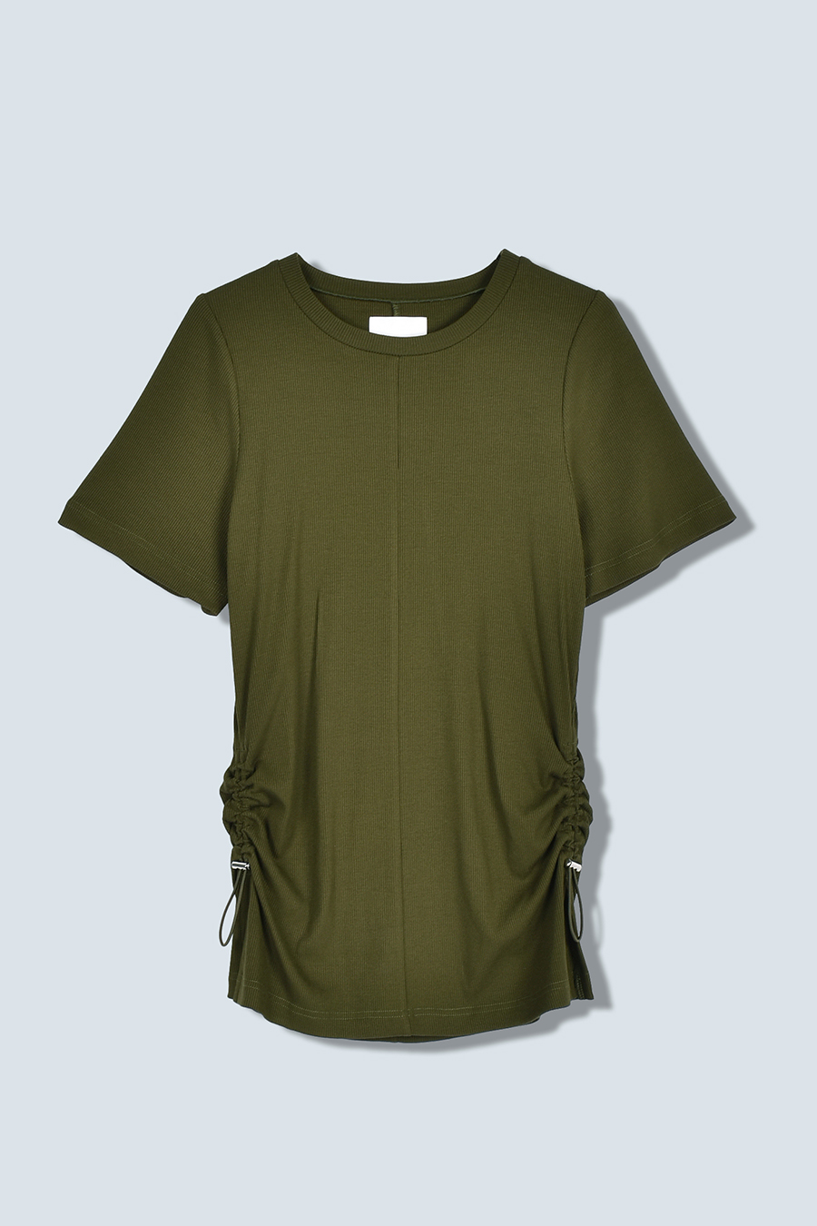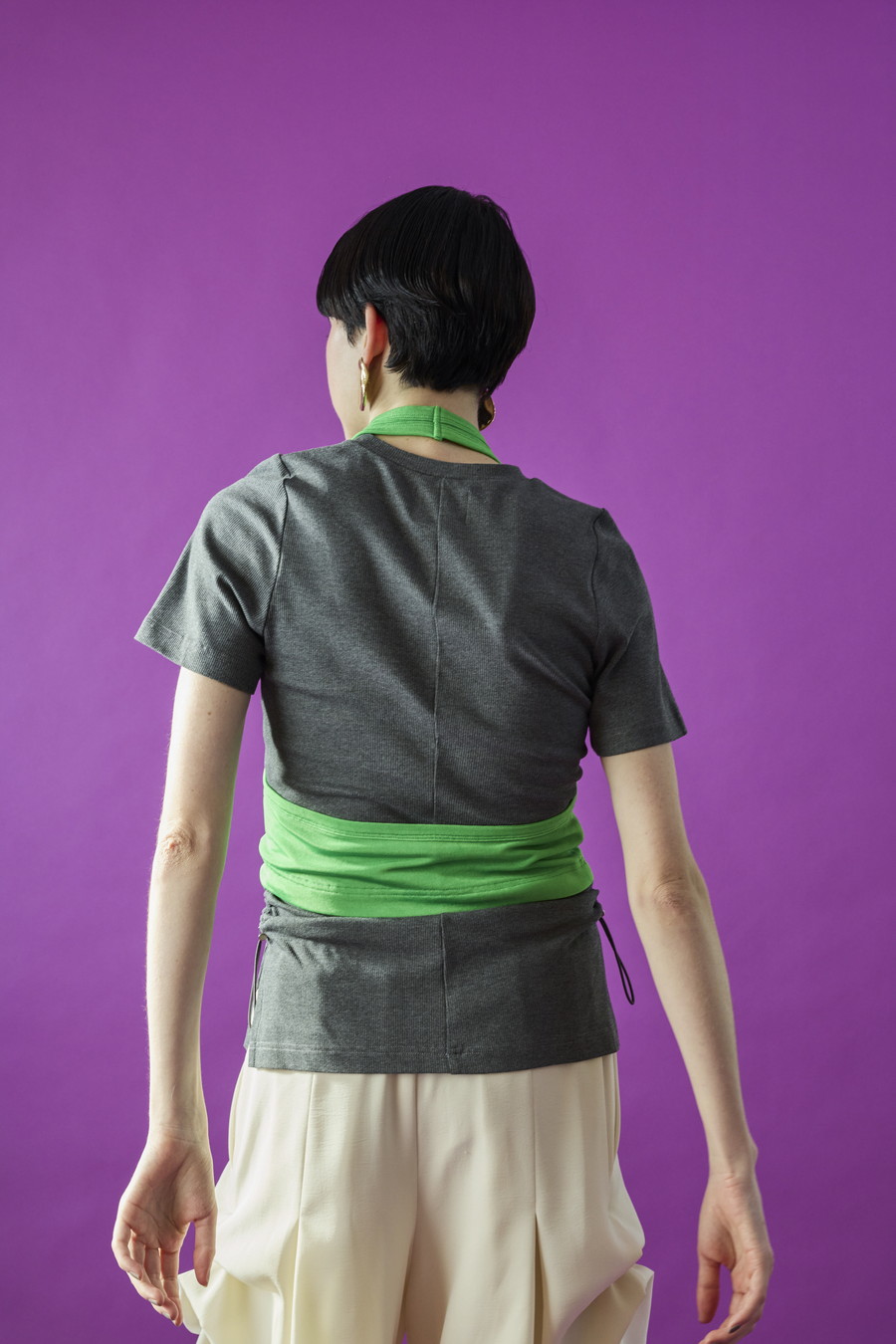 OMMOらしい配色が目を惹くレイヤードTシャツ。Tシャツはストレッチ性の高いレーヨンリブ素材を使用し、サイドのギャザーでウエスト周りをカバーし着丈もも調節していただけます。