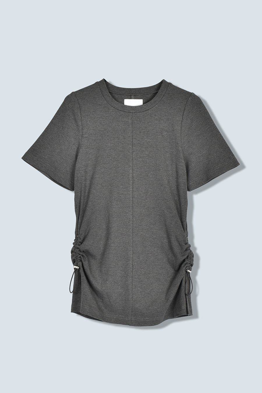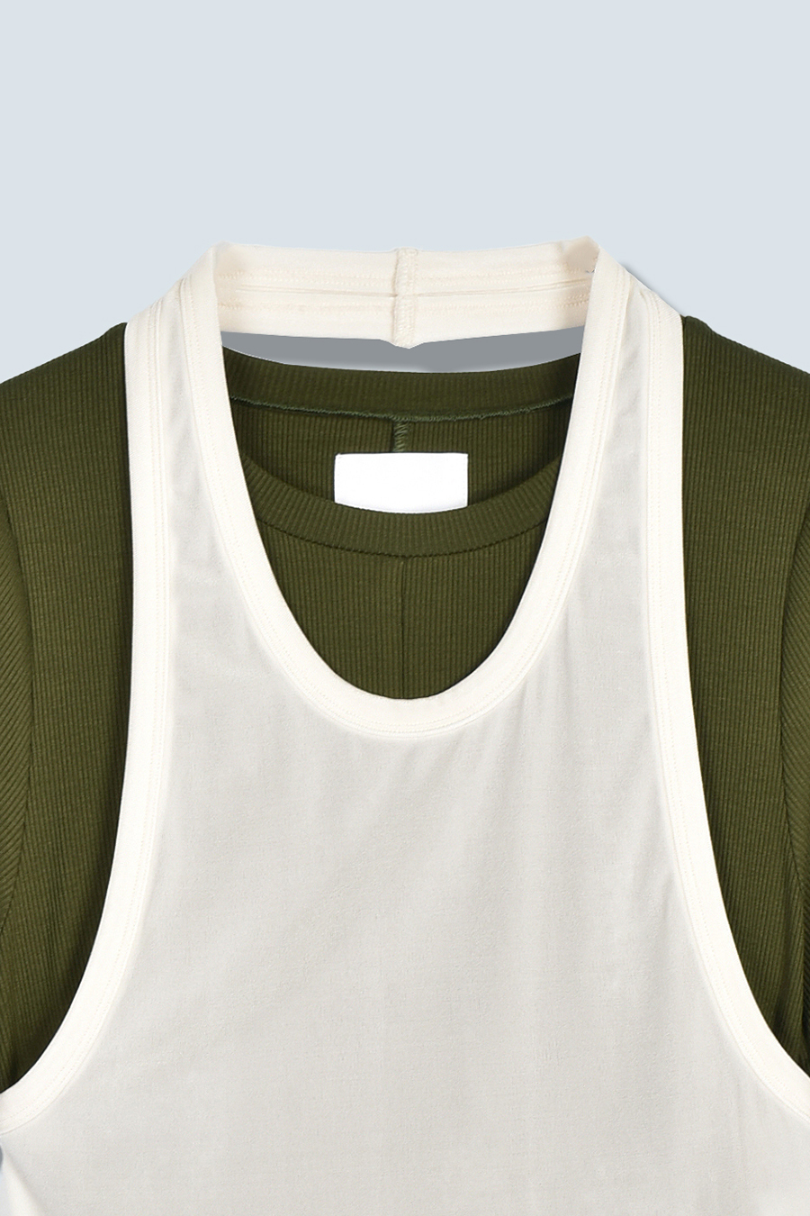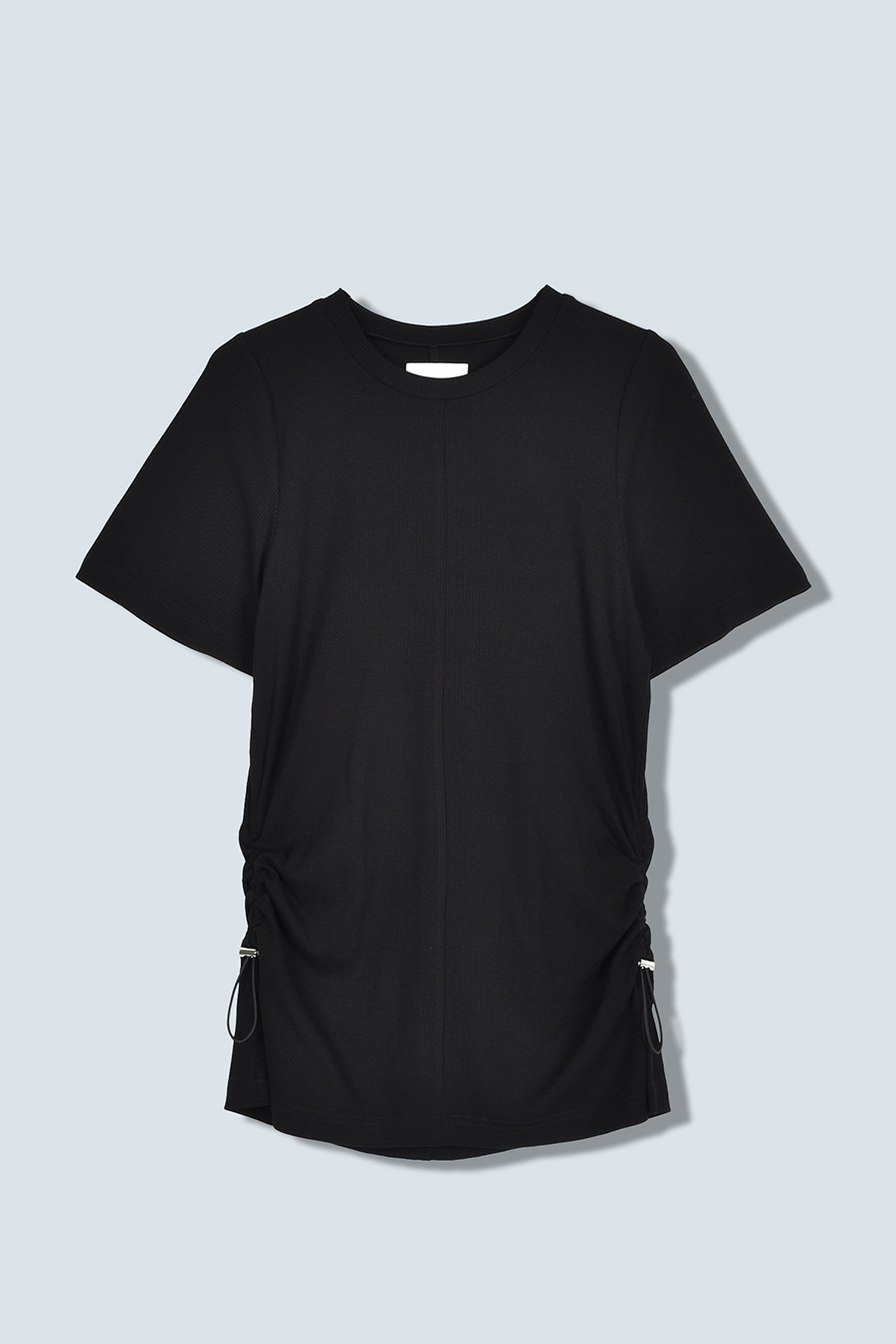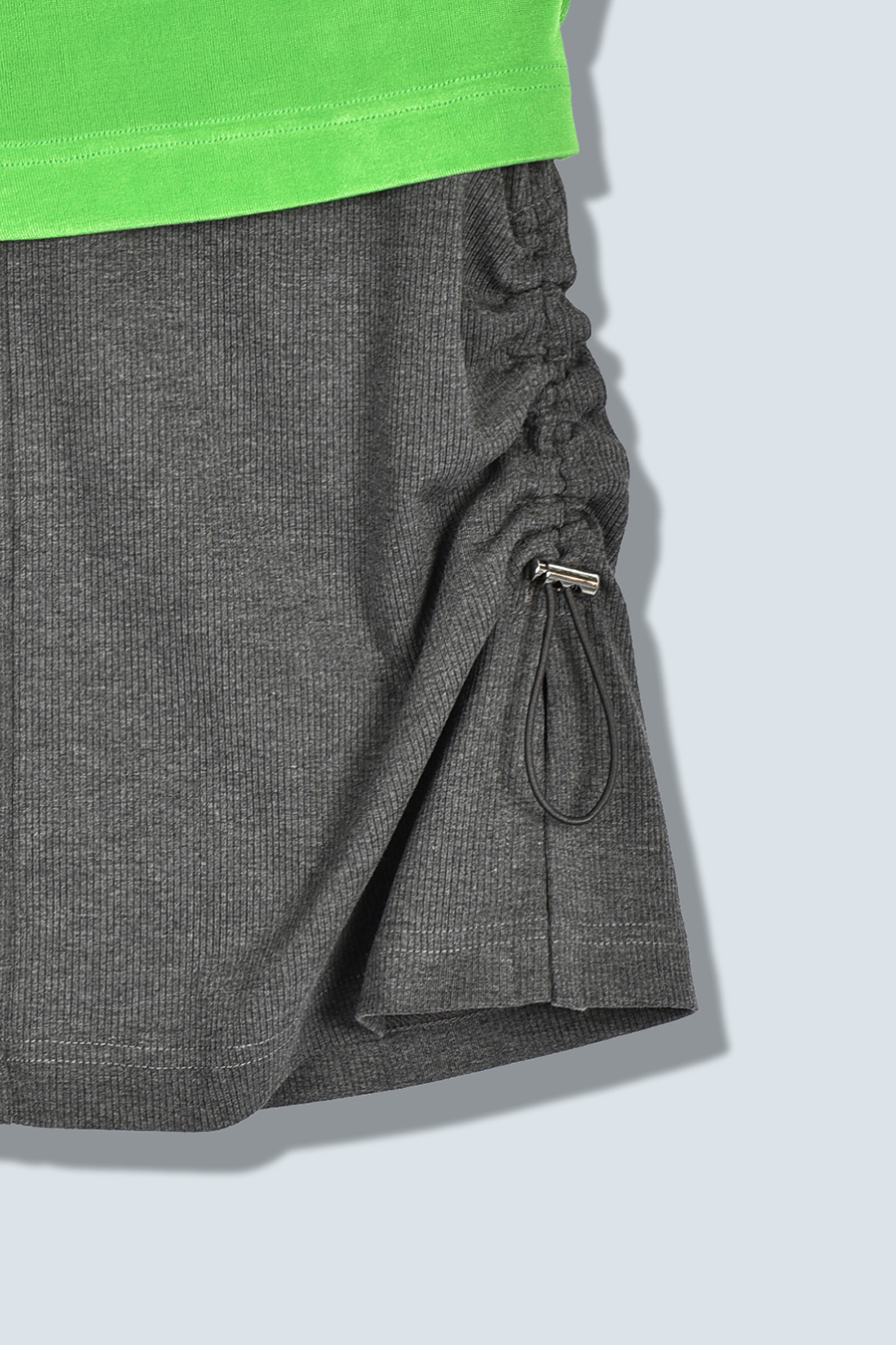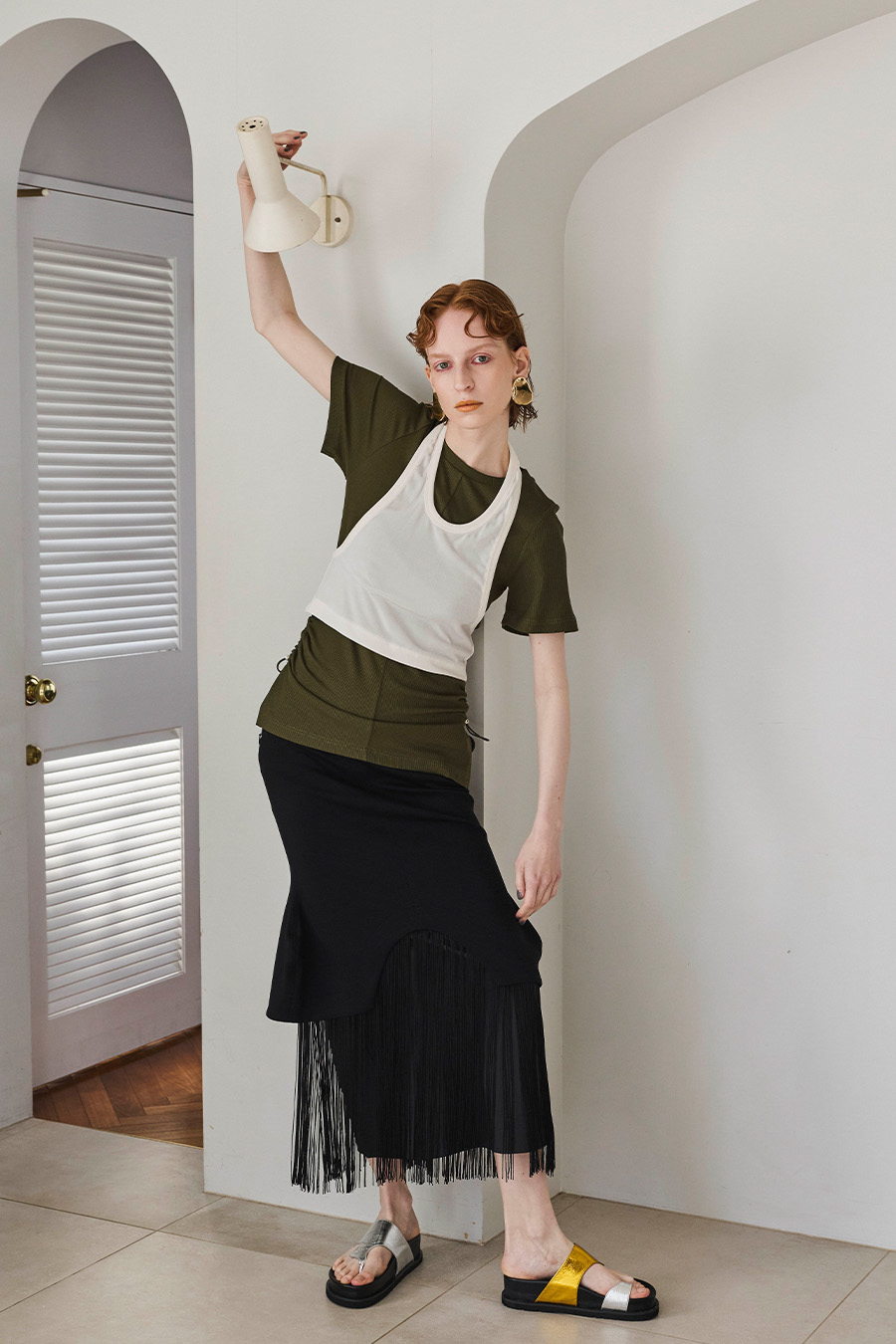 OMMOらしい配色が目を惹くレイヤードTシャツ。Tシャツはストレッチ性の高いレーヨンリブ素材を使用し、サイドのギャザーでウエスト周りをカバーし着丈もも調節していただけます。