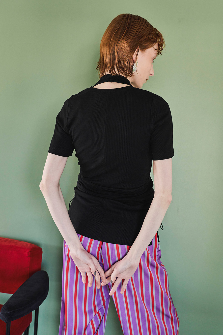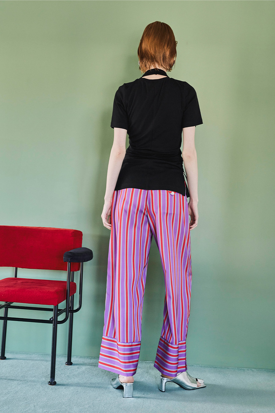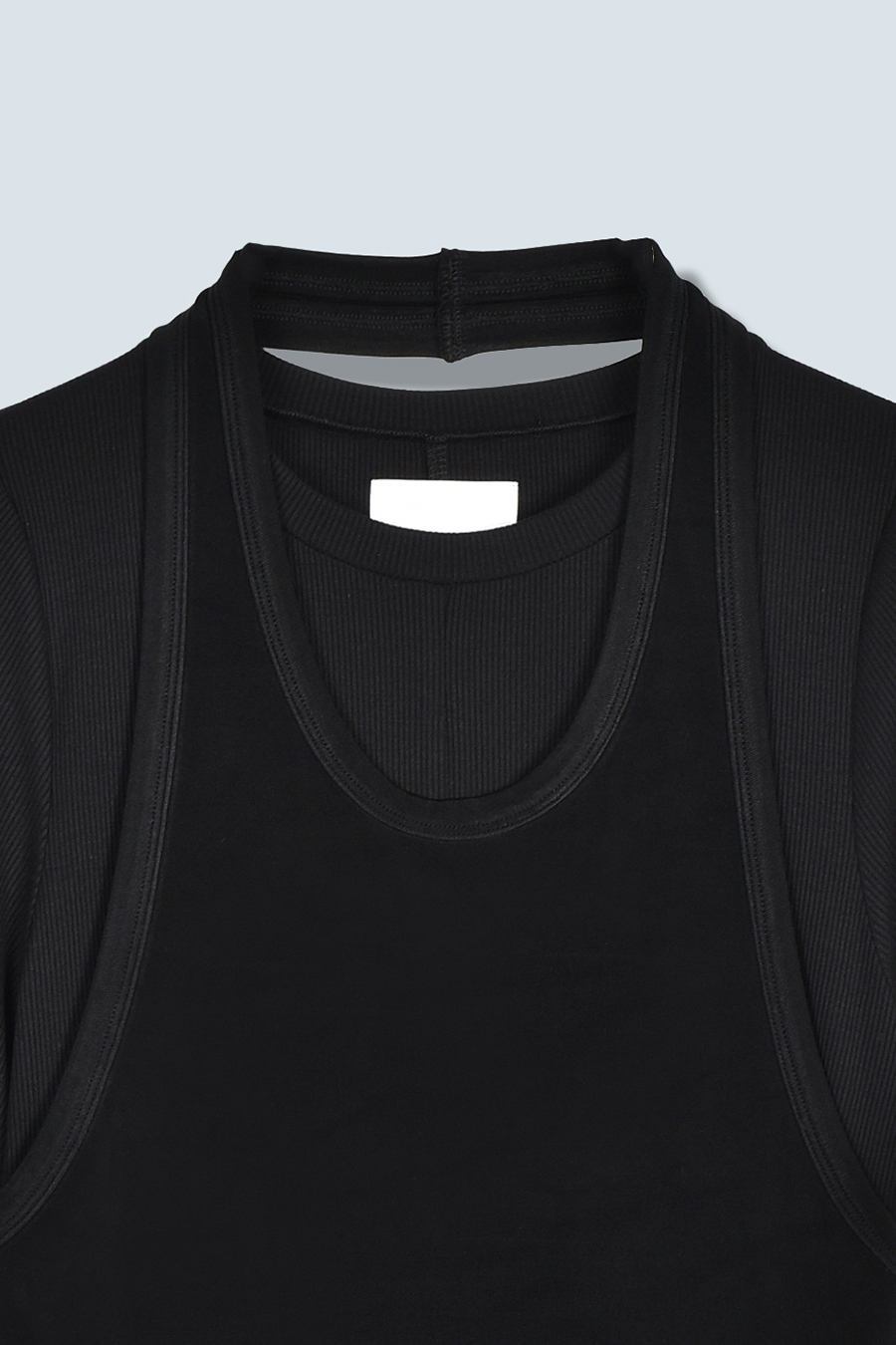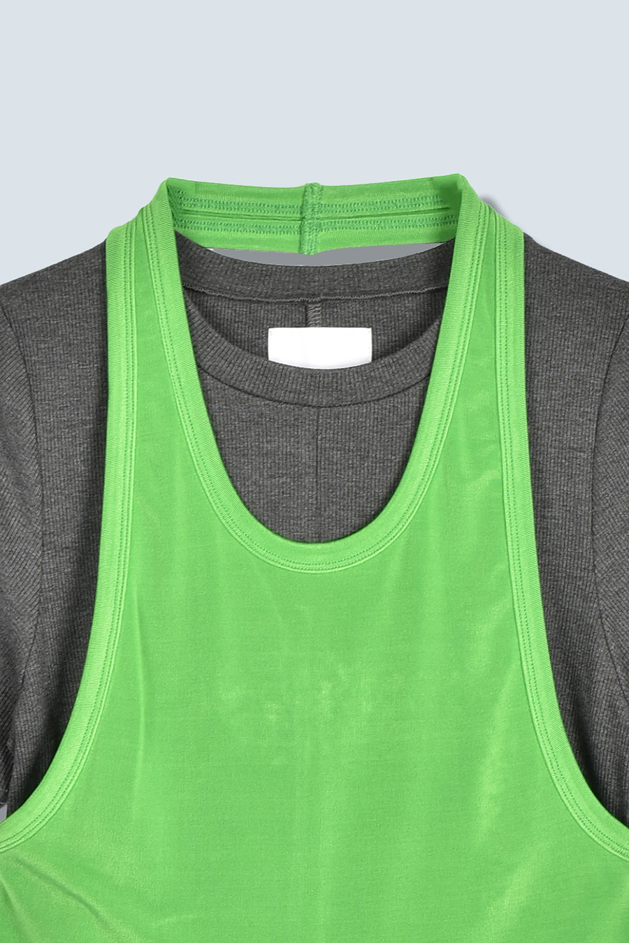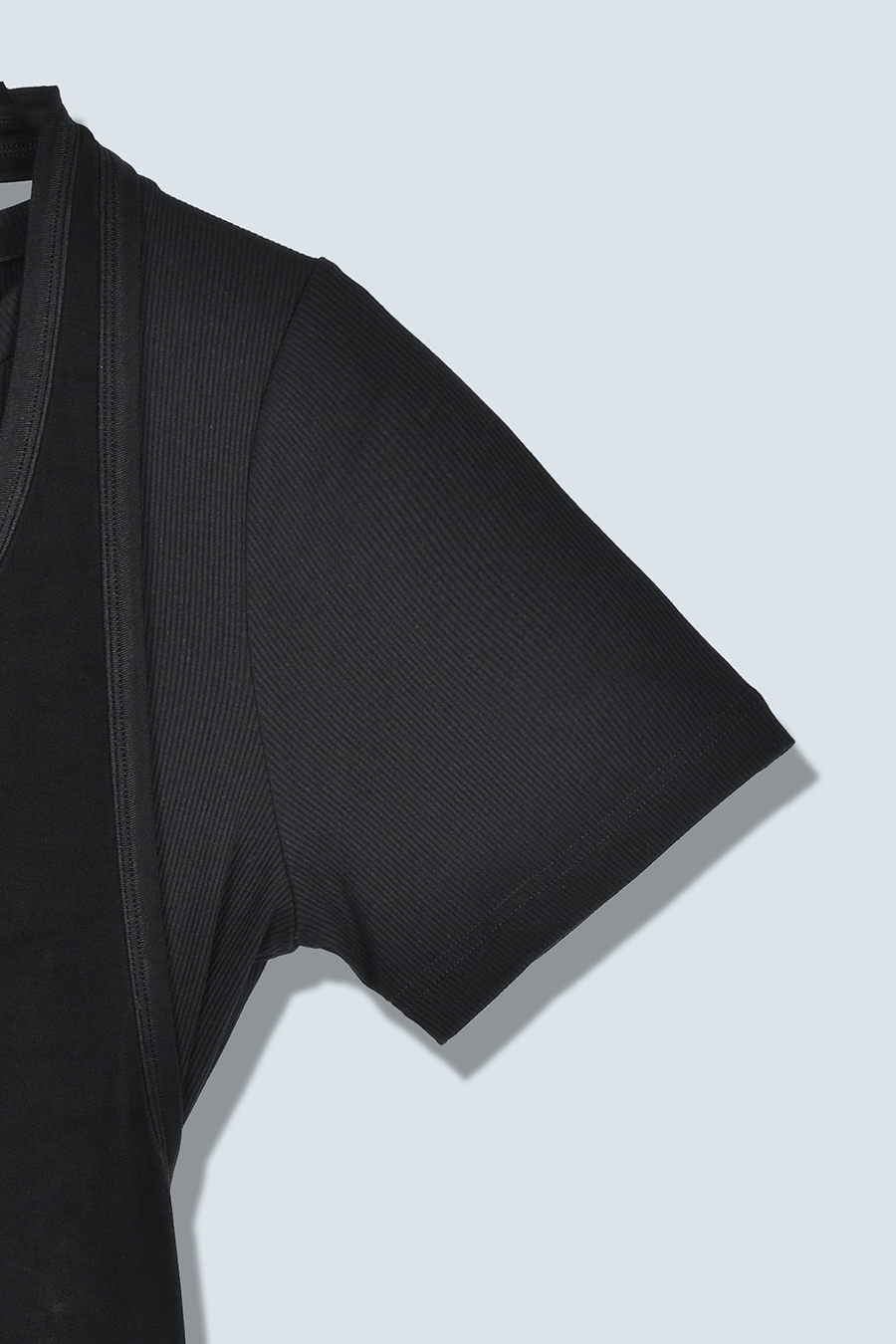OMMOらしい配色が目を惹くレイヤードTシャツ。Tシャツはストレッチ性の高いレーヨンリブ素材を使用し、サイドのギャザーでウエスト周りをカバーし着丈もも調節していただけます。