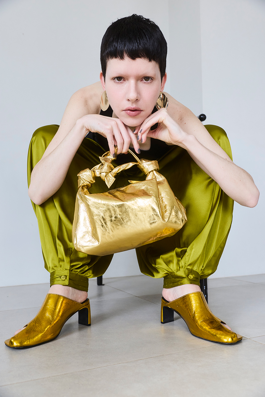 カラーはコーディネートのアクセントになるメタリックの2色展開です。