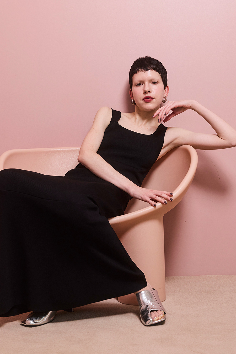 シンプルながら女性らしさが詰まった1着です。