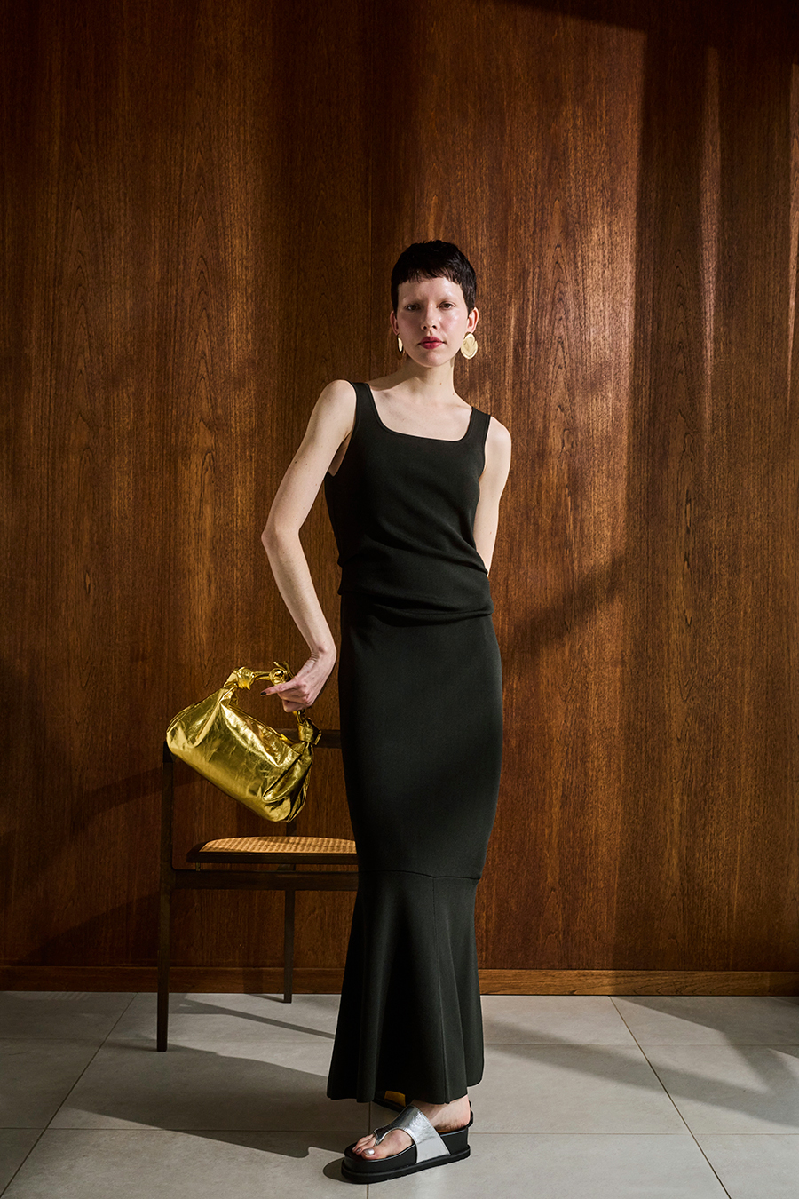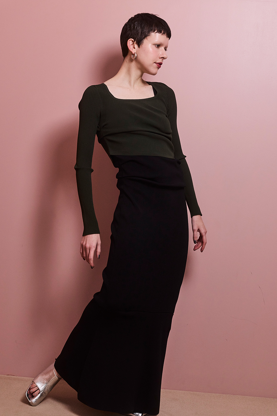 さらりとした肌触りと高いストレッチ性のレーヨン糸を使用し、春夏も快適に着られるマーメイドシルエットのニットワンピース。ウエストのタックデザインが身体のラインをほどよくカバーし、スクエアネックがデコルテを美しく見せます。