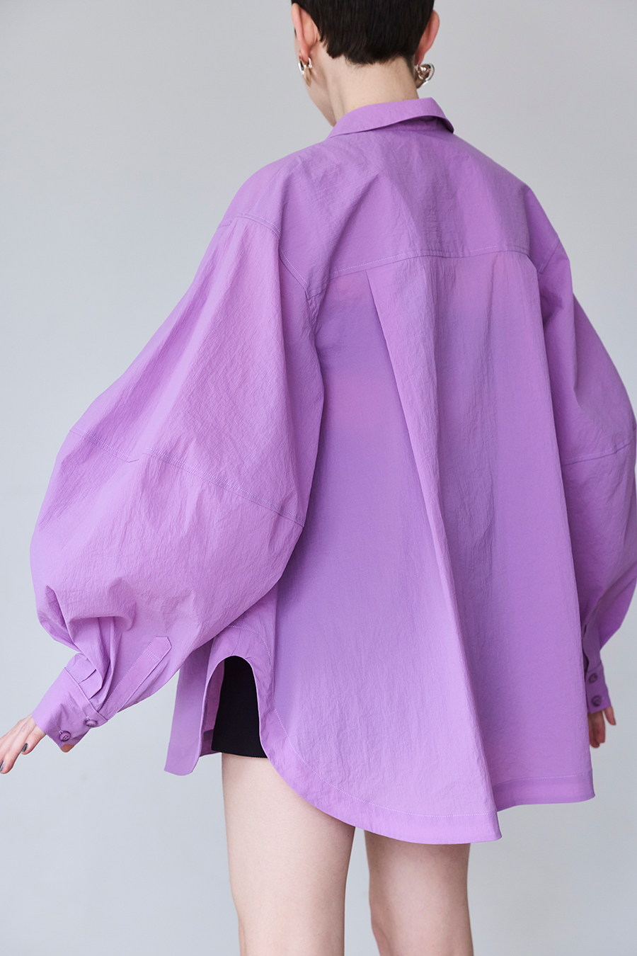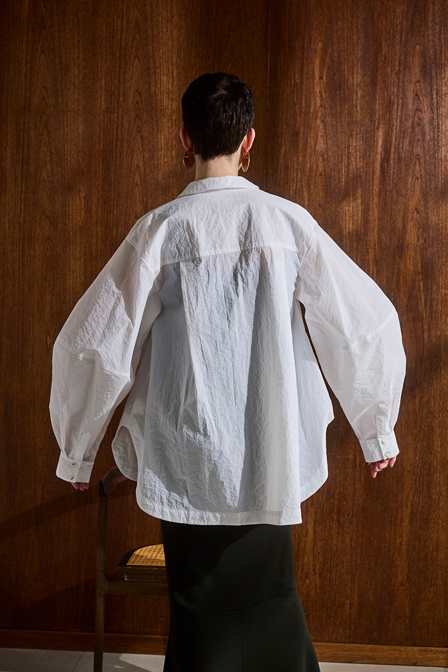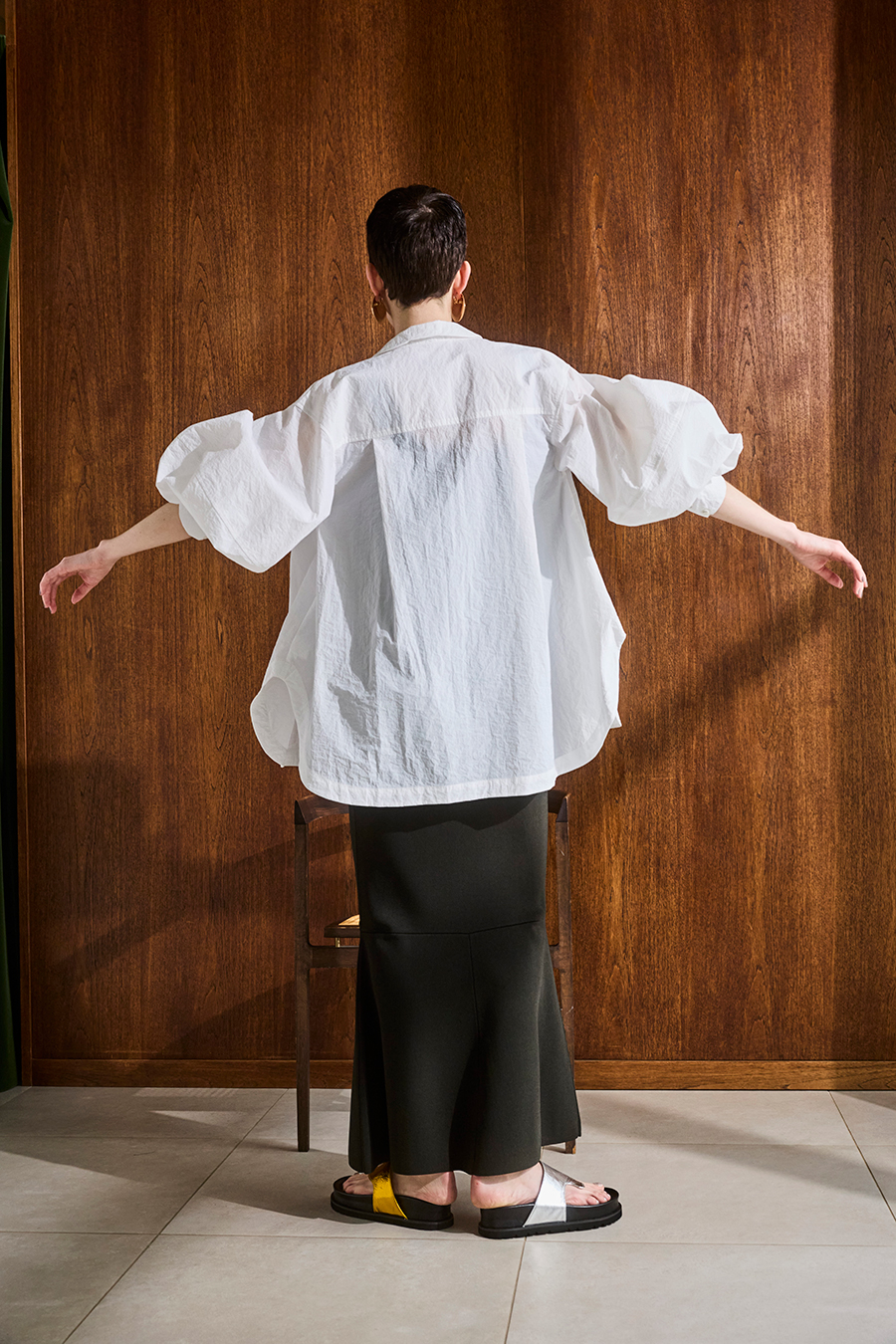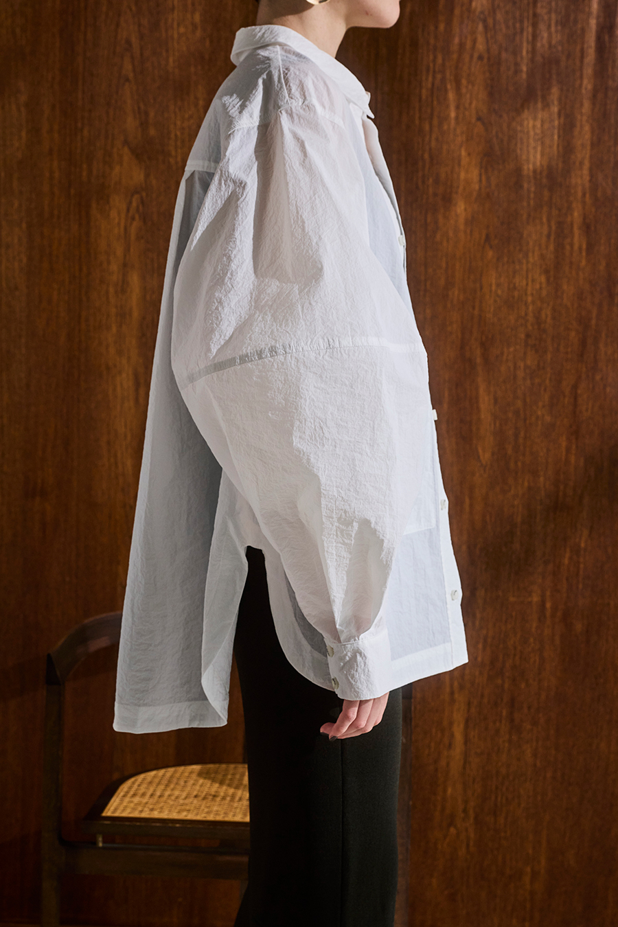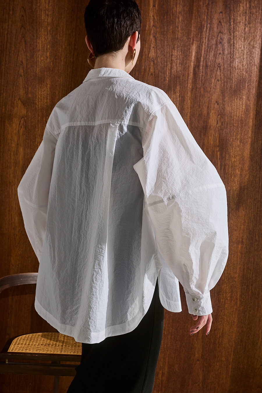 軽量で、ふわっとボリュームのあるワイドスリーブのシャツ。ワッシャー感のある生地のため、畳んでもしわが気になりにくく、デイリー使いはもちろん、旅行や海辺などのアウトドアシーンにもぴったりです。