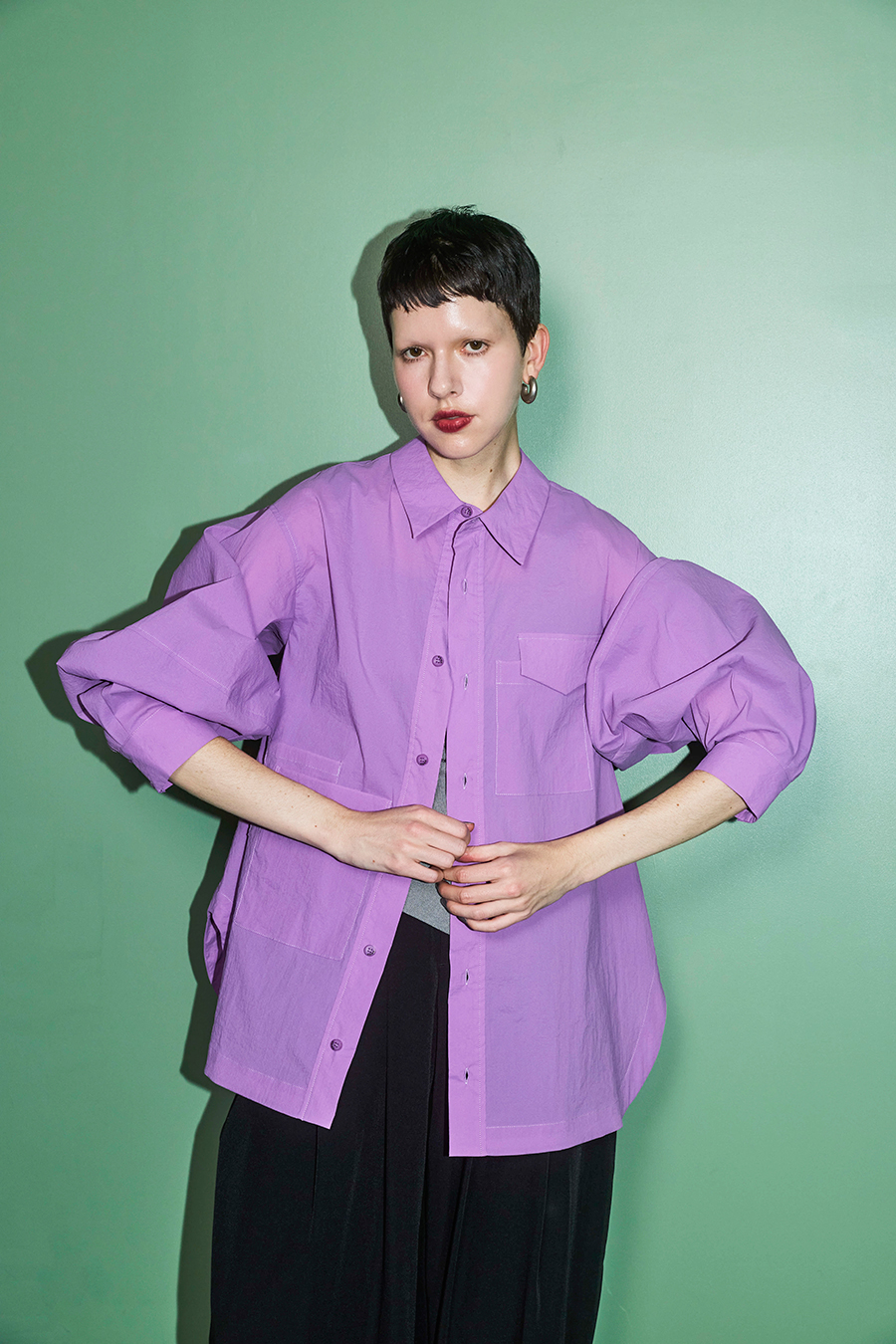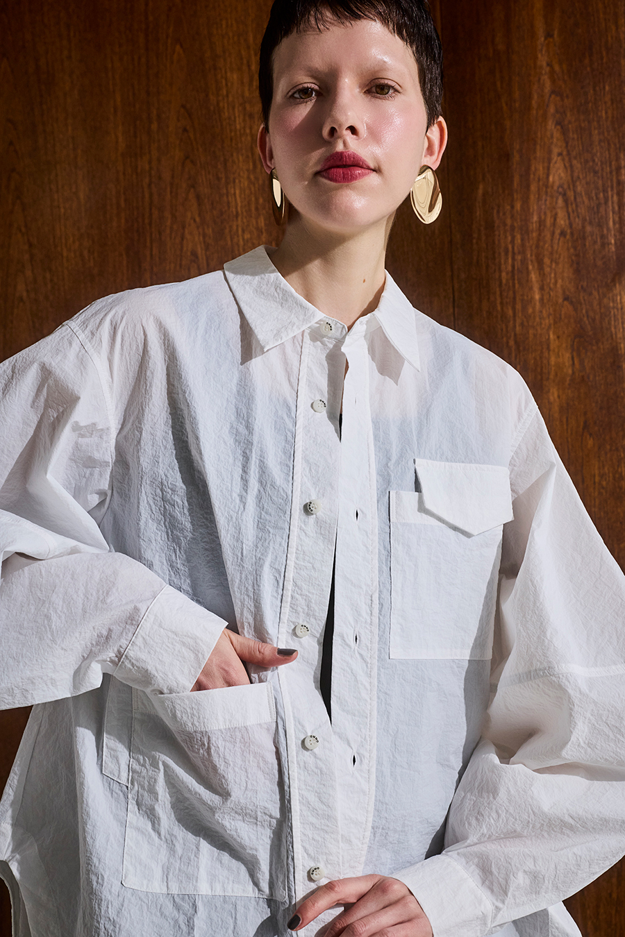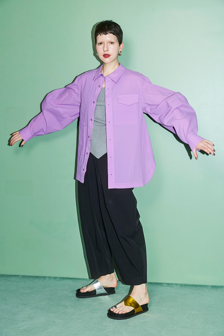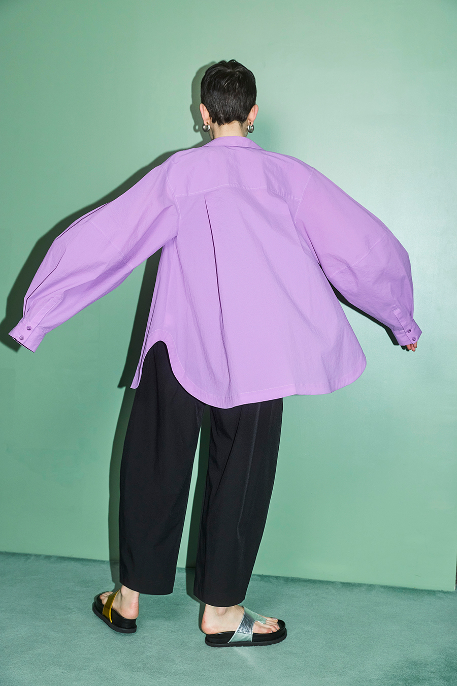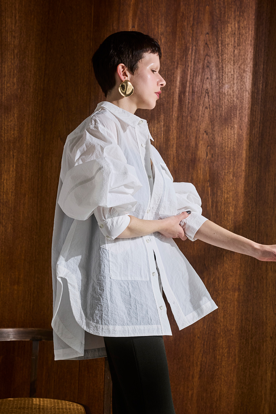軽量で、ふわっとボリュームのあるワイドスリーブのシャツ。ワッシャー感のある生地のため、畳んでもしわが気になりにくく、デイリー使いはもちろん、旅行や海辺などのアウトドアシーンにもぴったりです。