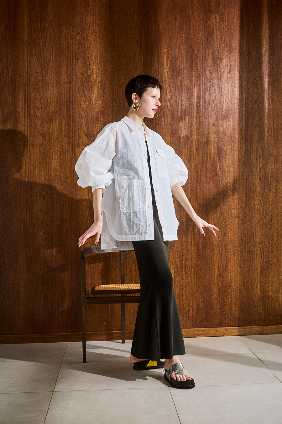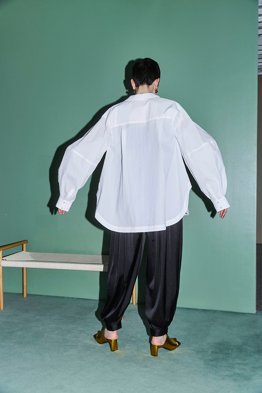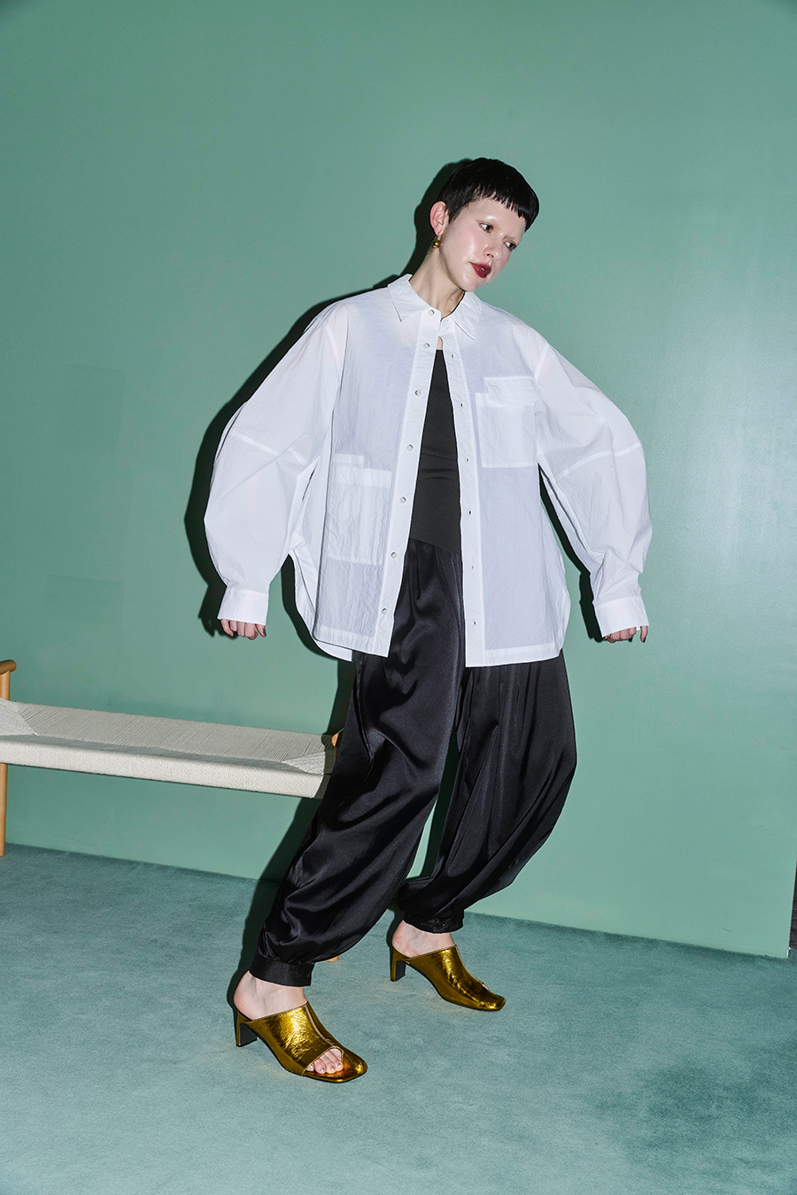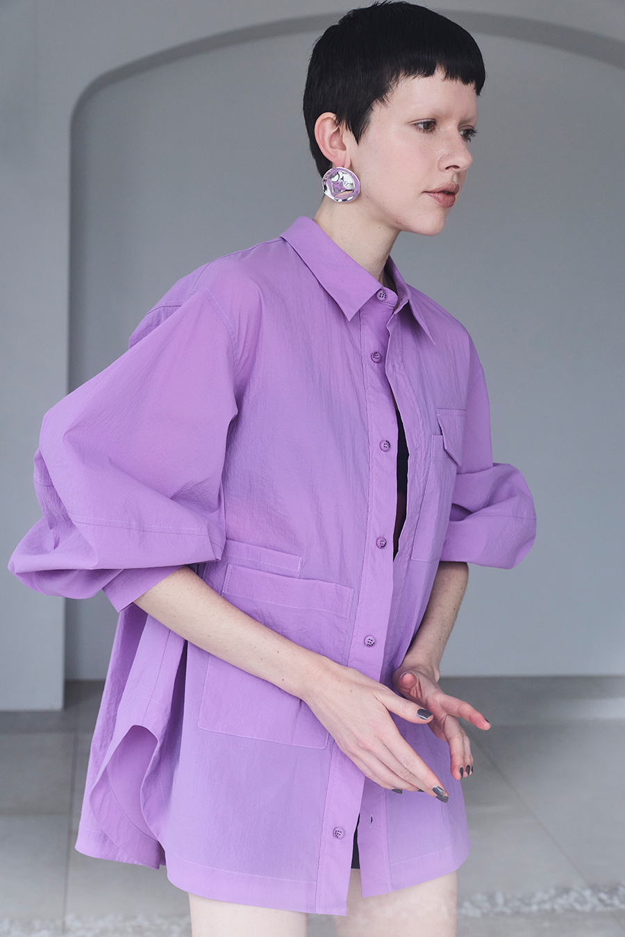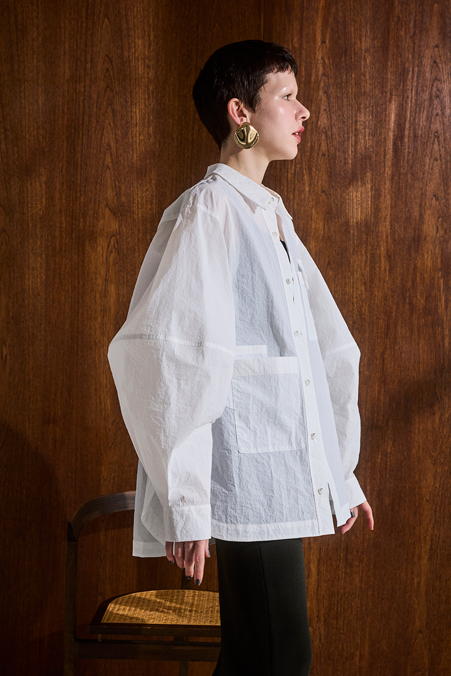 軽量で、ふわっとボリュームのあるワイドスリーブのシャツ。ワッシャー感のある生地のため、畳んでもしわが気になりにくく、デイリー使いはもちろん、旅行や海辺などのアウトドアシーンにもぴったりです。