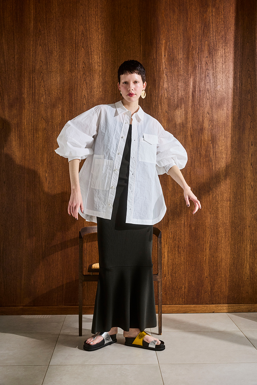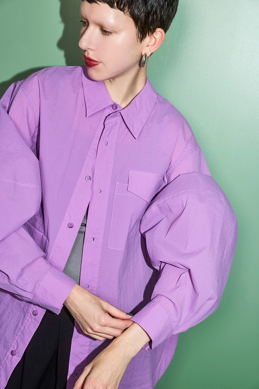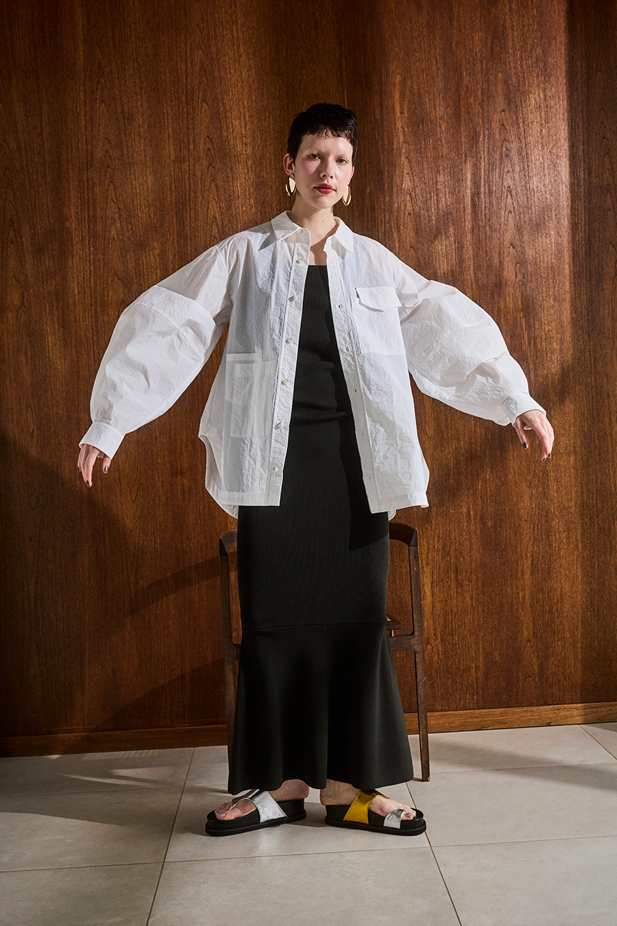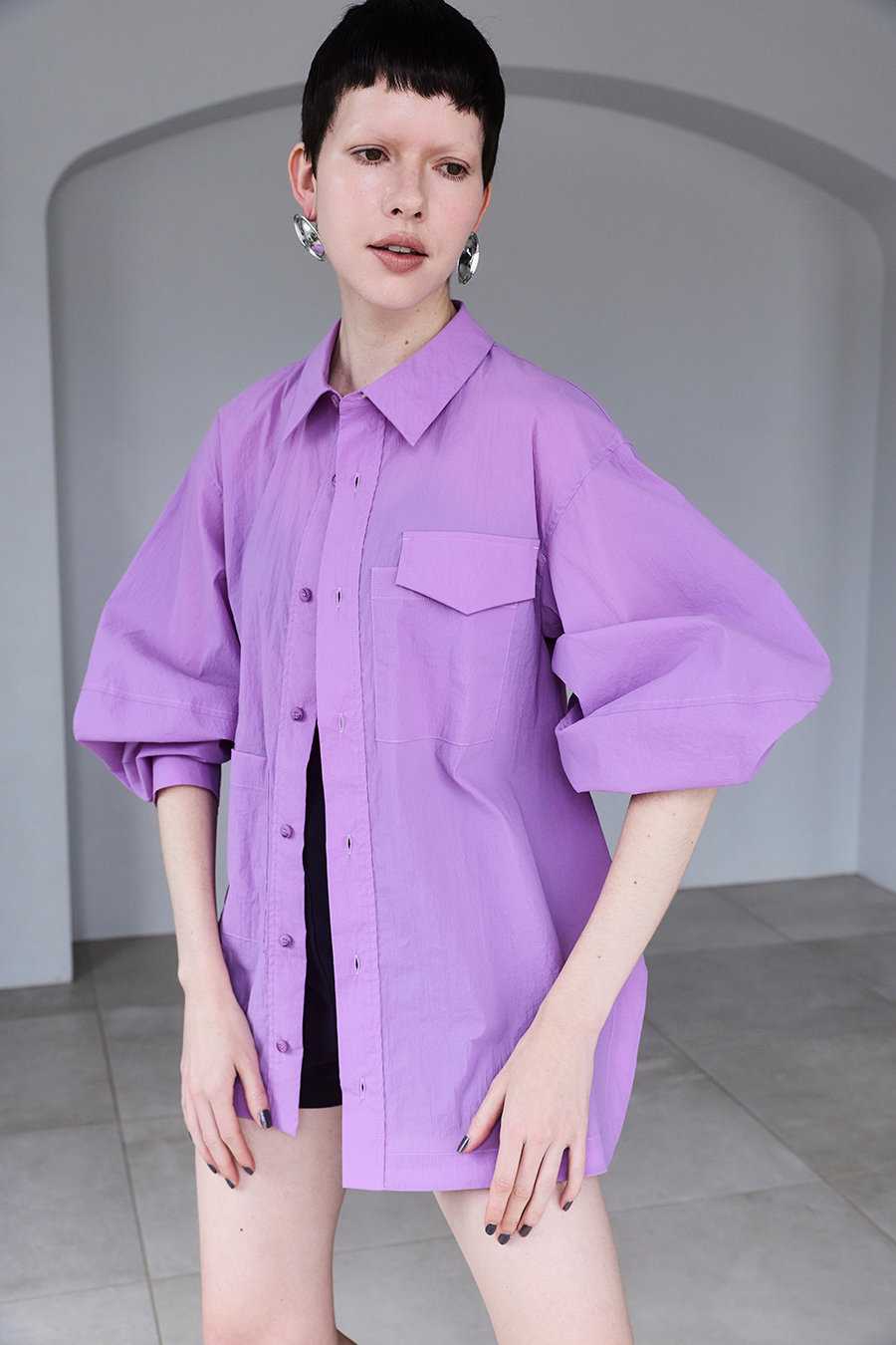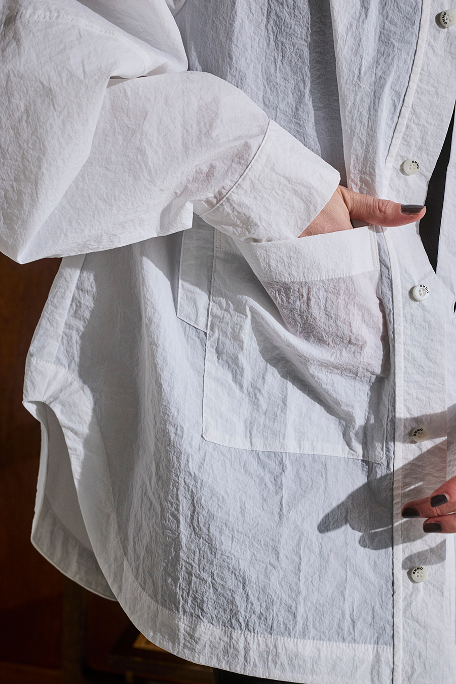 軽量で、ふわっとボリュームのあるワイドスリーブのシャツ。ワッシャー感のある生地のため、畳んでもしわが気になりにくく、デイリー使いはもちろん、旅行や海辺などのアウトドアシーンにもぴったりです。