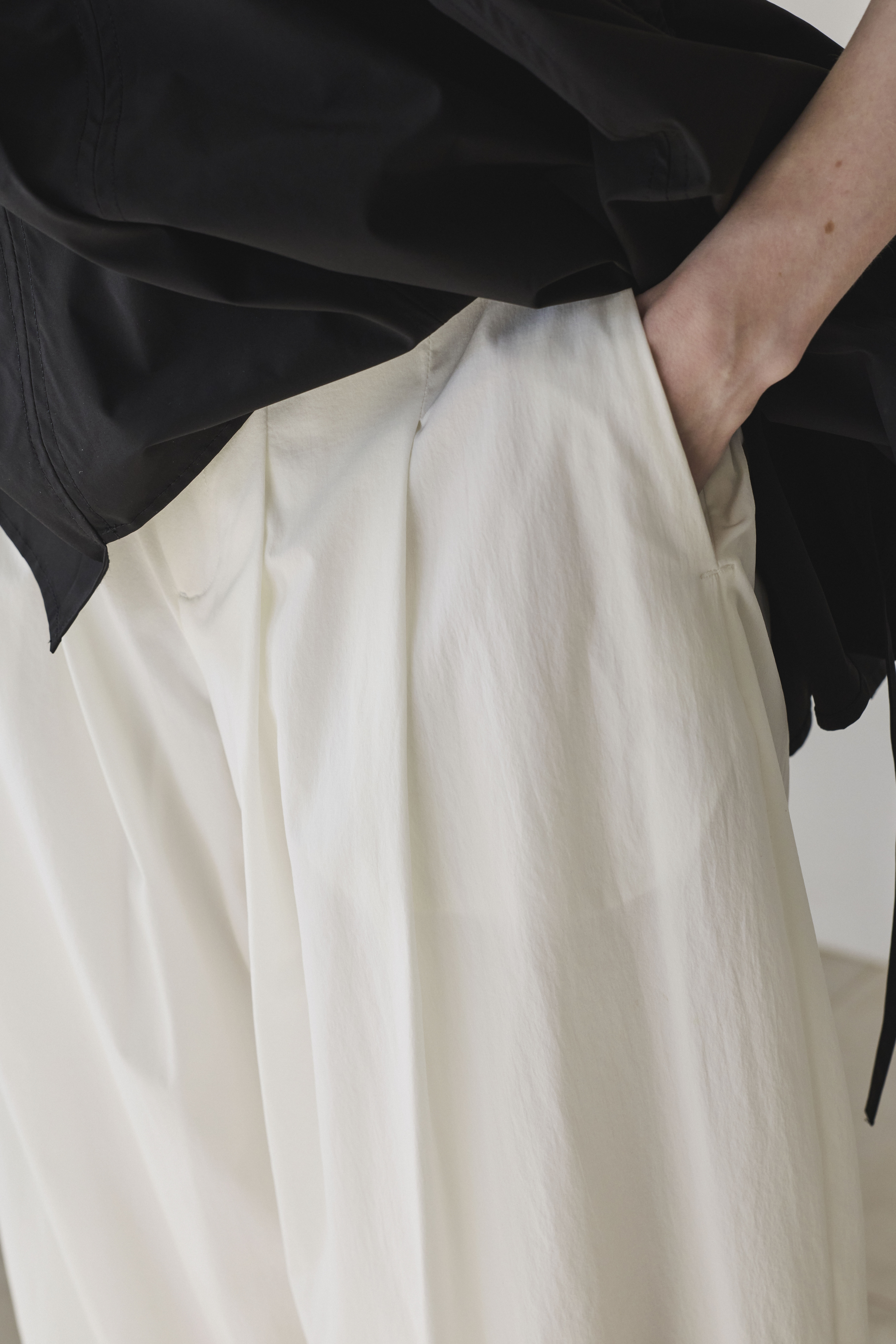ホワイトのみ透け感防止のため裾まで裏地を付けています。