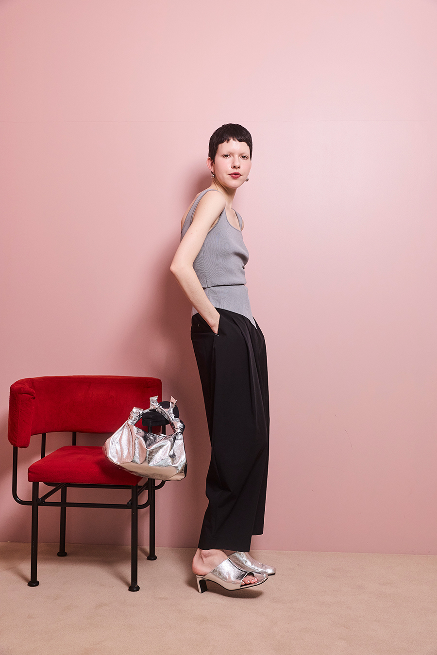 フラットシューズにもヒールにも合わせやすい1着です。