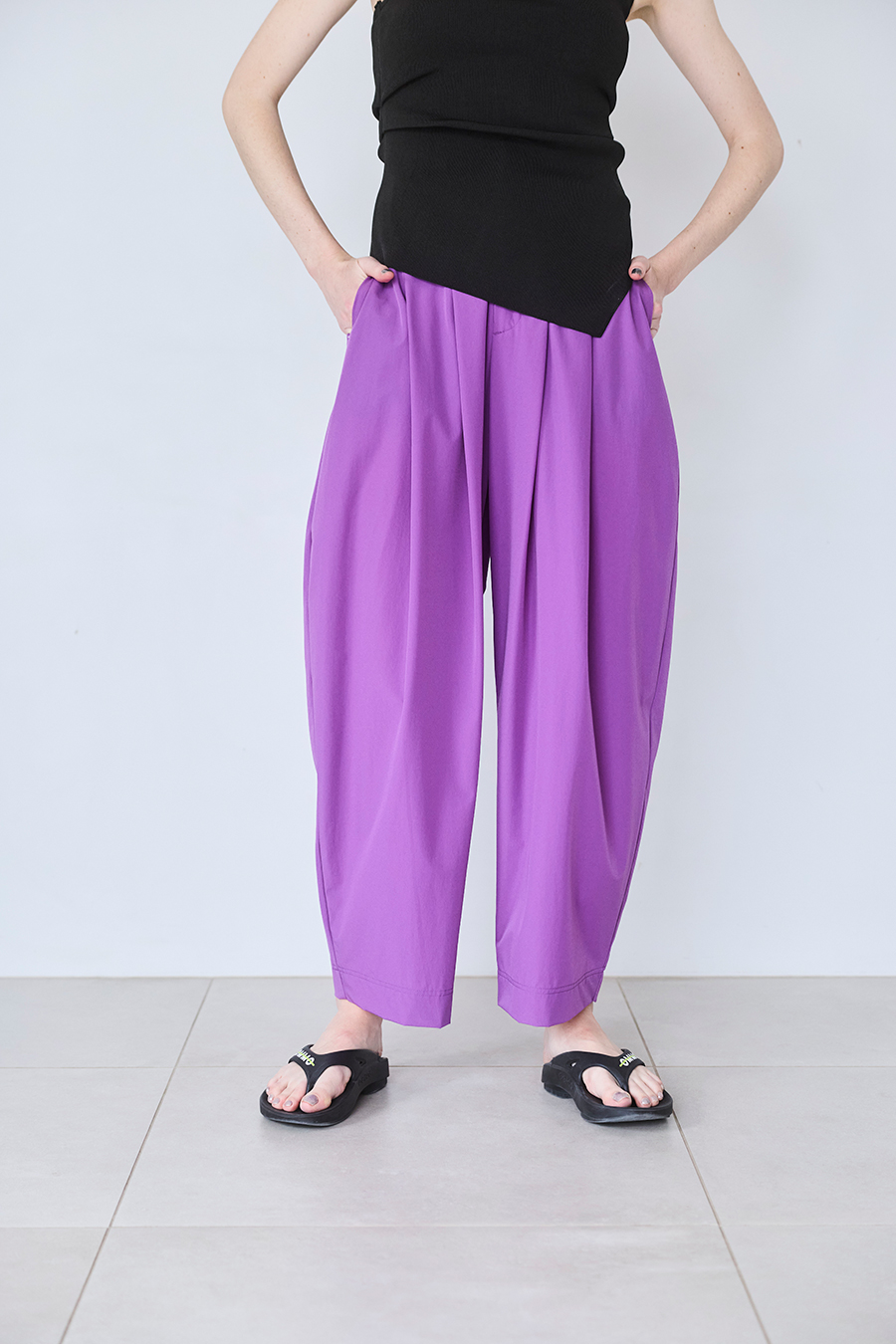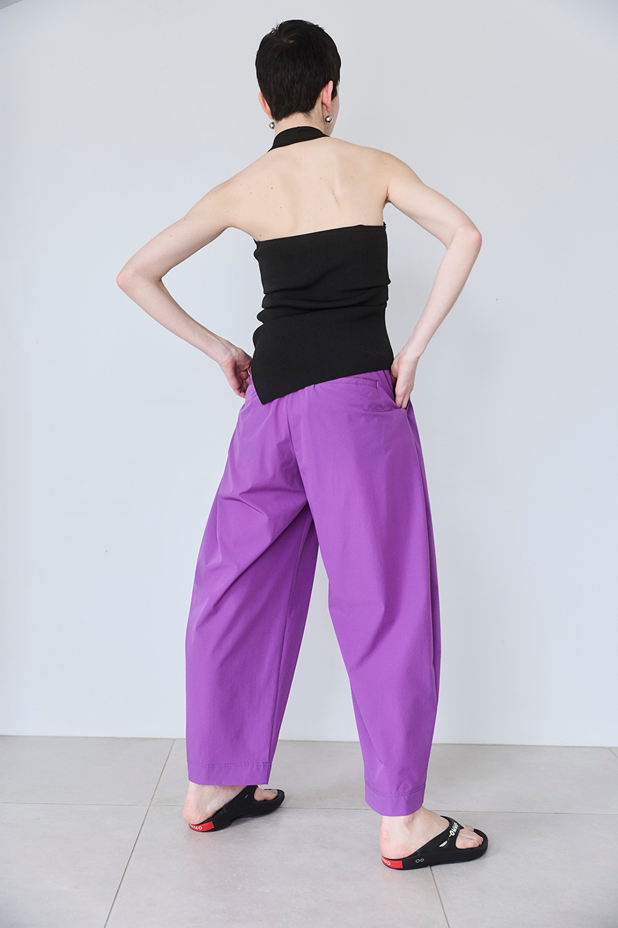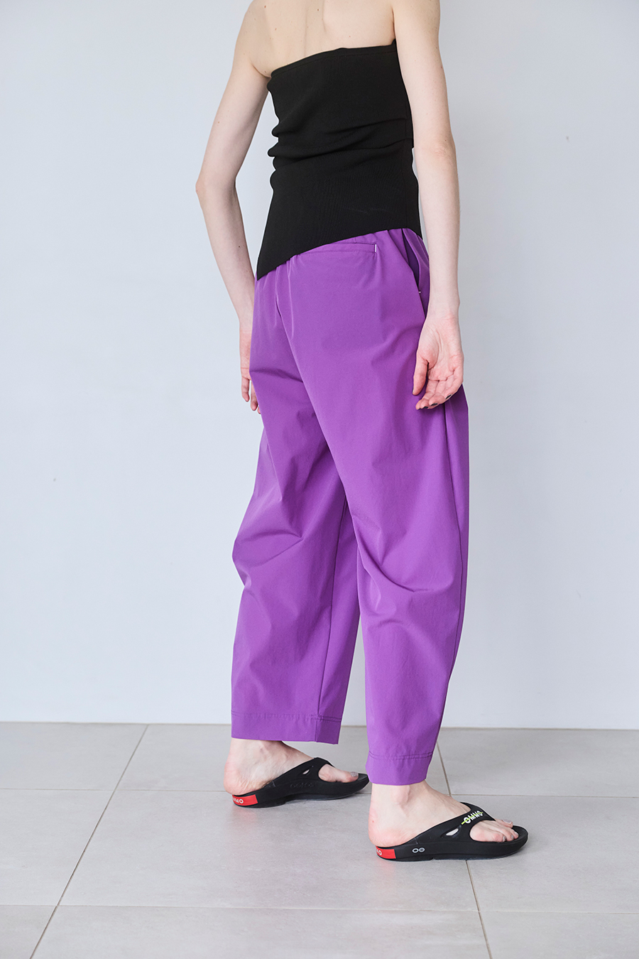 速乾性と伸縮性に優れたナイロンストレッチ素材を使用し、軽量で涼しく、夏に心地よく穿けるパンツ。カットソーのようなリラックスした着用感に加え、イージーケアでデイリーにも旅先にも活躍します。
